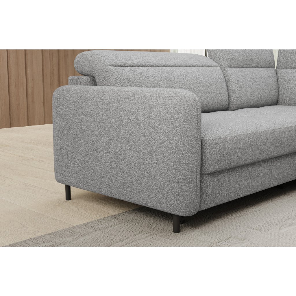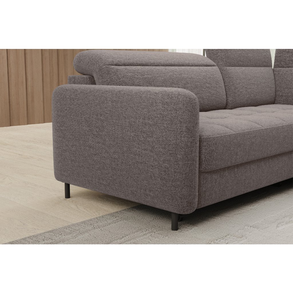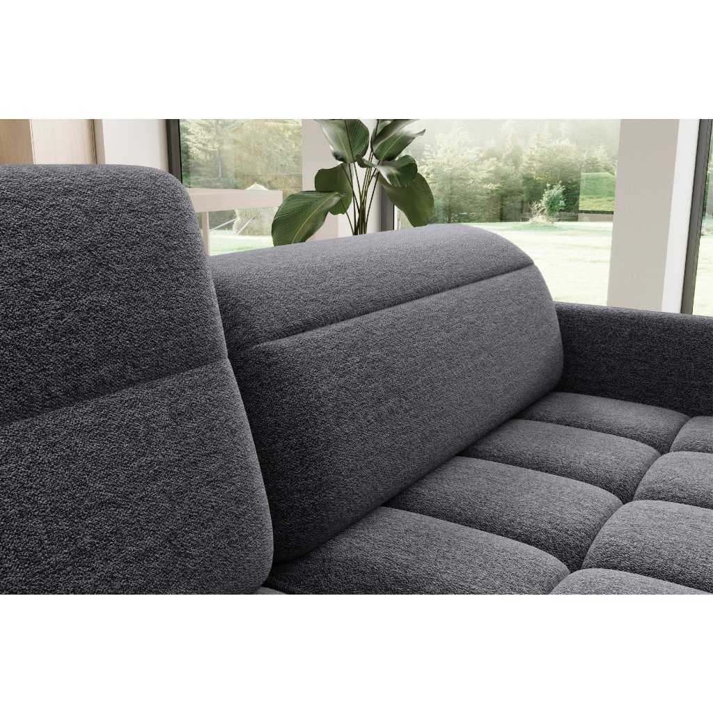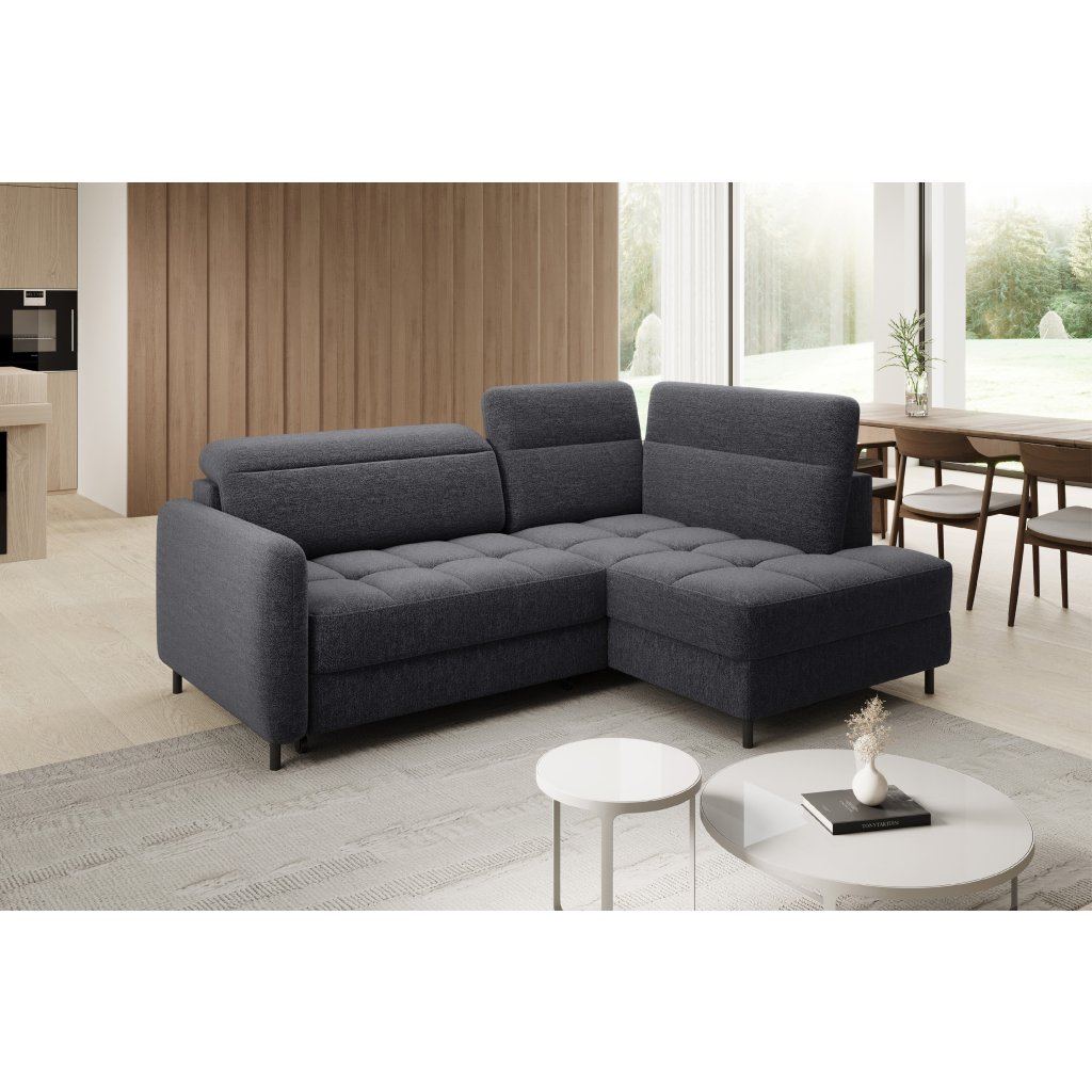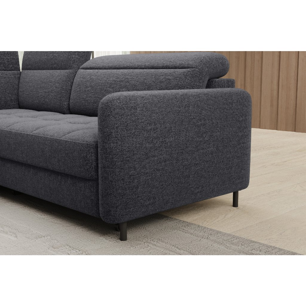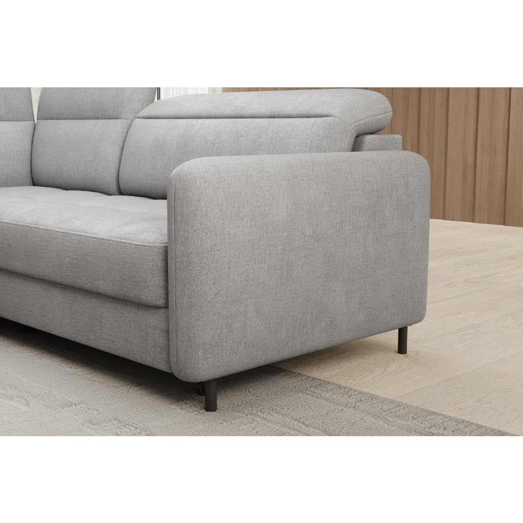 Rohová sedací souprava Barea je elegantní a funkční kus nábytku o rozměrech 208x160x100 cm, který je vybaven pohyblivými opěrkami hlavy a kovovými černými nohami o výšce 10 cm. Její pevná konstrukce z vysoce kvalitních materiálů zajišťuje odolnost, zatímco pečlivě tvarovaný sedák a opěrák zaručují pohodlí a správnou oporu zad. Moderní design rohové sedací soupravy Barea znamená, že dokonale zapadne do minimalistických i sofistikovanějších interiérových úprav. Je k dispozici v různých látkách a barvách, je estetická a funkční, ideální pro každodenní lenošení i vítání hostů.Doplňkové parametry