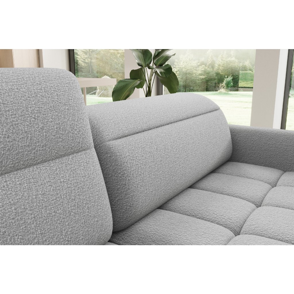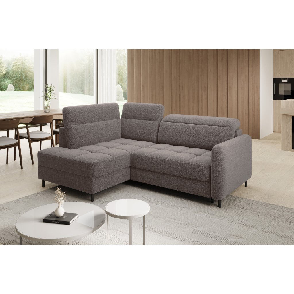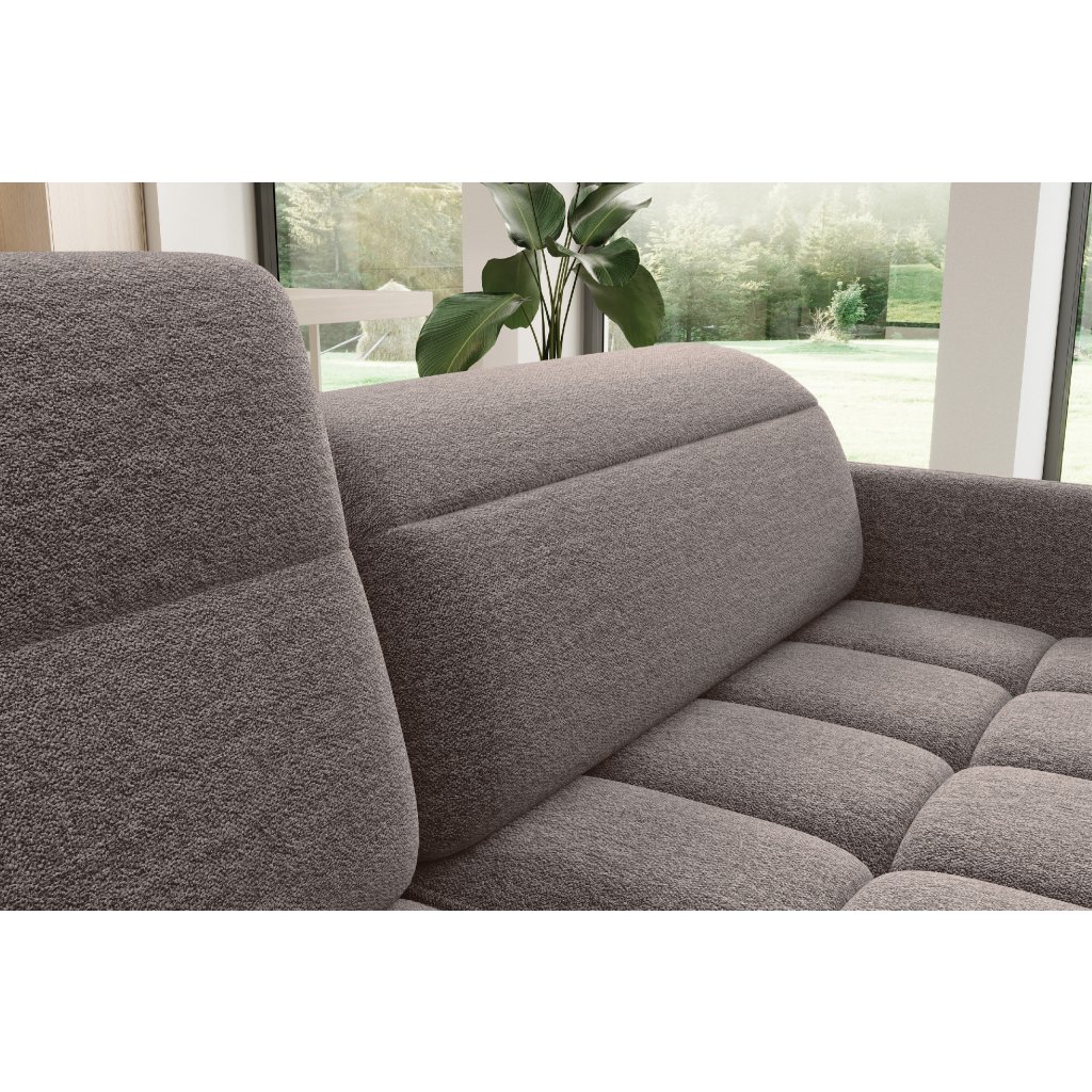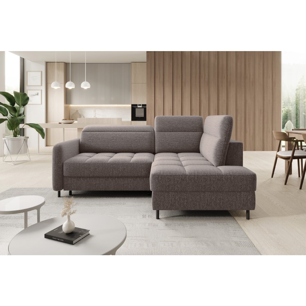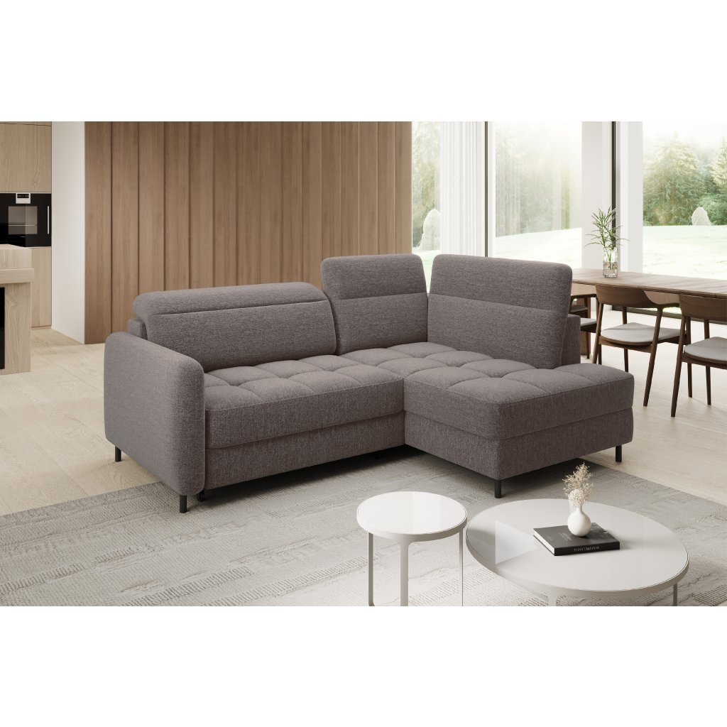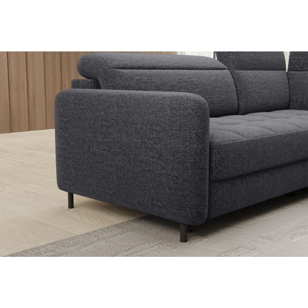 Rohová sedací souprava Barea je elegantní a funkční kus nábytku o rozměrech 208x160x100 cm, který je vybaven pohyblivými opěrkami hlavy a kovovými černými nohami o výšce 10 cm. Její pevná konstrukce z vysoce kvalitních materiálů zajišťuje odolnost, zatímco pečlivě tvarovaný sedák a opěrák zaručují pohodlí a správnou oporu zad. Moderní design rohové sedací soupravy Barea znamená, že dokonale zapadne do minimalistických i sofistikovanějších interiérových úprav. Je k dispozici v různých látkách a barvách, je estetická a funkční, ideální pro každodenní lenošení i vítání hostů.Doplňkové parametry