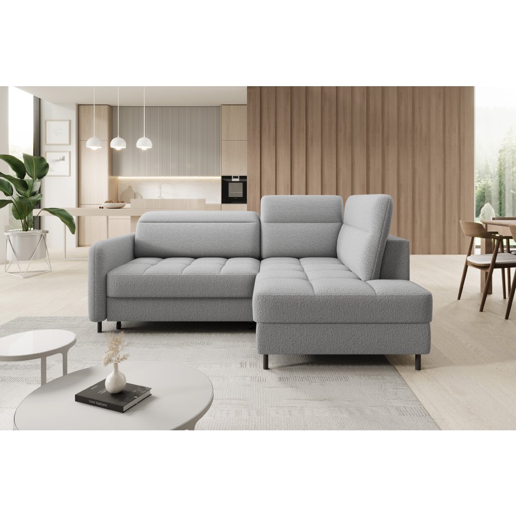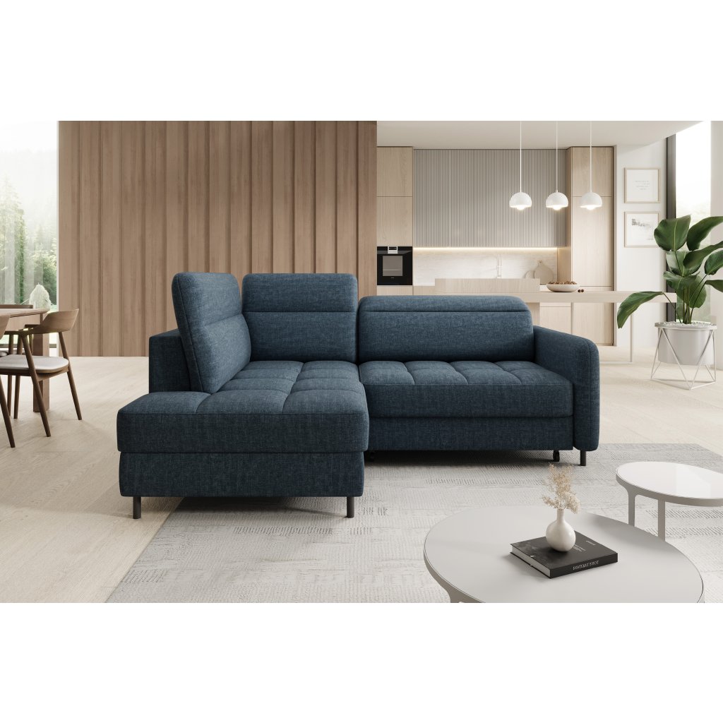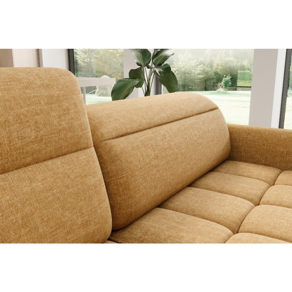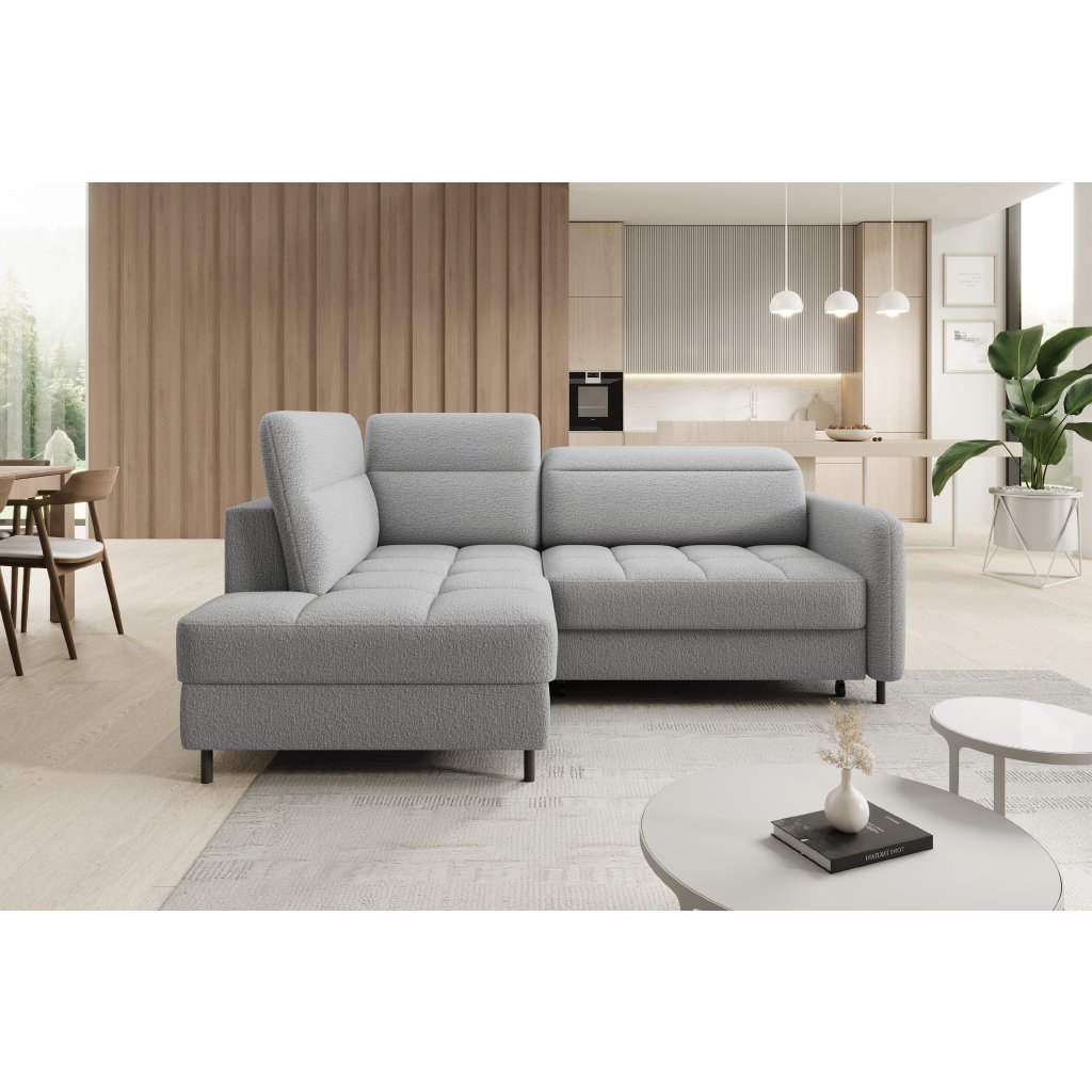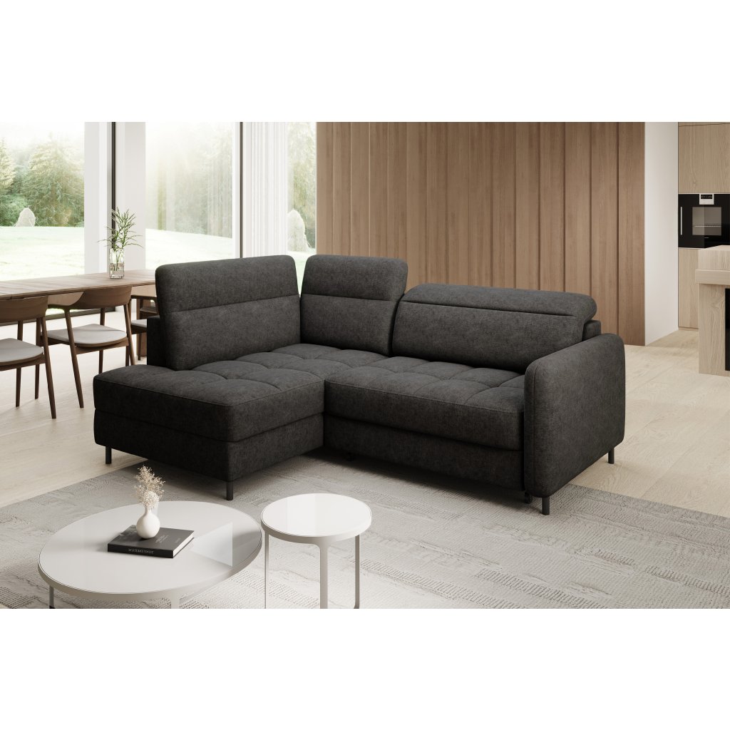 Rohová sedací souprava Barea je elegantní a funkční kus nábytku o rozměrech 208x160x100 cm, který je vybaven pohyblivými opěrkami hlavy a kovovými černými nohami o výšce 10 cm. Její pevná konstrukce z vysoce kvalitních materiálů zajišťuje odolnost, zatímco pečlivě tvarovaný sedák a opěrák zaručují pohodlí a správnou oporu zad. Moderní design rohové sedací soupravy Barea znamená, že dokonale zapadne do minimalistických i sofistikovanějších interiérových úprav. Je k dispozici v různých látkách a barvách, je estetická a funkční, ideální pro každodenní lenošení i vítání hostů.Doplňkové parametry