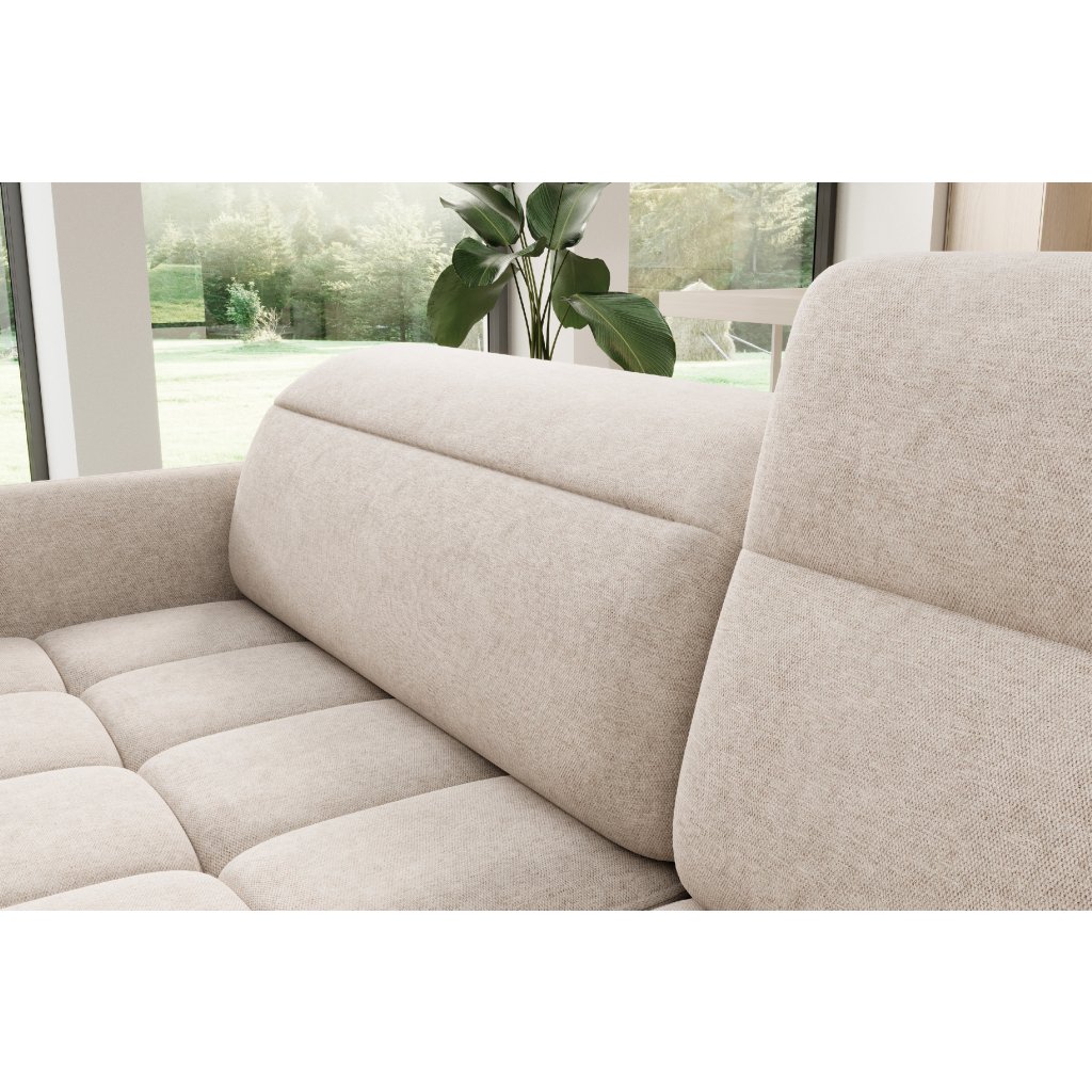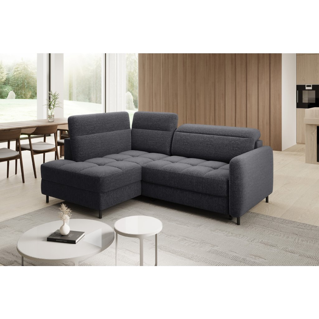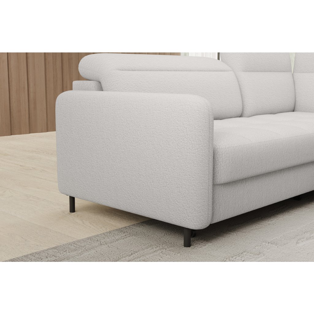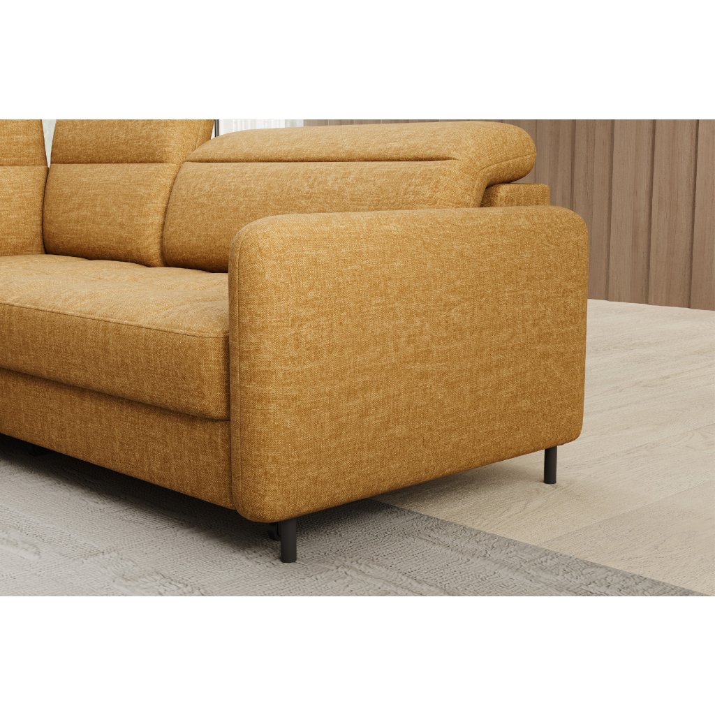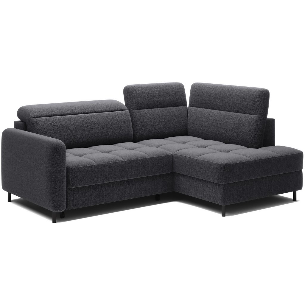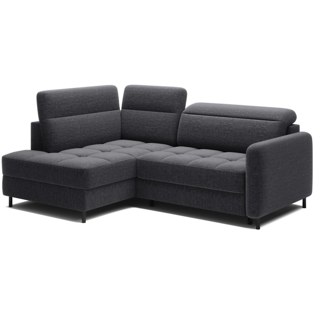 Rohová sedací souprava Barea je elegantní a funkční kus nábytku o rozměrech 208x160x100 cm, který je vybaven pohyblivými opěrkami hlavy a kovovými černými nohami o výšce 10 cm. Její pevná konstrukce z vysoce kvalitních materiálů zajišťuje odolnost, zatímco pečlivě tvarovaný sedák a opěrák zaručují pohodlí a správnou oporu zad. Moderní design rohové sedací soupravy Barea znamená, že dokonale zapadne do minimalistických i sofistikovanějších interiérových úprav. Je k dispozici v různých látkách a barvách, je estetická a funkční, ideální pro každodenní lenošení i vítání hostů.Doplňkové parametry