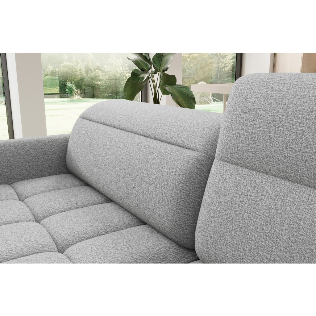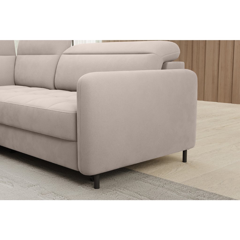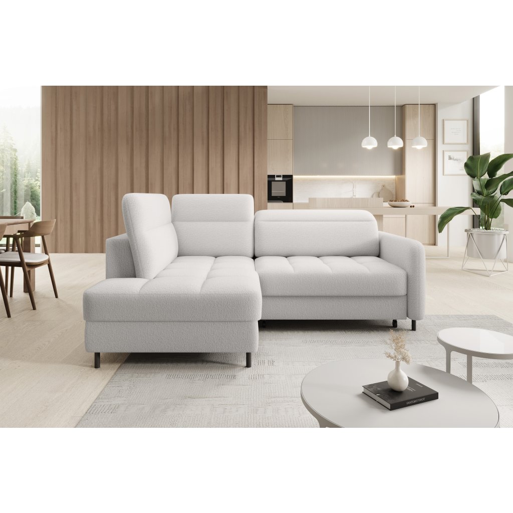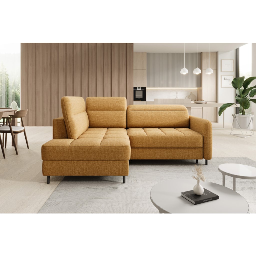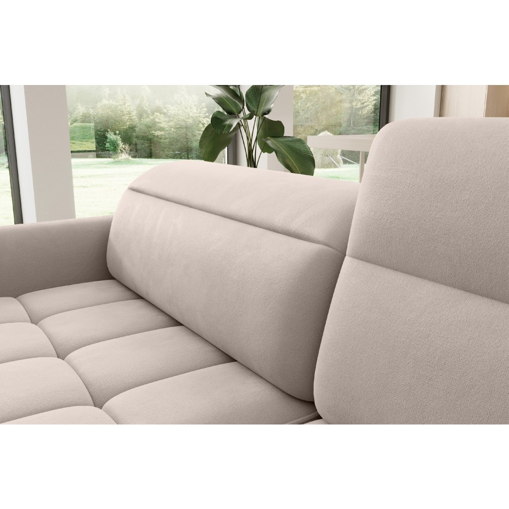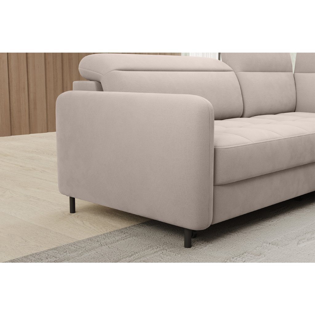 Rohová sedací souprava Barea je elegantní a funkční kus nábytku o rozměrech 208x160x100 cm, který je vybaven pohyblivými opěrkami hlavy a kovovými černými nohami o výšce 10 cm. Její pevná konstrukce z vysoce kvalitních materiálů zajišťuje odolnost, zatímco pečlivě tvarovaný sedák a opěrák zaručují pohodlí a správnou oporu zad. Moderní design rohové sedací soupravy Barea znamená, že dokonale zapadne do minimalistických i sofistikovanějších interiérových úprav. Je k dispozici v různých látkách a barvách, je estetická a funkční, ideální pro každodenní lenošení i vítání hostů.Doplňkové parametry