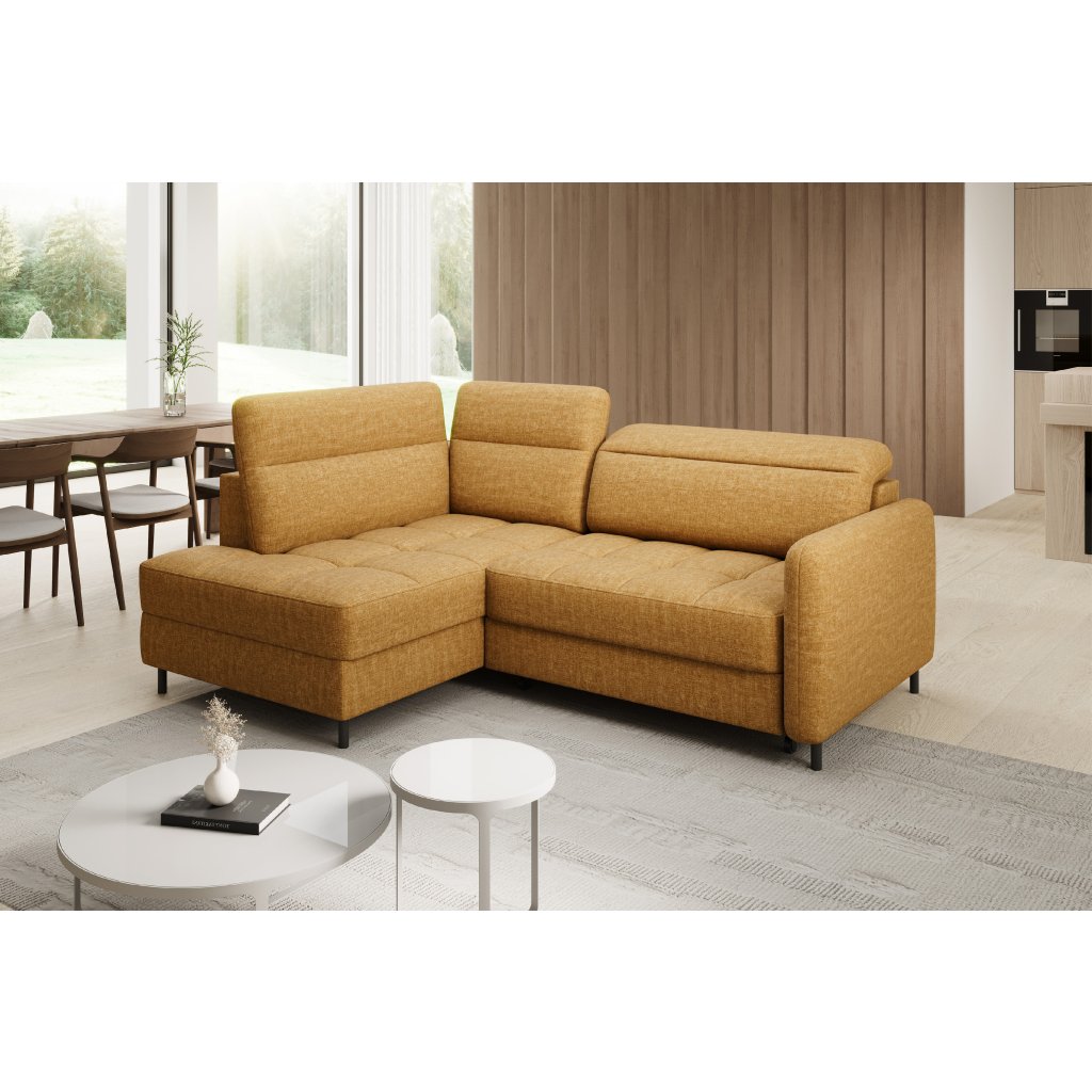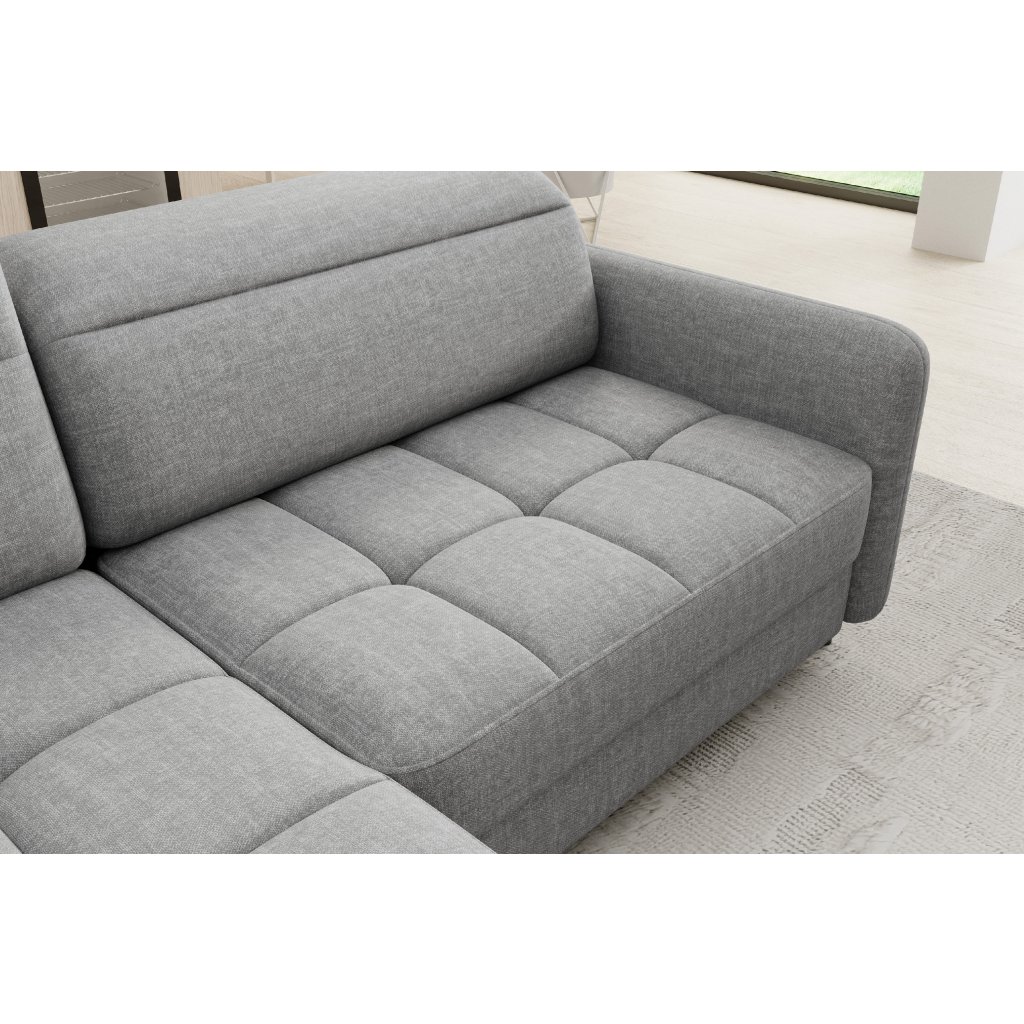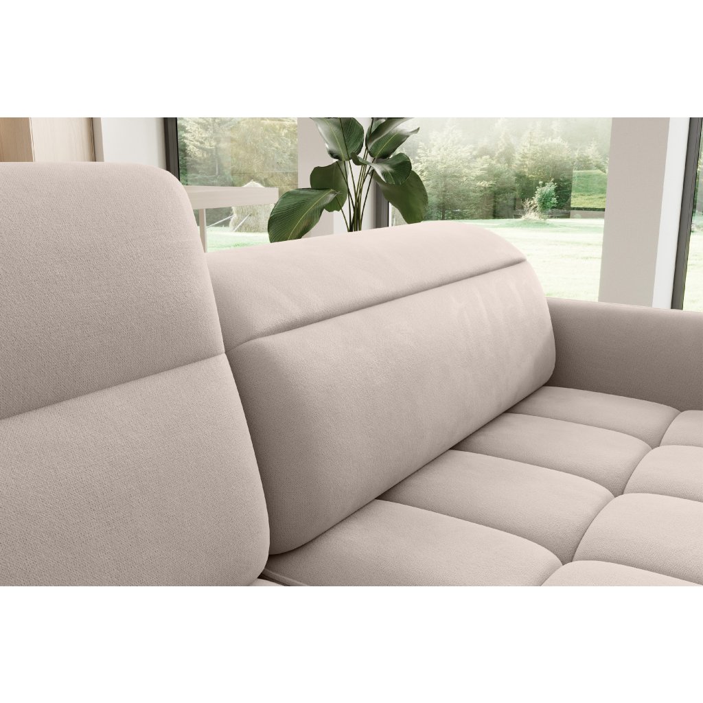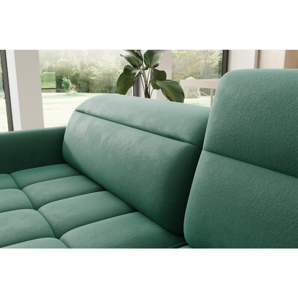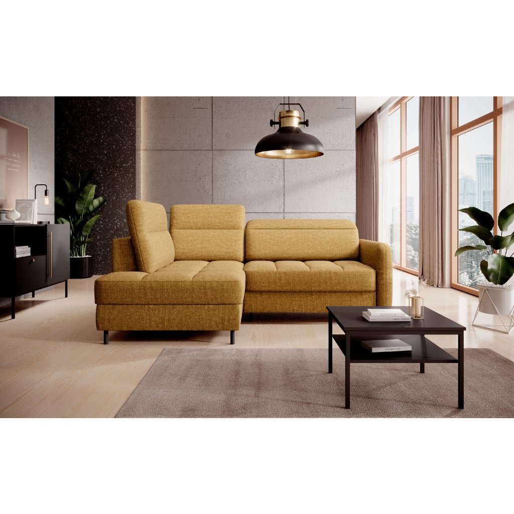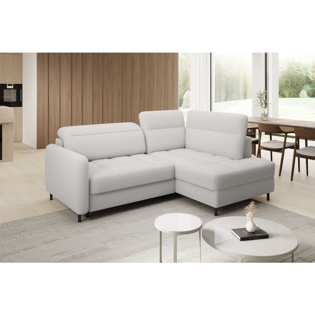 Rohová sedací souprava Barea je elegantní a funkční kus nábytku o rozměrech 208x160x100 cm, který je vybaven pohyblivými opěrkami hlavy a kovovými černými nohami o výšce 10 cm. Její pevná konstrukce z vysoce kvalitních materiálů zajišťuje odolnost, zatímco pečlivě tvarovaný sedák a opěrák zaručují pohodlí a správnou oporu zad. Moderní design rohové sedací soupravy Barea znamená, že dokonale zapadne do minimalistických i sofistikovanějších interiérových úprav. Je k dispozici v různých látkách a barvách, je estetická a funkční, ideální pro každodenní lenošení i vítání hostů.Doplňkové parametry