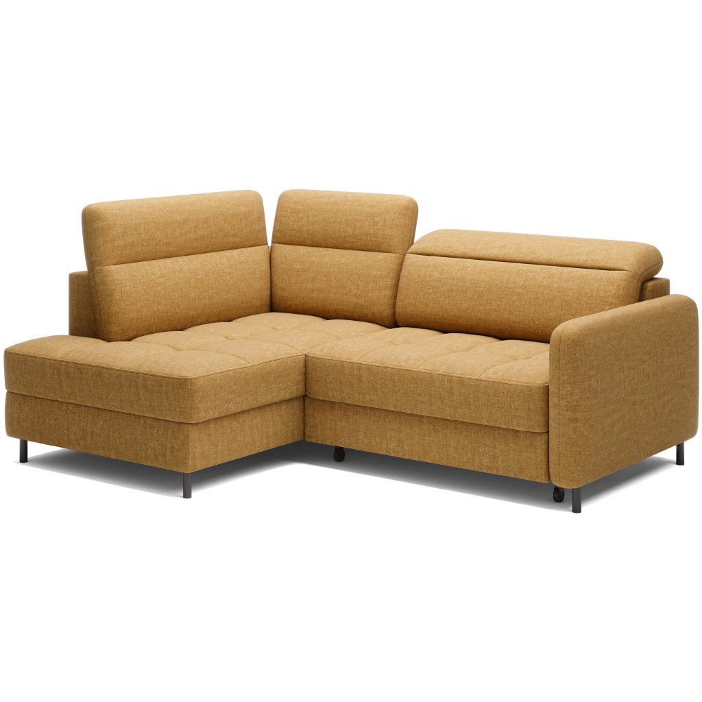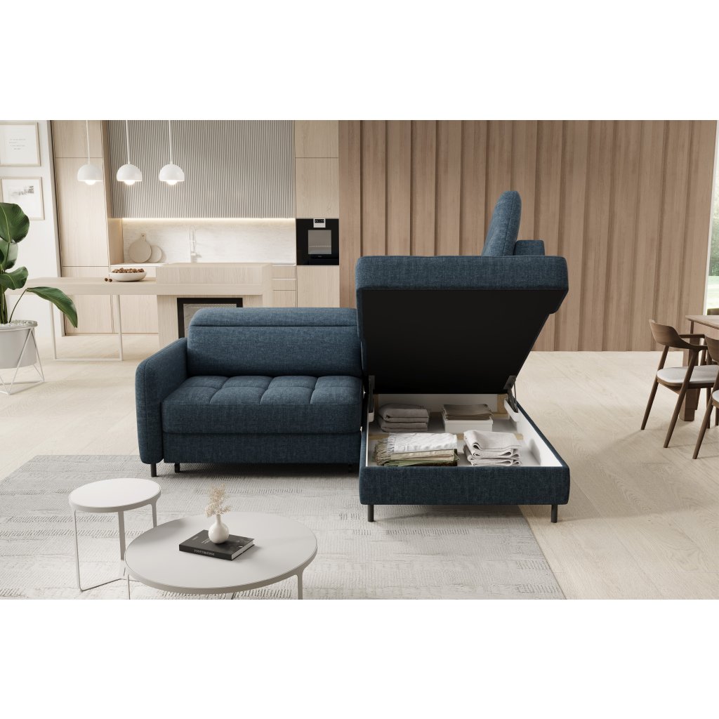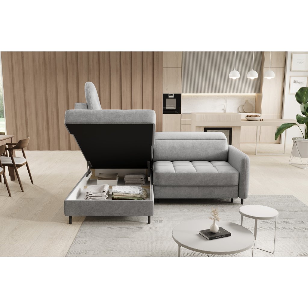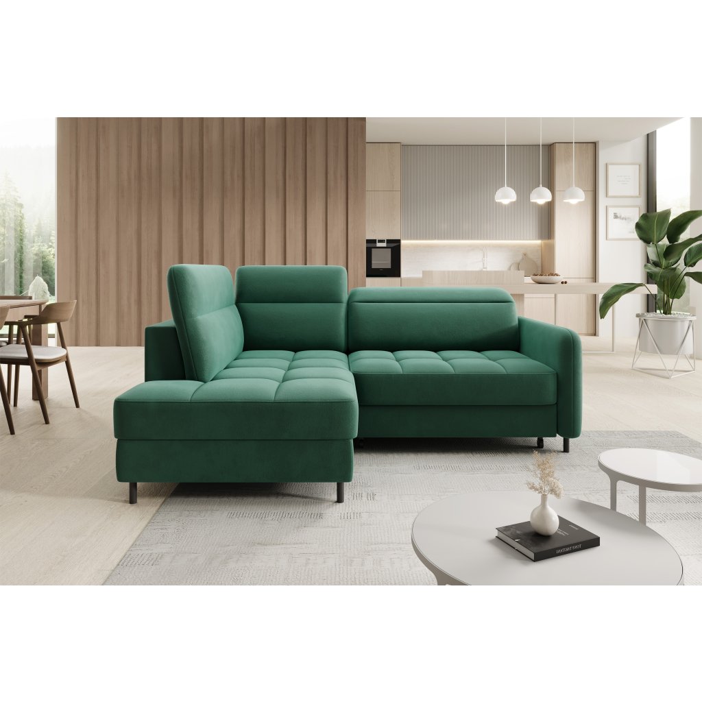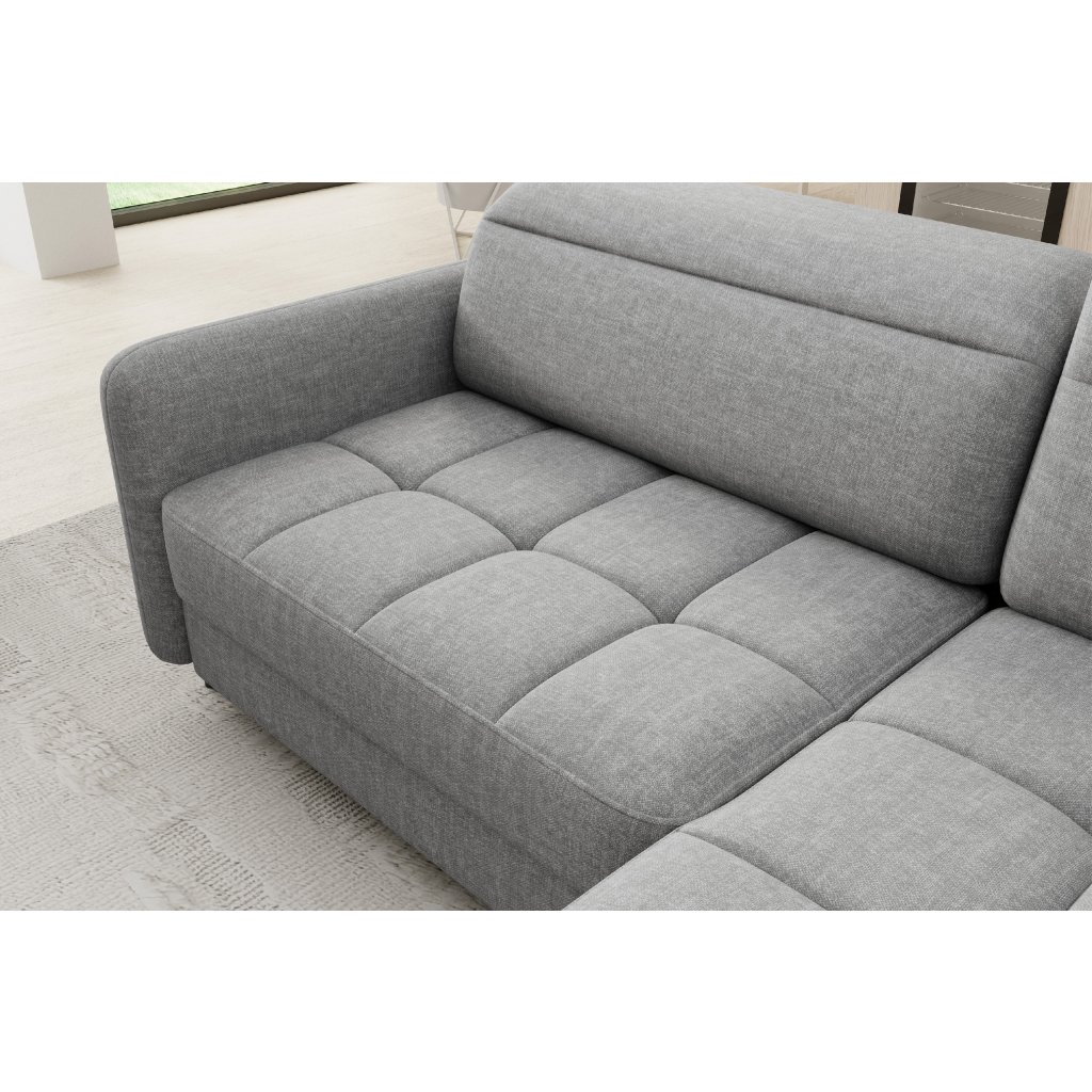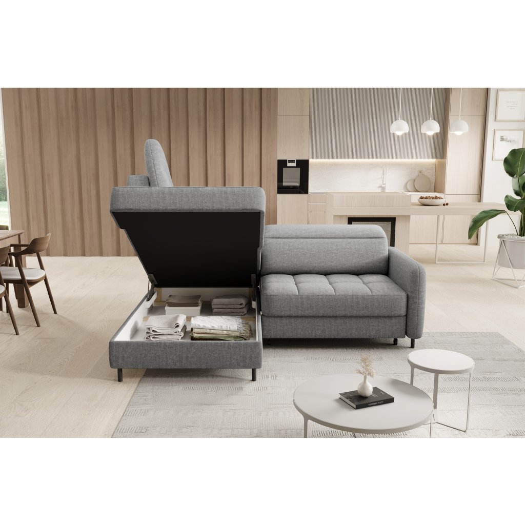 Rohová sedací souprava Barea je elegantní a funkční kus nábytku o rozměrech 208x160x100 cm, který je vybaven pohyblivými opěrkami hlavy a kovovými černými nohami o výšce 10 cm. Její pevná konstrukce z vysoce kvalitních materiálů zajišťuje odolnost, zatímco pečlivě tvarovaný sedák a opěrák zaručují pohodlí a správnou oporu zad. Moderní design rohové sedací soupravy Barea znamená, že dokonale zapadne do minimalistických i sofistikovanějších interiérových úprav. Je k dispozici v různých látkách a barvách, je estetická a funkční, ideální pro každodenní lenošení i vítání hostů.Doplňkové parametry