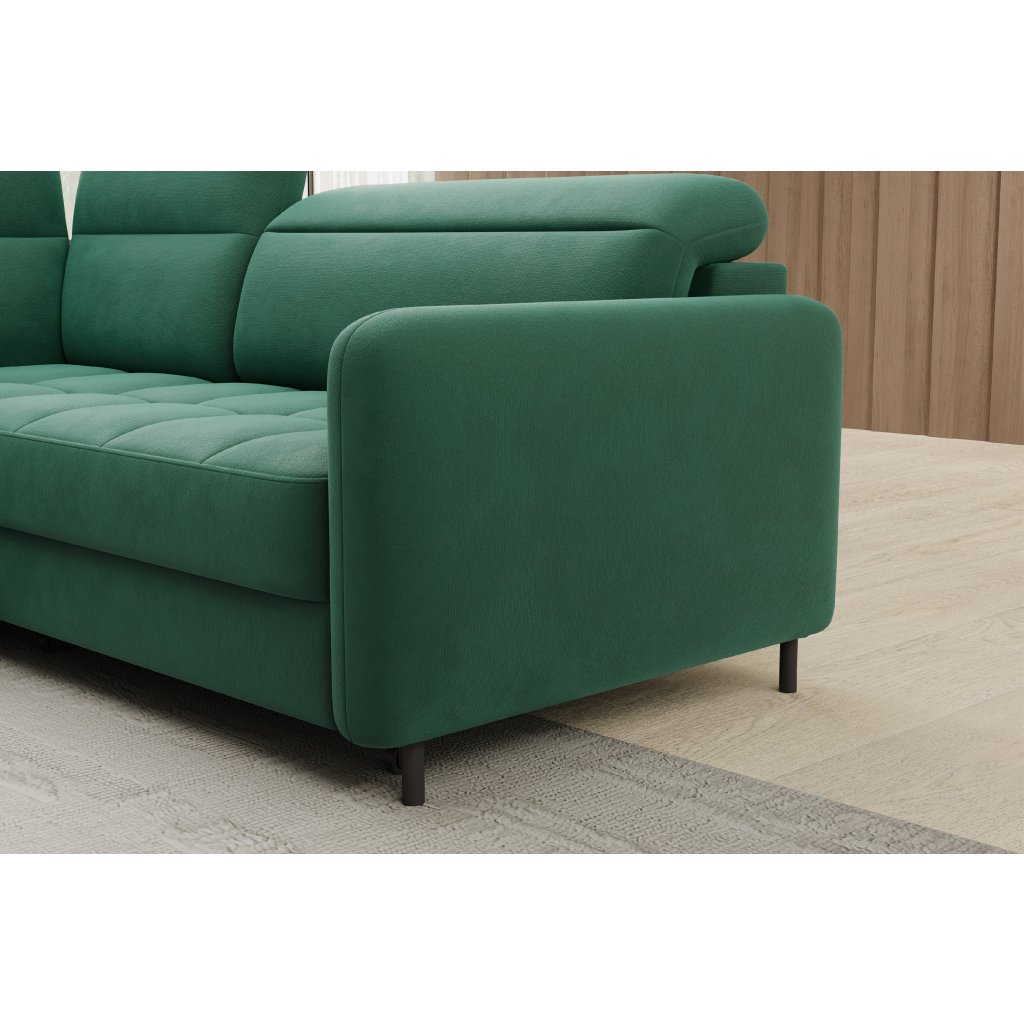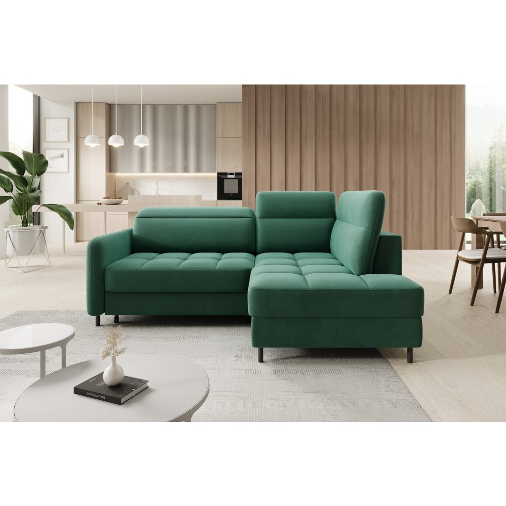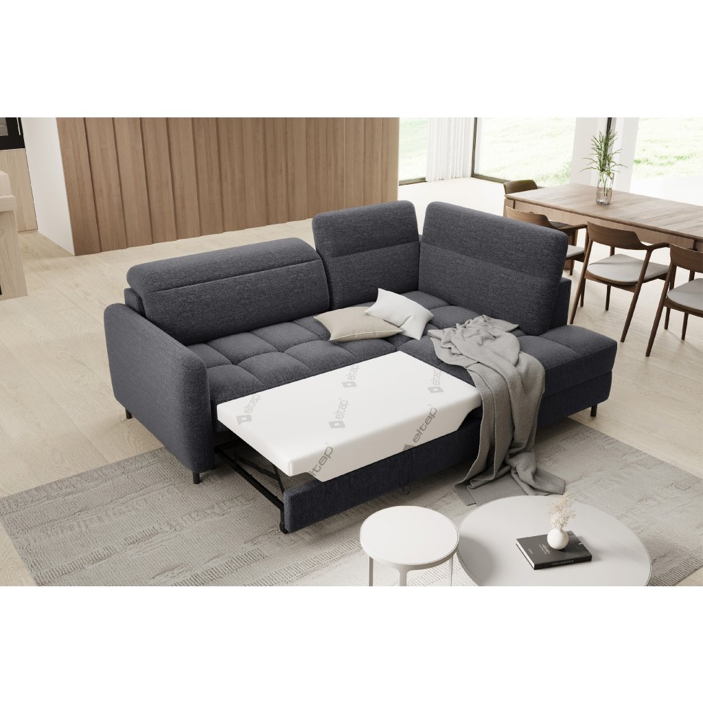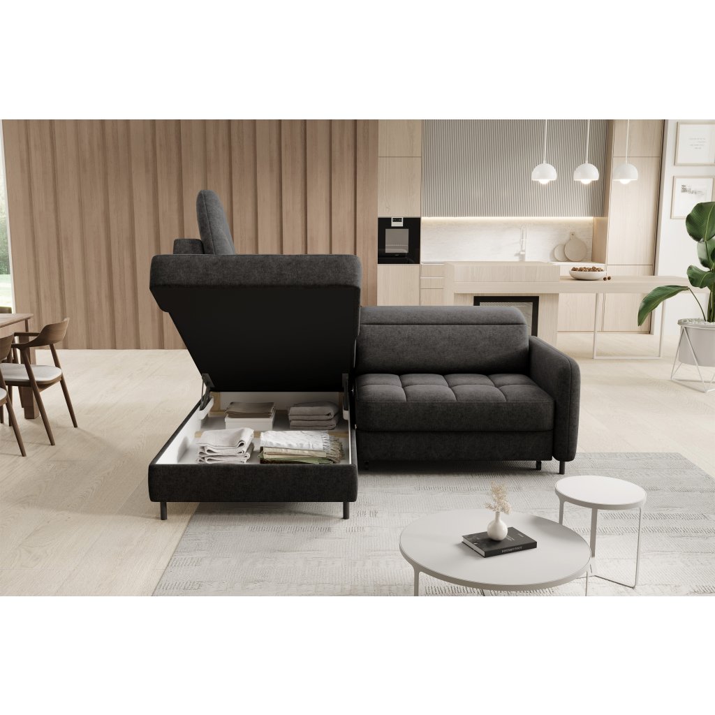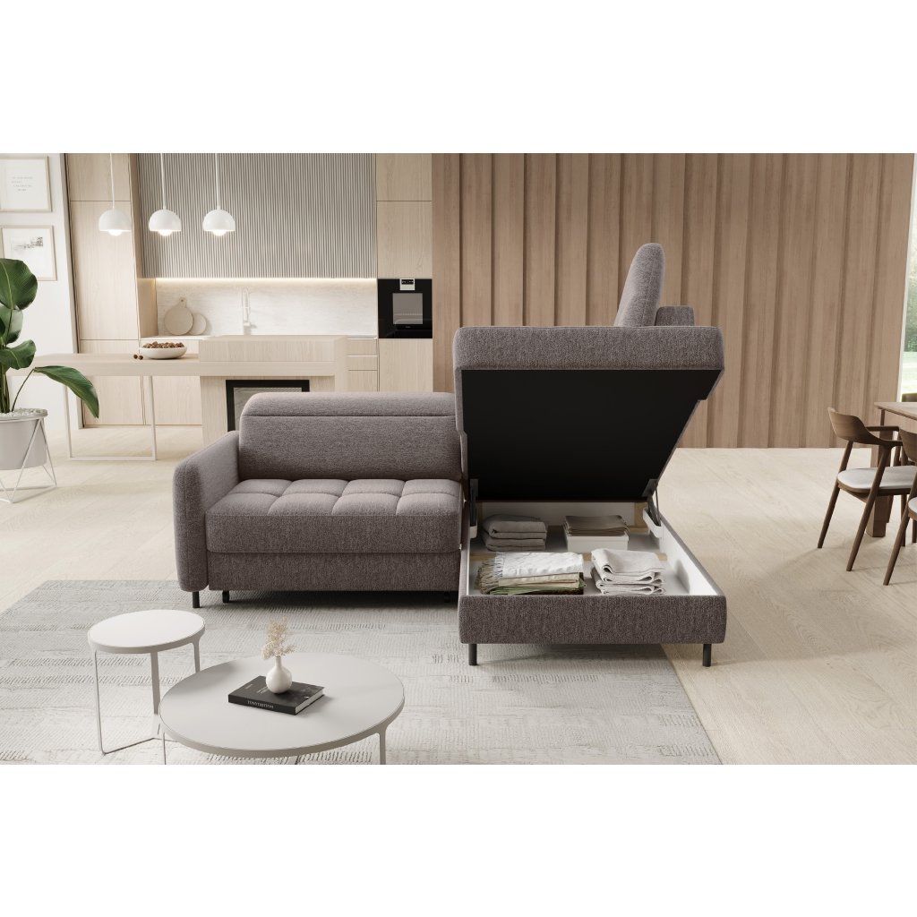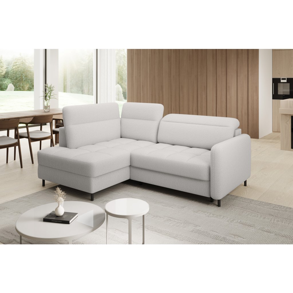Rohová sedací souprava Barea je elegantní a funkční kus nábytku o rozměrech 208x160x100 cm, který je vybaven pohyblivými opěrkami hlavy a kovovými černými nohami o výšce 10 cm. Její pevná konstrukce z vysoce kvalitních materiálů zajišťuje odolnost, zatímco pečlivě tvarovaný sedák a opěrák zaručují pohodlí a správnou oporu zad. Moderní design rohové sedací soupravy Barea znamená, že dokonale zapadne do minimalistických i sofistikovanějších interiérových úprav. Je k dispozici v různých látkách a barvách, je estetická a funkční, ideální pro každodenní lenošení i vítání hostů.Doplňkové parametry