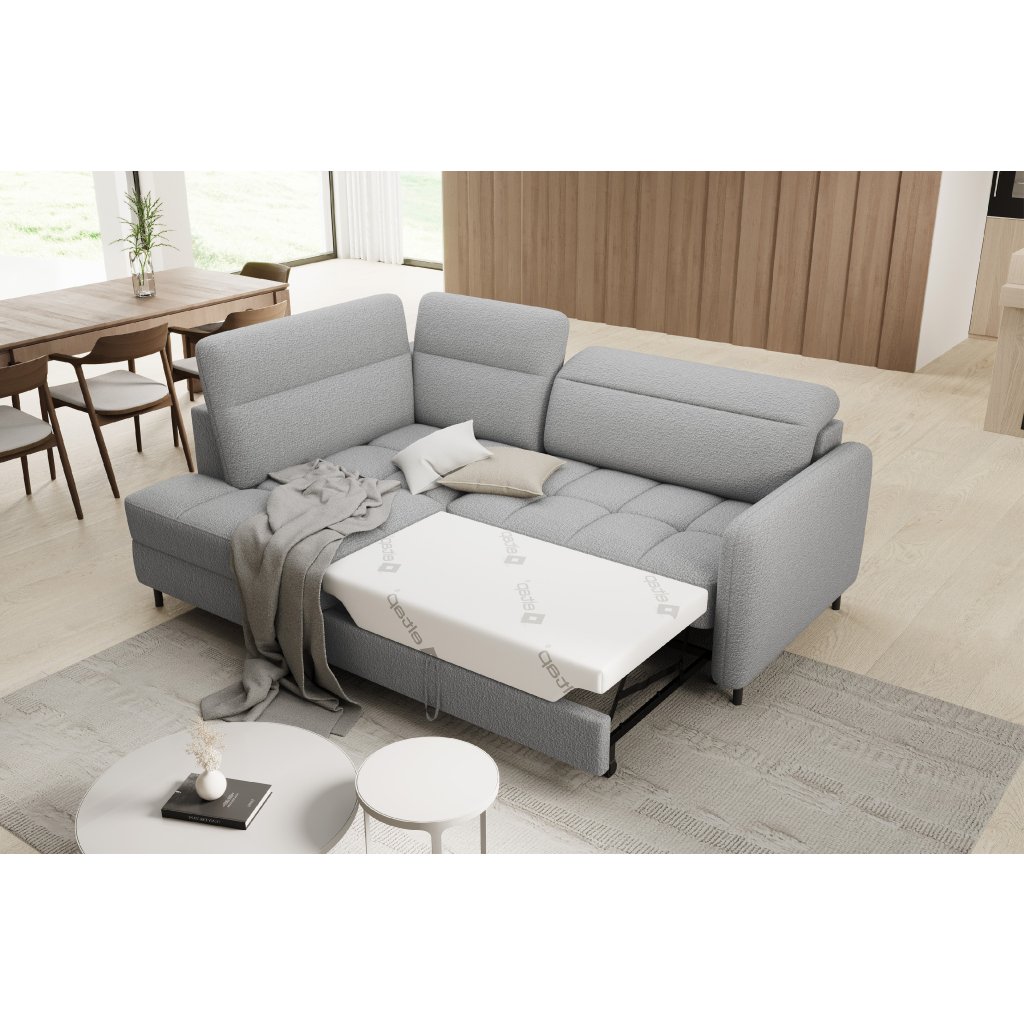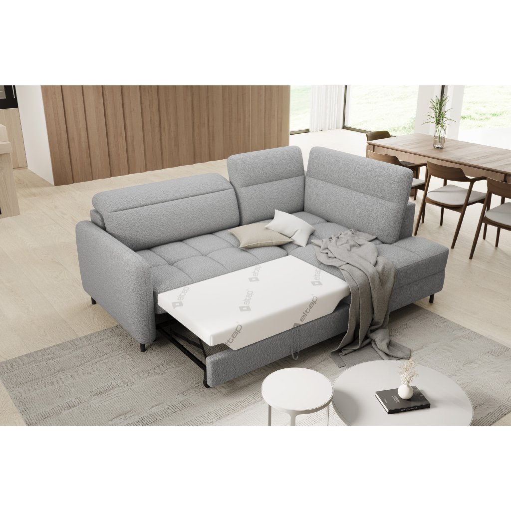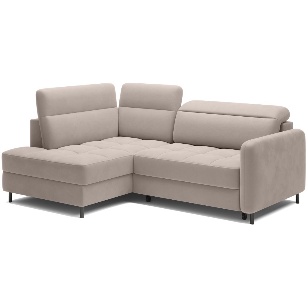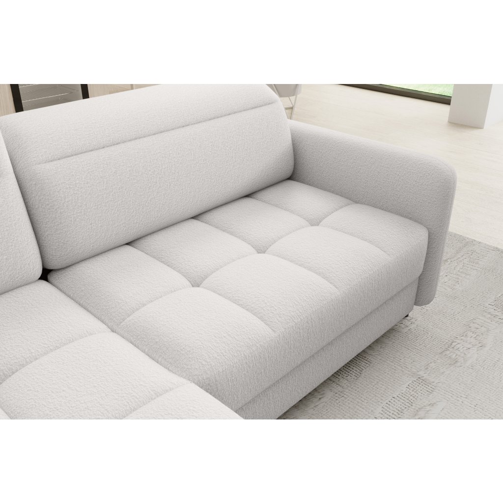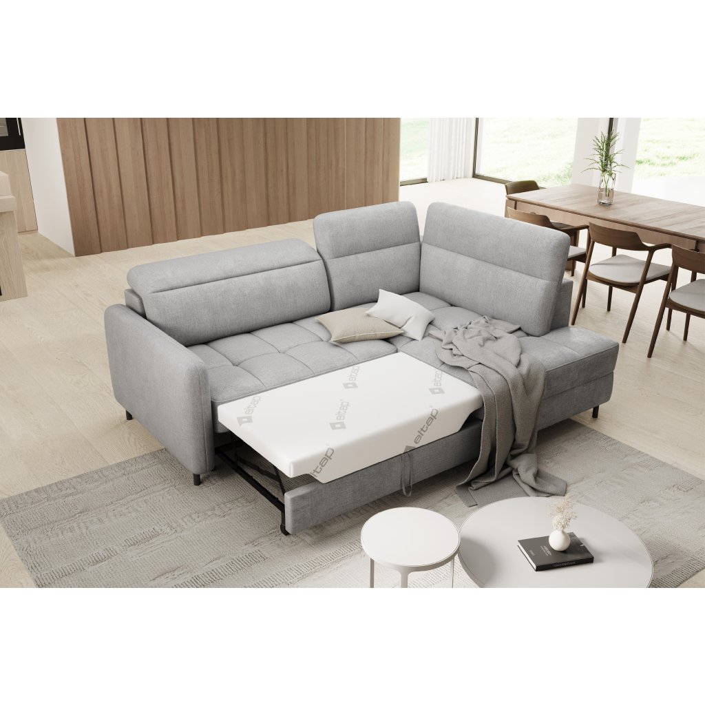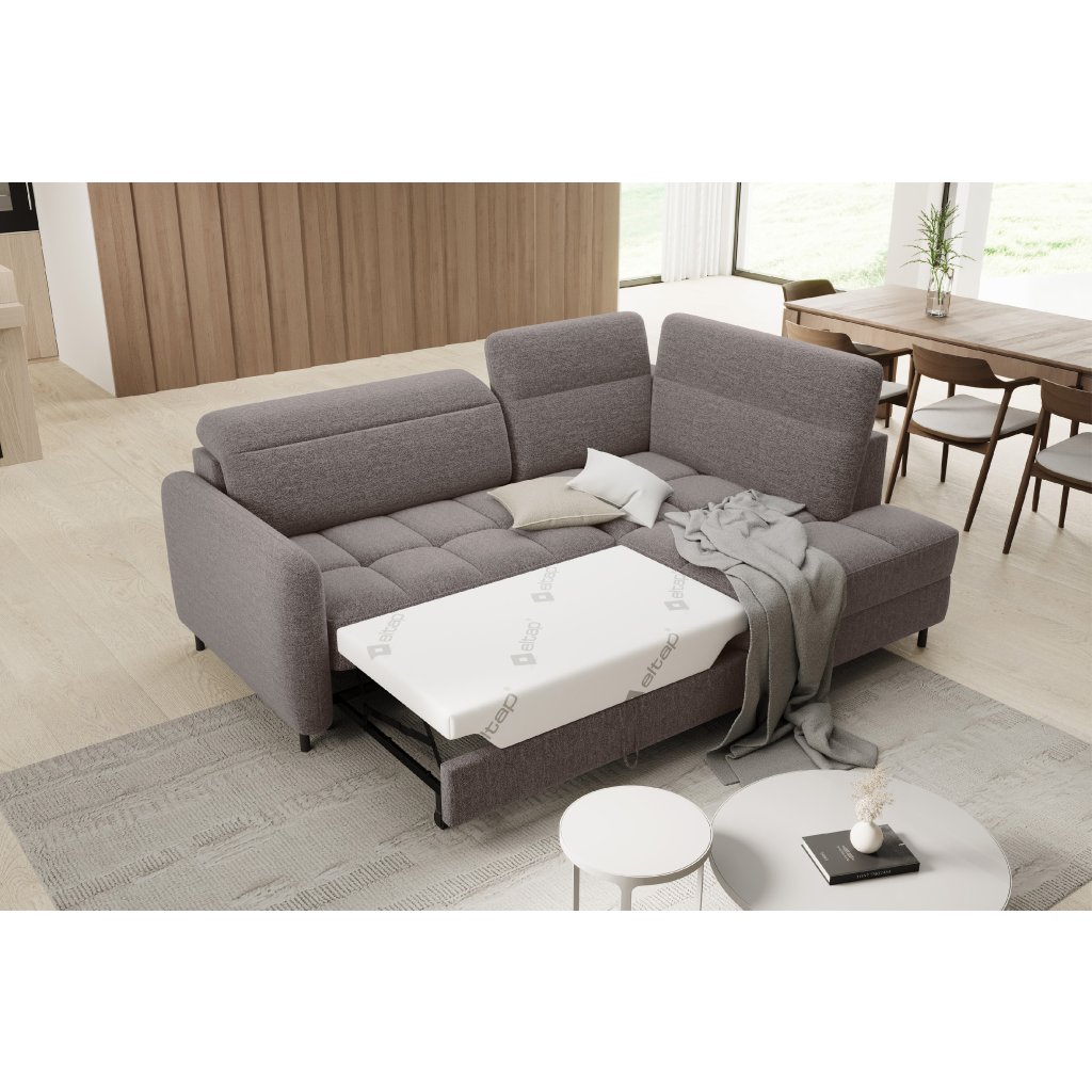 Rohová sedací souprava Barea je elegantní a funkční kus nábytku o rozměrech 208x160x100 cm, který je vybaven pohyblivými opěrkami hlavy a kovovými černými nohami o výšce 10 cm. Její pevná konstrukce z vysoce kvalitních materiálů zajišťuje odolnost, zatímco pečlivě tvarovaný sedák a opěrák zaručují pohodlí a správnou oporu zad. Moderní design rohové sedací soupravy Barea znamená, že dokonale zapadne do minimalistických i sofistikovanějších interiérových úprav. Je k dispozici v různých látkách a barvách, je estetická a funkční, ideální pro každodenní lenošení i vítání hostů.Doplňkové parametry