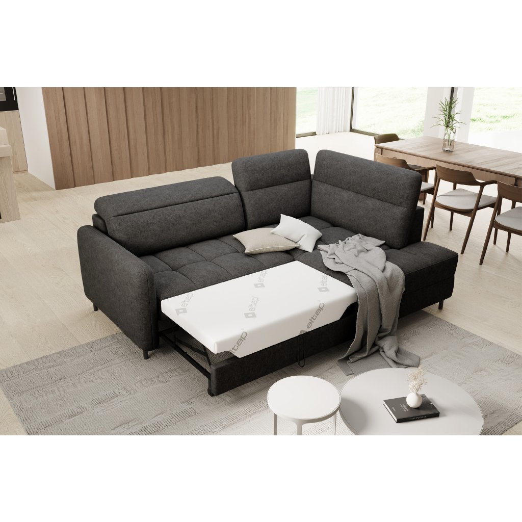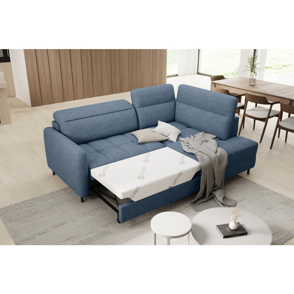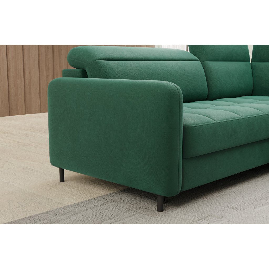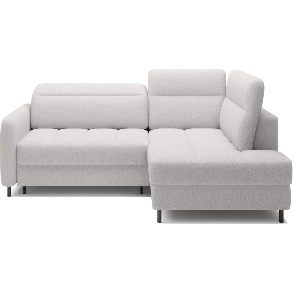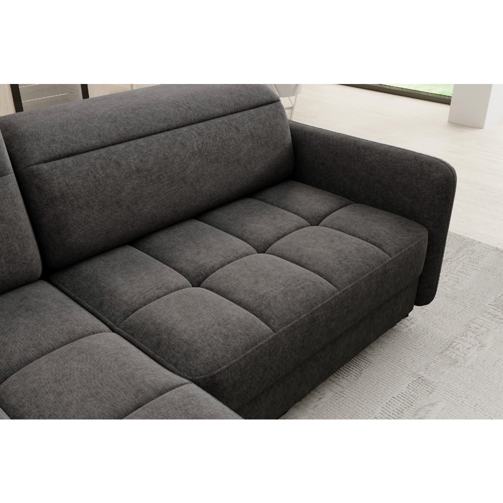 Rohová sedací souprava Barea je elegantní a funkční kus nábytku o rozměrech 208x160x100 cm, který je vybaven pohyblivými opěrkami hlavy a kovovými černými nohami o výšce 10 cm. Její pevná konstrukce z vysoce kvalitních materiálů zajišťuje odolnost, zatímco pečlivě tvarovaný sedák a opěrák zaručují pohodlí a správnou oporu zad. Moderní design rohové sedací soupravy Barea znamená, že dokonale zapadne do minimalistických i sofistikovanějších interiérových úprav. Je k dispozici v různých látkách a barvách, je estetická a funkční, ideální pro každodenní lenošení i vítání hostů.Doplňkové parametry