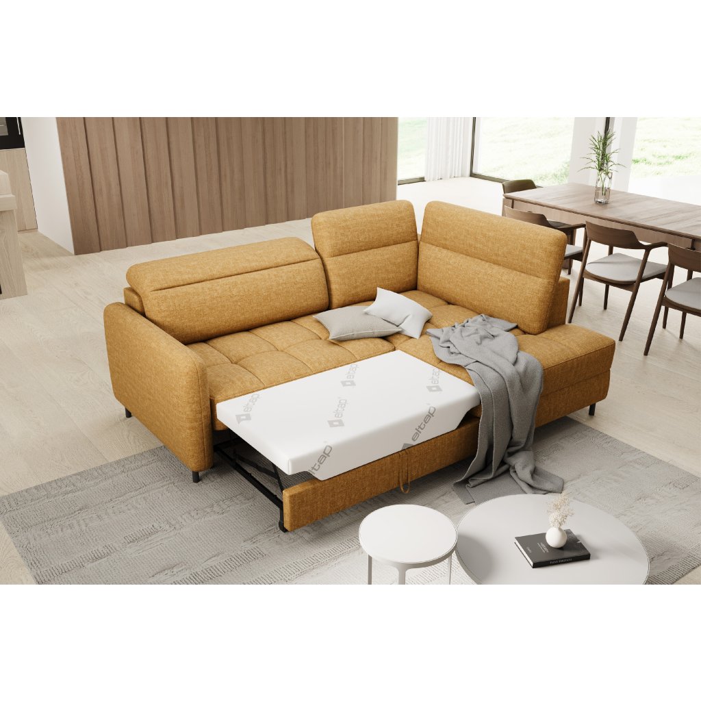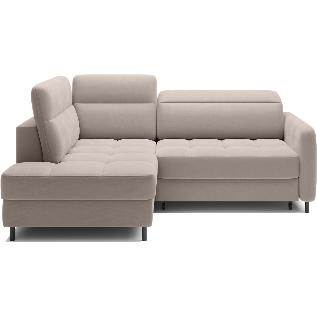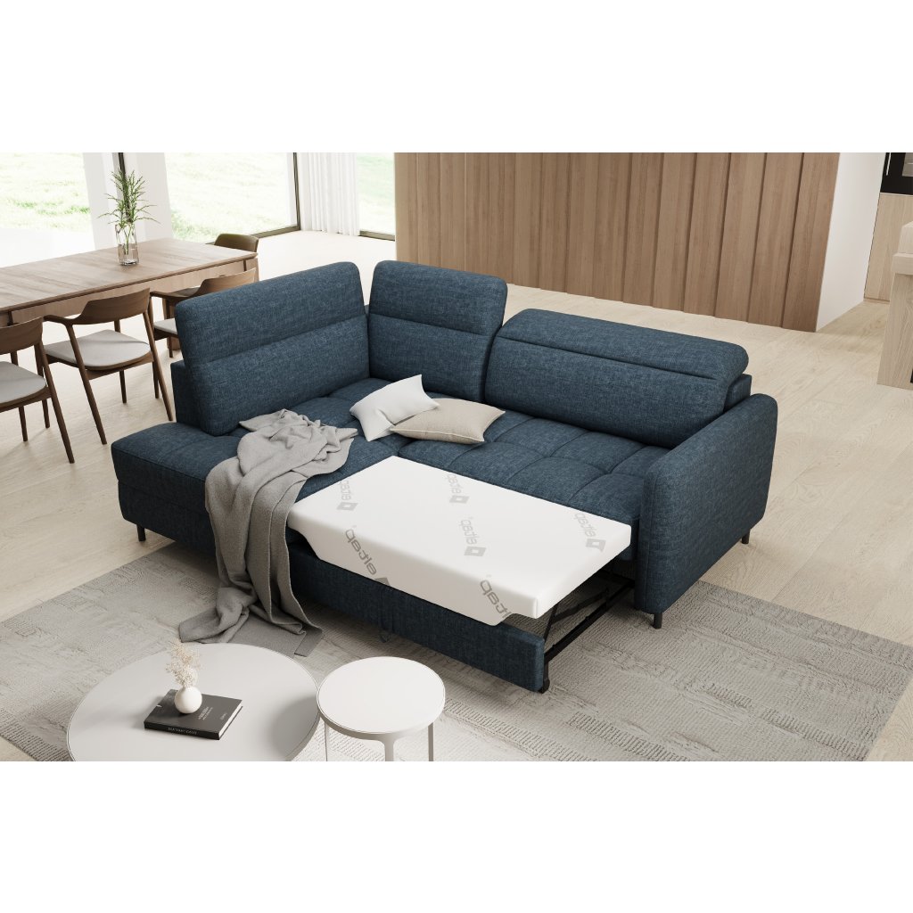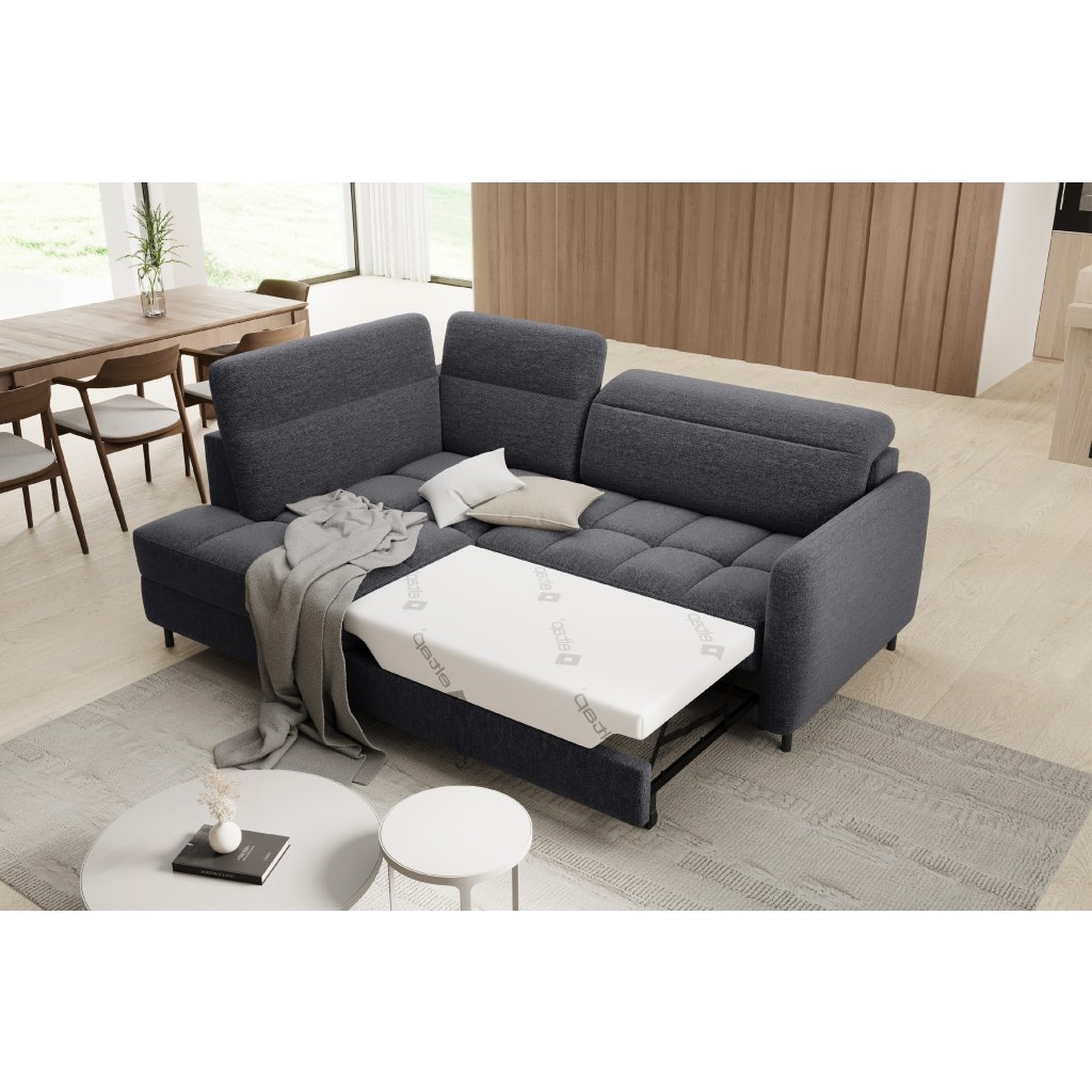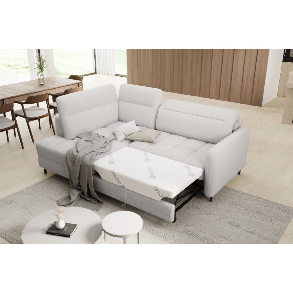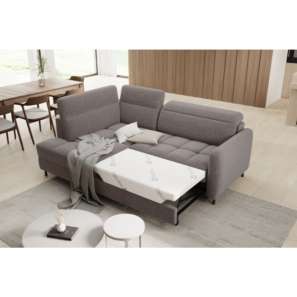 Rohová sedací souprava Barea je elegantní a funkční kus nábytku o rozměrech 208x160x100 cm, který je vybaven pohyblivými opěrkami hlavy a kovovými černými nohami o výšce 10 cm. Její pevná konstrukce z vysoce kvalitních materiálů zajišťuje odolnost, zatímco pečlivě tvarovaný sedák a opěrák zaručují pohodlí a správnou oporu zad. Moderní design rohové sedací soupravy Barea znamená, že dokonale zapadne do minimalistických i sofistikovanějších interiérových úprav. Je k dispozici v různých látkách a barvách, je estetická a funkční, ideální pro každodenní lenošení i vítání hostů.Doplňkové parametry