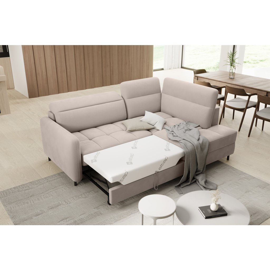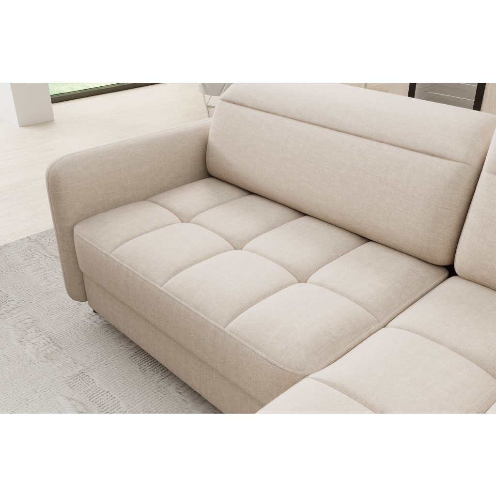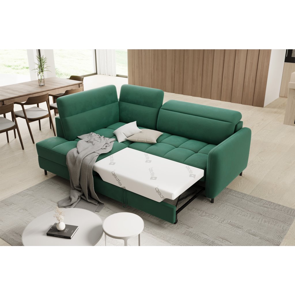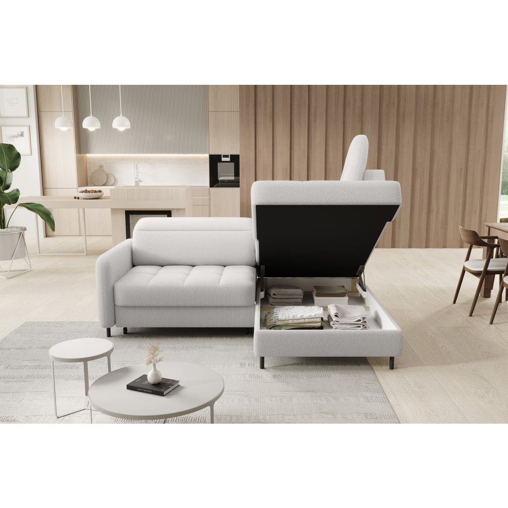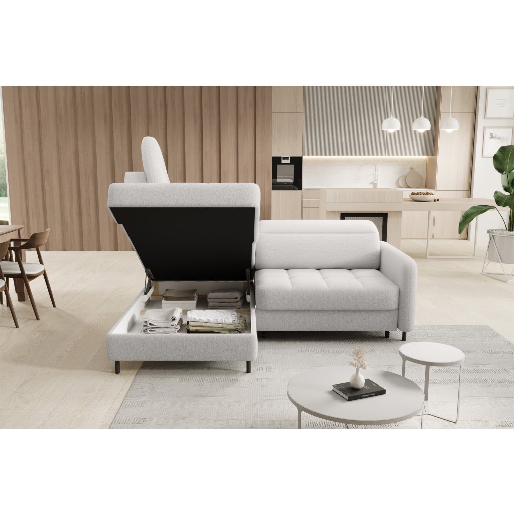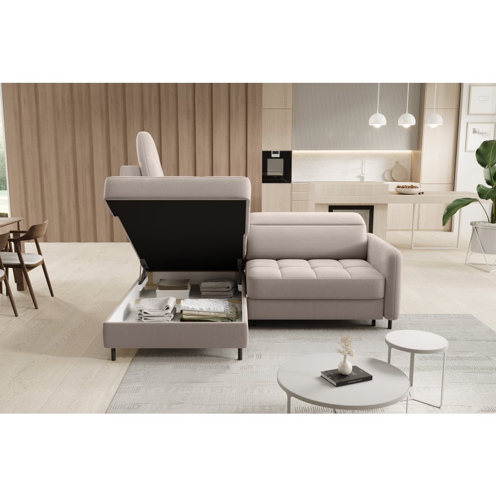 Rohová sedací souprava Barea je elegantní a funkční kus nábytku o rozměrech 208x160x100 cm, který je vybaven pohyblivými opěrkami hlavy a kovovými černými nohami o výšce 10 cm. Její pevná konstrukce z vysoce kvalitních materiálů zajišťuje odolnost, zatímco pečlivě tvarovaný sedák a opěrák zaručují pohodlí a správnou oporu zad. Moderní design rohové sedací soupravy Barea znamená, že dokonale zapadne do minimalistických i sofistikovanějších interiérových úprav. Je k dispozici v různých látkách a barvách, je estetická a funkční, ideální pro každodenní lenošení i vítání hostů.Doplňkové parametry