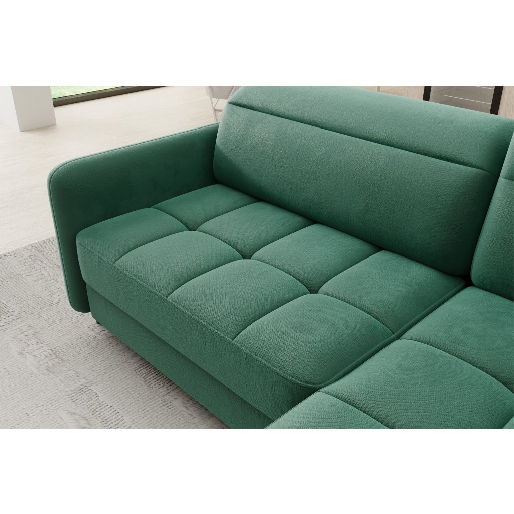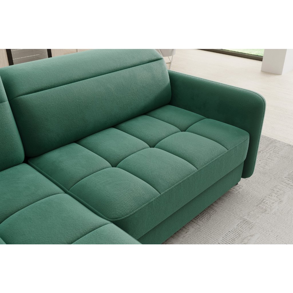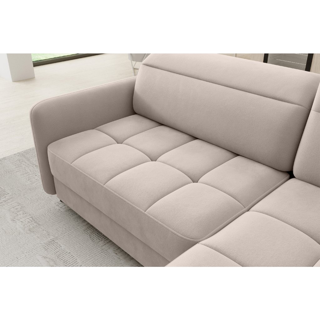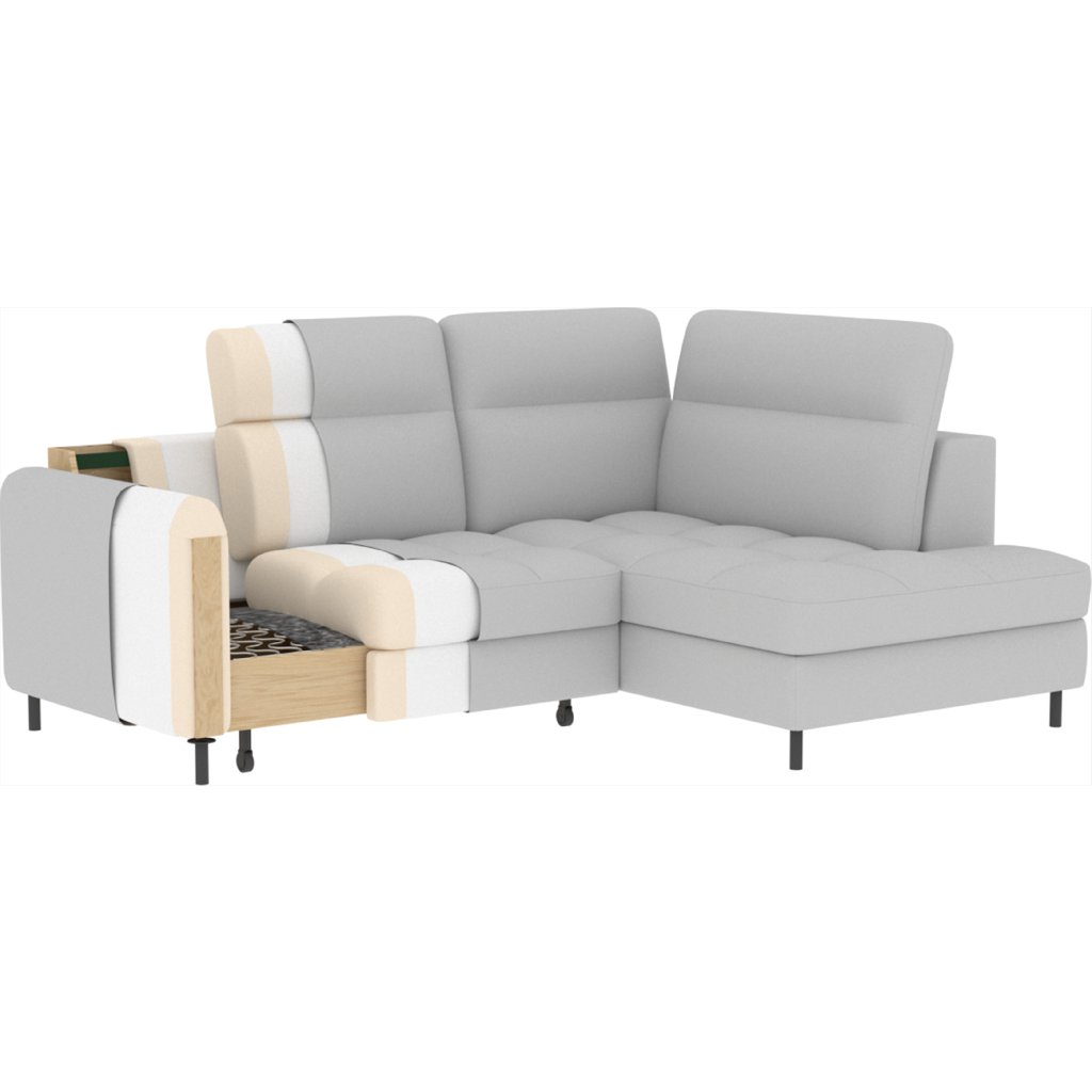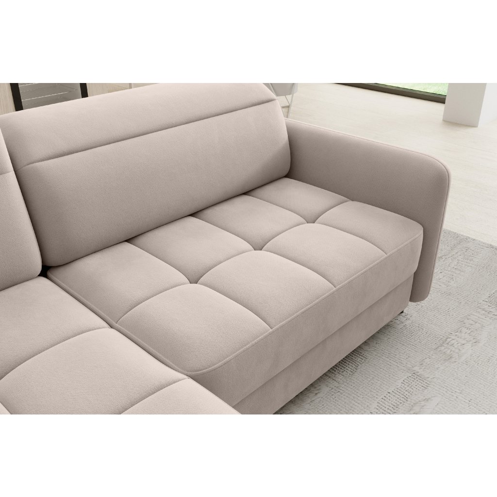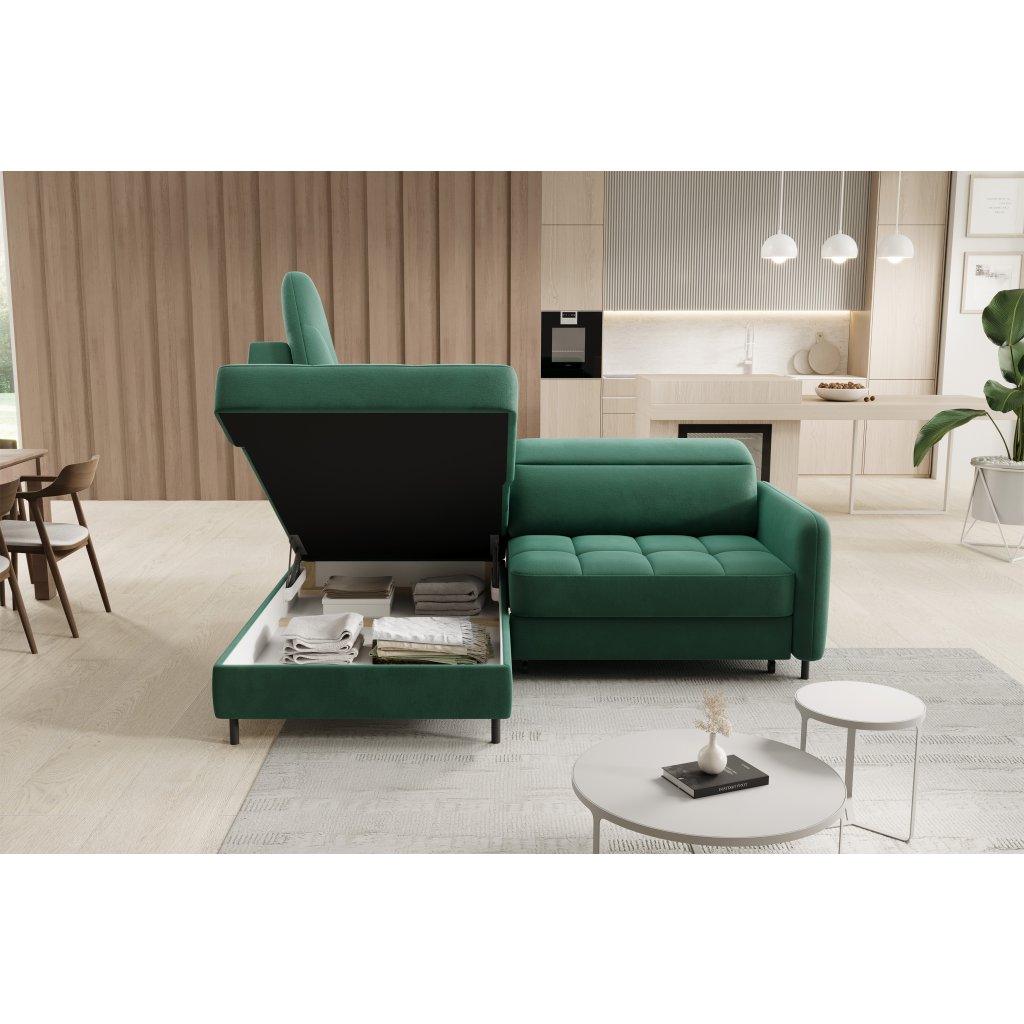 Rohová sedací souprava Barea je elegantní a funkční kus nábytku o rozměrech 208x160x100 cm, který je vybaven pohyblivými opěrkami hlavy a kovovými černými nohami o výšce 10 cm. Její pevná konstrukce z vysoce kvalitních materiálů zajišťuje odolnost, zatímco pečlivě tvarovaný sedák a opěrák zaručují pohodlí a správnou oporu zad. Moderní design rohové sedací soupravy Barea znamená, že dokonale zapadne do minimalistických i sofistikovanějších interiérových úprav. Je k dispozici v různých látkách a barvách, je estetická a funkční, ideální pro každodenní lenošení i vítání hostů.Doplňkové parametry