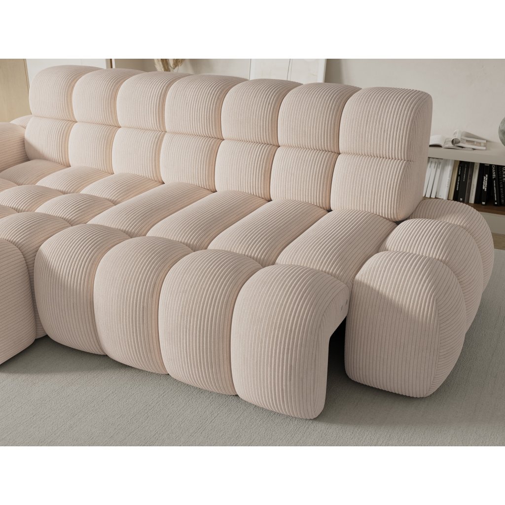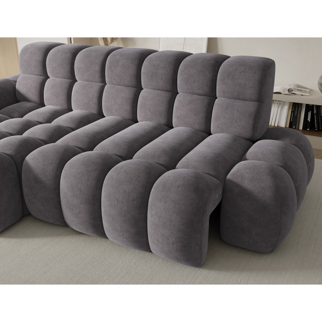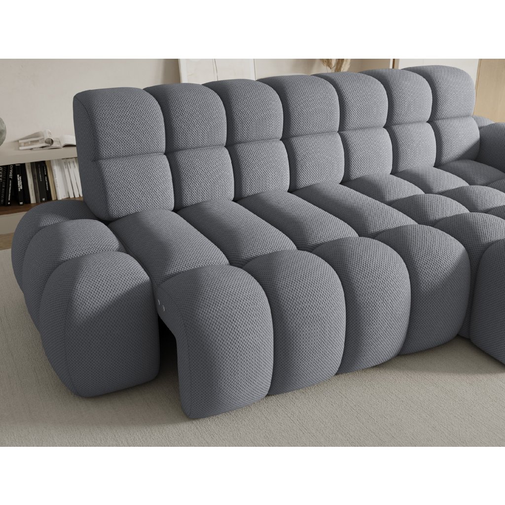Rohová sedací souprava Ceedro je vybavena elektrickým rozkladem sedáku, který umožňuje nastavit hloubku a poskytnout ještě větší pohodlí na míru, a díky funkci spaní je nábytek ideální také jako další místo pro noční odpočinek.