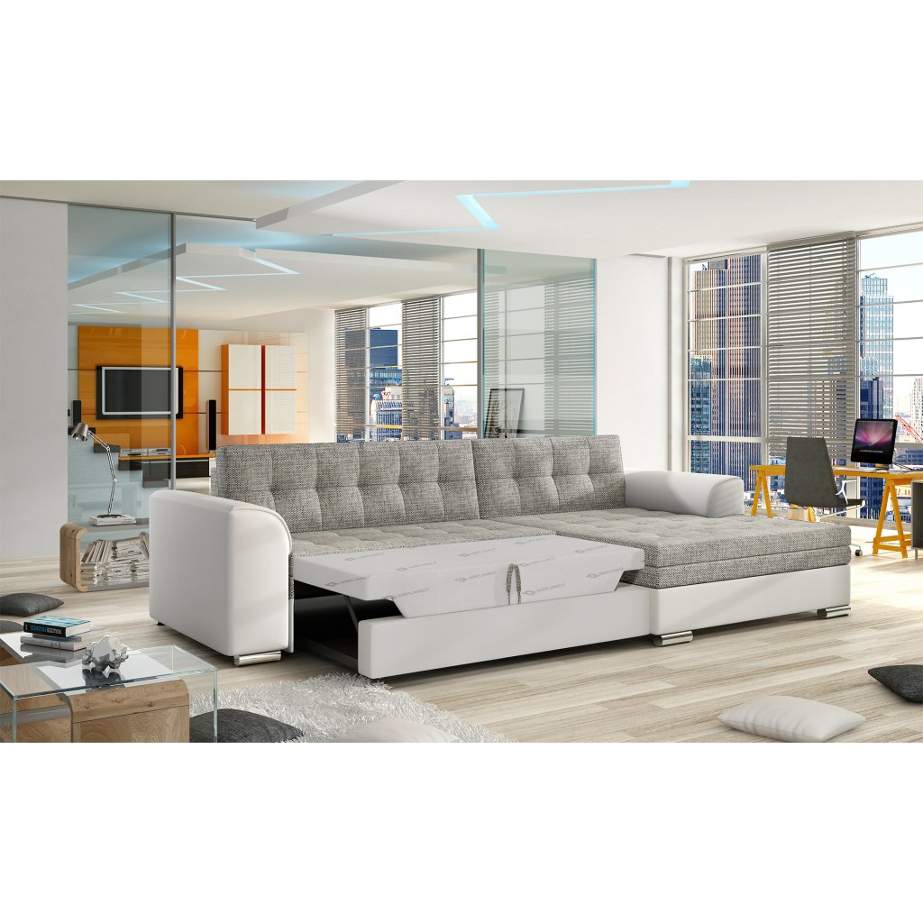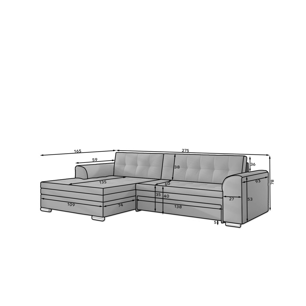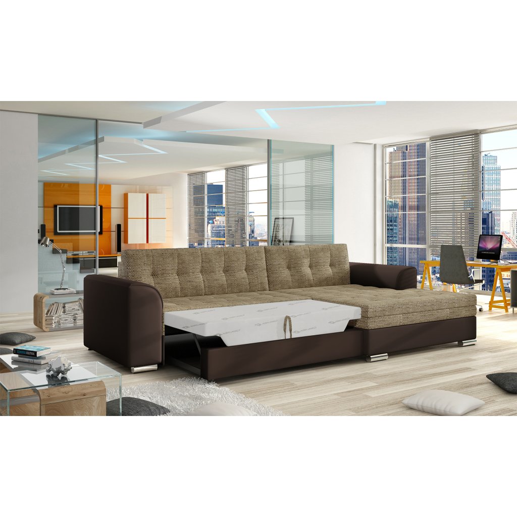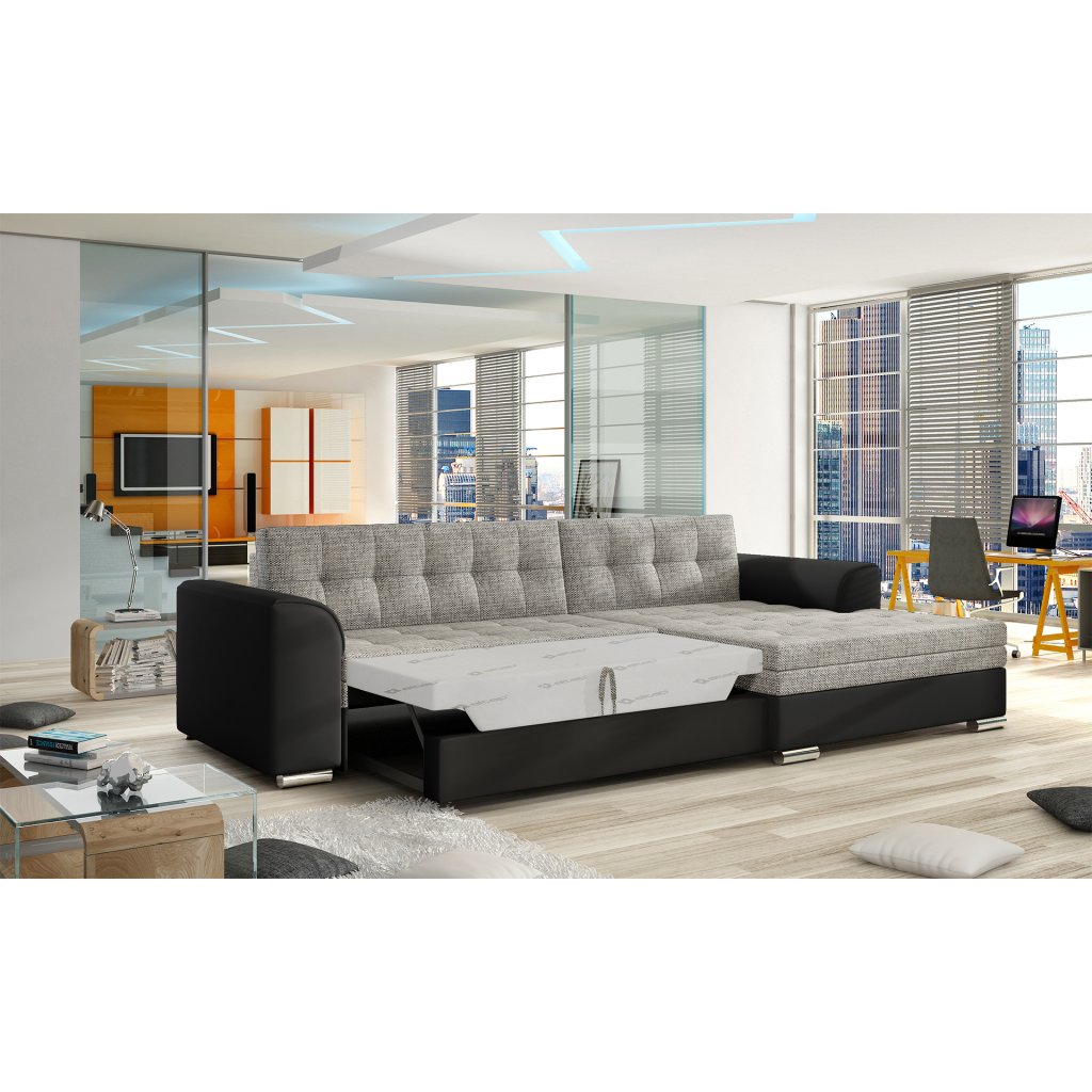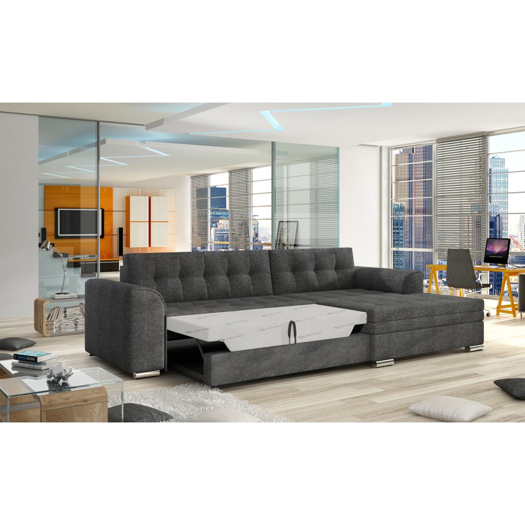 Conforti je multifunkční, elegantní a prostorná rohová sedací souprava vyrobená v moderním klasickém stylu. Jedná se o vysoce kvalitní kus nábytku, který je díky širokému 60 cm hlubokému sedáku a extrémně pružné pěně T30 synonymem pohodlí a třídy.Za sedačkou Conforti s rozměry 275 x 165 x 78 cm se skrývá nejen pohodlí, ale také dobře prospané noci díky mimořádně velké spací ploše. Rozkládací typ delfín umožňuje pohovku jednoduše a intuitivně rozložit a obohatit ji o funkci prostorného lůžka o rozměrech 128x215 cm. Maximální efekt vnímaného pohodlí ovlivňuje mimo jiné měkký, široký sedák, stylové, charakteristické prošívání a originální nohy pohovky.