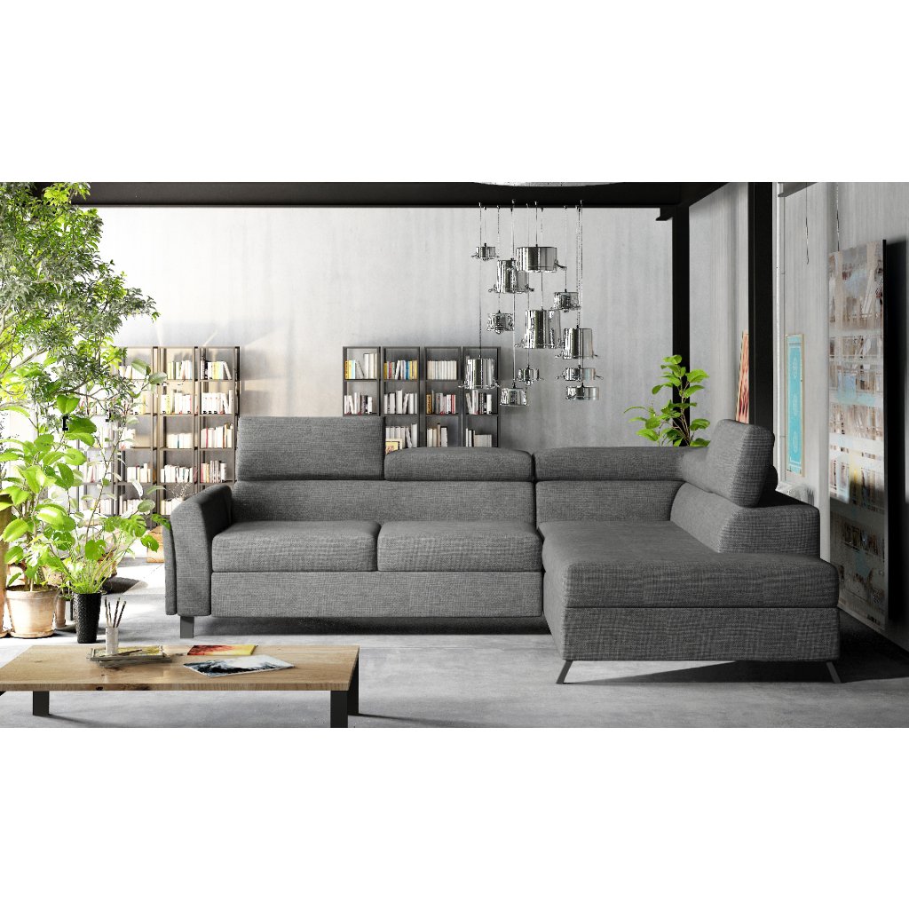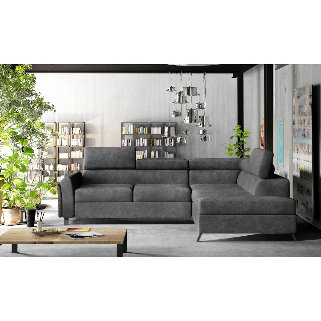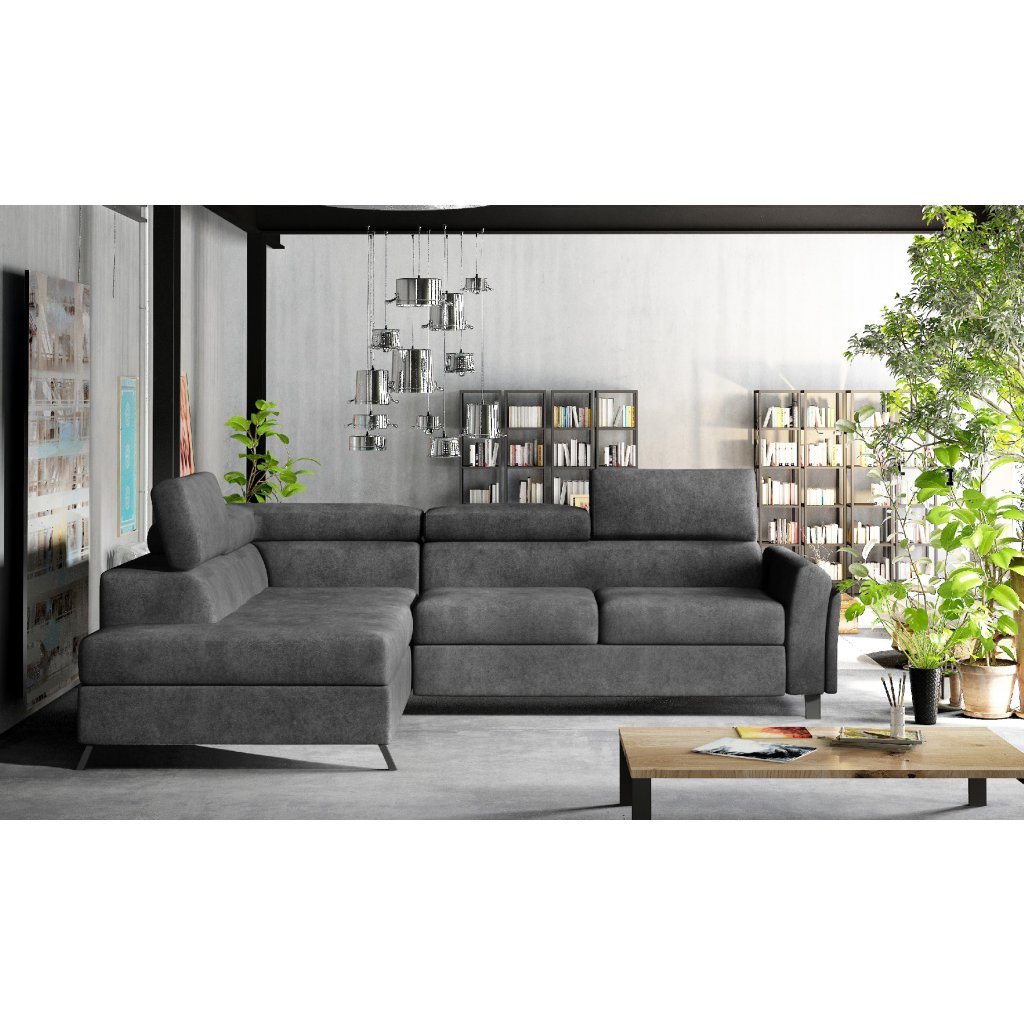Kairos je klasická, ale pohodlná a elegantní rohová pohovka ve tvaru písmene L o rozměrech 265 x 197 x 95 cm. Mezi její charakteristické rysy patří: stabilní konstrukce, tlumený vzhled, čalouněná záda, tvarované opěradlo a područky, pohyblivé opěrky hlavy a hluboký, měkký sedák z inovativní pěny T30 a HR, které jsou odolné proti deformaci a poškození. Zaručují také správnou polohu těla při odpočinku.Rohová sedací souprava Kairos je multifunkčním kusem nábytku, protože poskytuje maximální úroveň pohodlí nejen během dne, ale i v noci. Po rozložení pohovky pomocí intuitivního a nekomplikovaného delfínového mechanismu získáme plochu na spaní o rozměrech 125 x 190 cm a prostorný, hluboký prostor na lůžkoviny umístěný v otomanu.