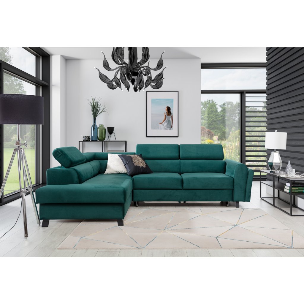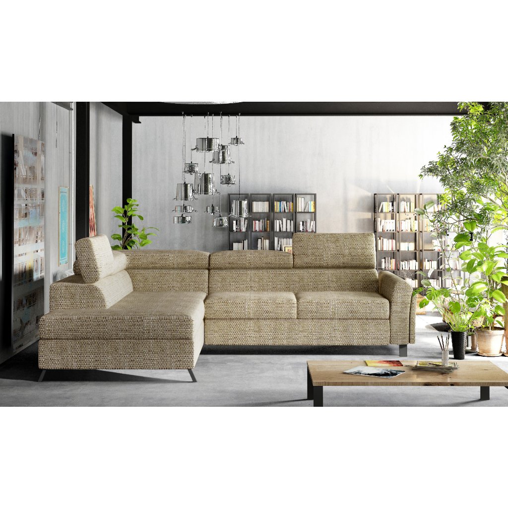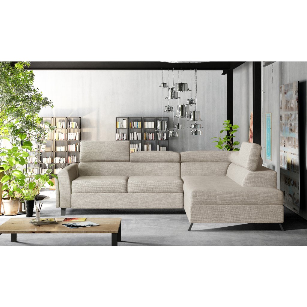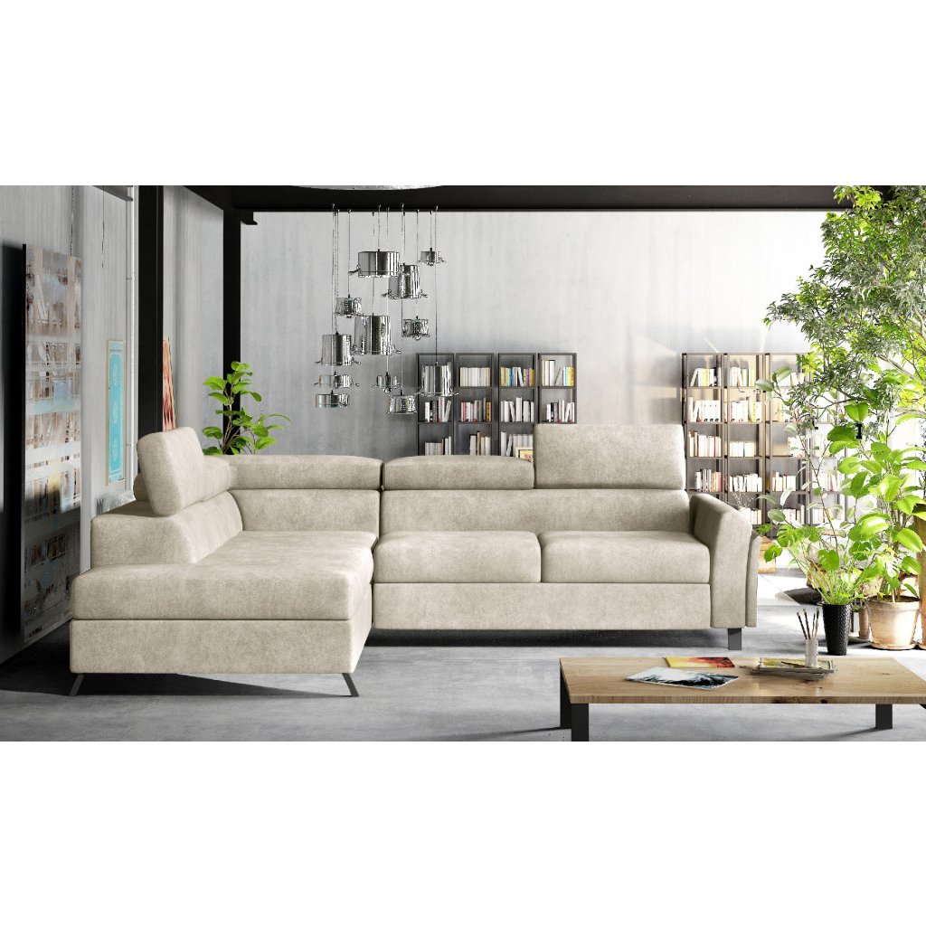 Kairos je klasická, ale pohodlná a elegantní rohová pohovka ve tvaru písmene L o rozměrech 265 x 197 x 95 cm. Mezi její charakteristické rysy patří: stabilní konstrukce, tlumený vzhled, čalouněná záda, tvarované opěradlo a područky, pohyblivé opěrky hlavy a hluboký, měkký sedák z inovativní pěny T30 a HR, které jsou odolné proti deformaci a poškození. Zaručují také správnou polohu těla při odpočinku.Rohová sedací souprava Kairos je multifunkčním kusem nábytku, protože poskytuje maximální úroveň pohodlí nejen během dne, ale i v noci. Po rozložení pohovky pomocí intuitivního a nekomplikovaného delfínového mechanismu získáme plochu na spaní o rozměrech 125 x 190 cm a prostorný, hluboký prostor na lůžkoviny umístěný v otomanu.