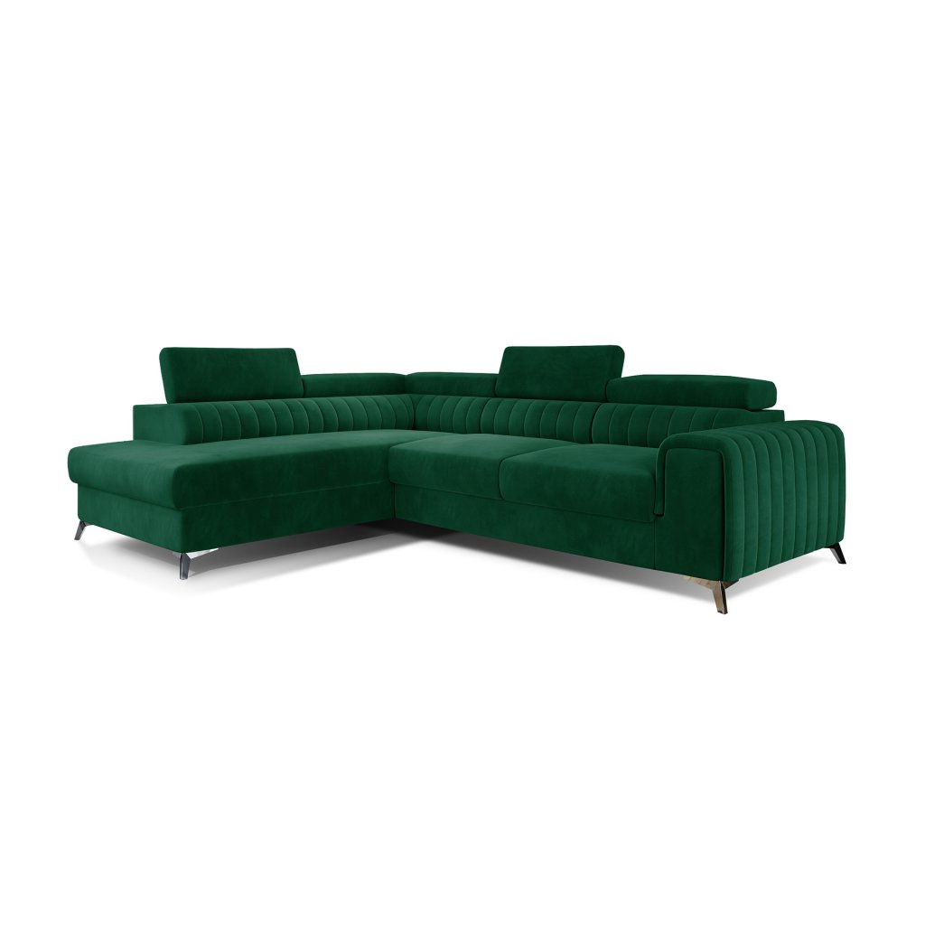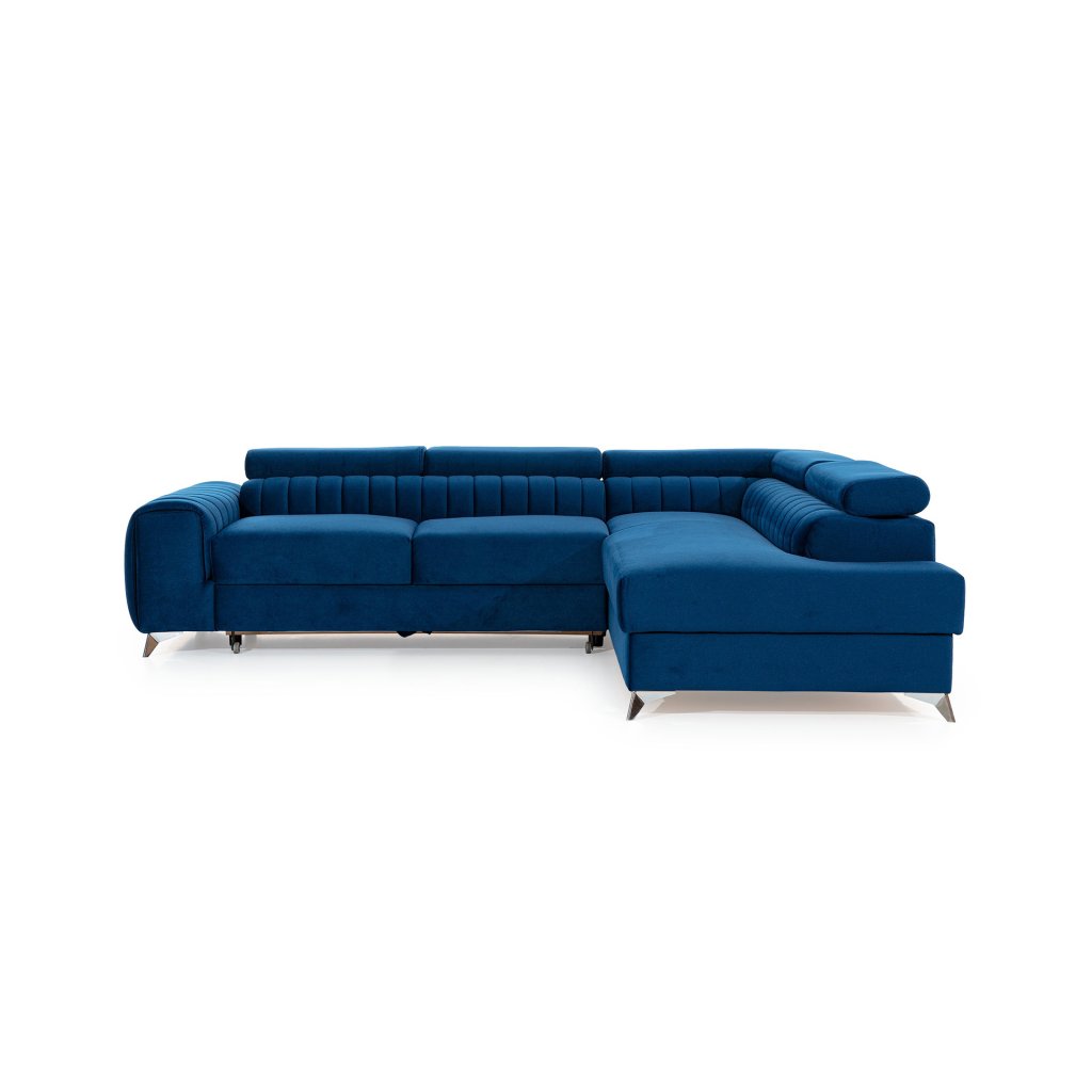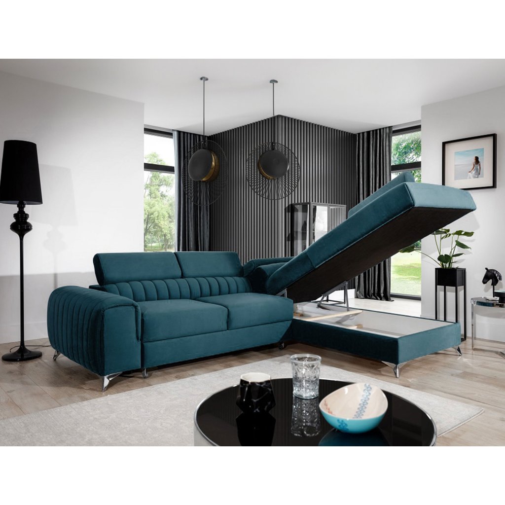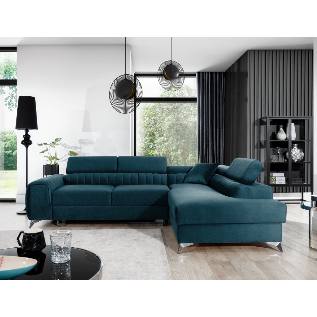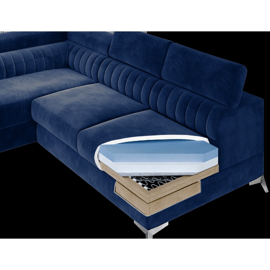 Laurence je stylová, funkční a především elegantní rohová pohovka pro náročné znalce pohodlí. Vysoký komfort odpočinku umocňují nastavitelné, vysoké opěrky hlavy a široký sedák. Nábytek o rozměrech 278 x 205 x 92 cm je vyroben z vlnitých pružin typu B, T30 a HR pěny, které zajistí nejvyšší komfort při každodenním používání pohovky ve dne i při spaní po setmění, neboť díky funkci delfín je rohová pohovka Laurence vhodná i pro noční odpočinek.Rohová sedací souprava ve tvaru L je vybavena funkcí lůžka o rozměrech 123 x 193 cm. Kromě toho má také velkorysý kontejner na lůžkoviny. Díky elegantnímu prošití a ocelovým nožkám o průměru 9 cm je rohová pohovka udržována v moderním stylu zpracování.