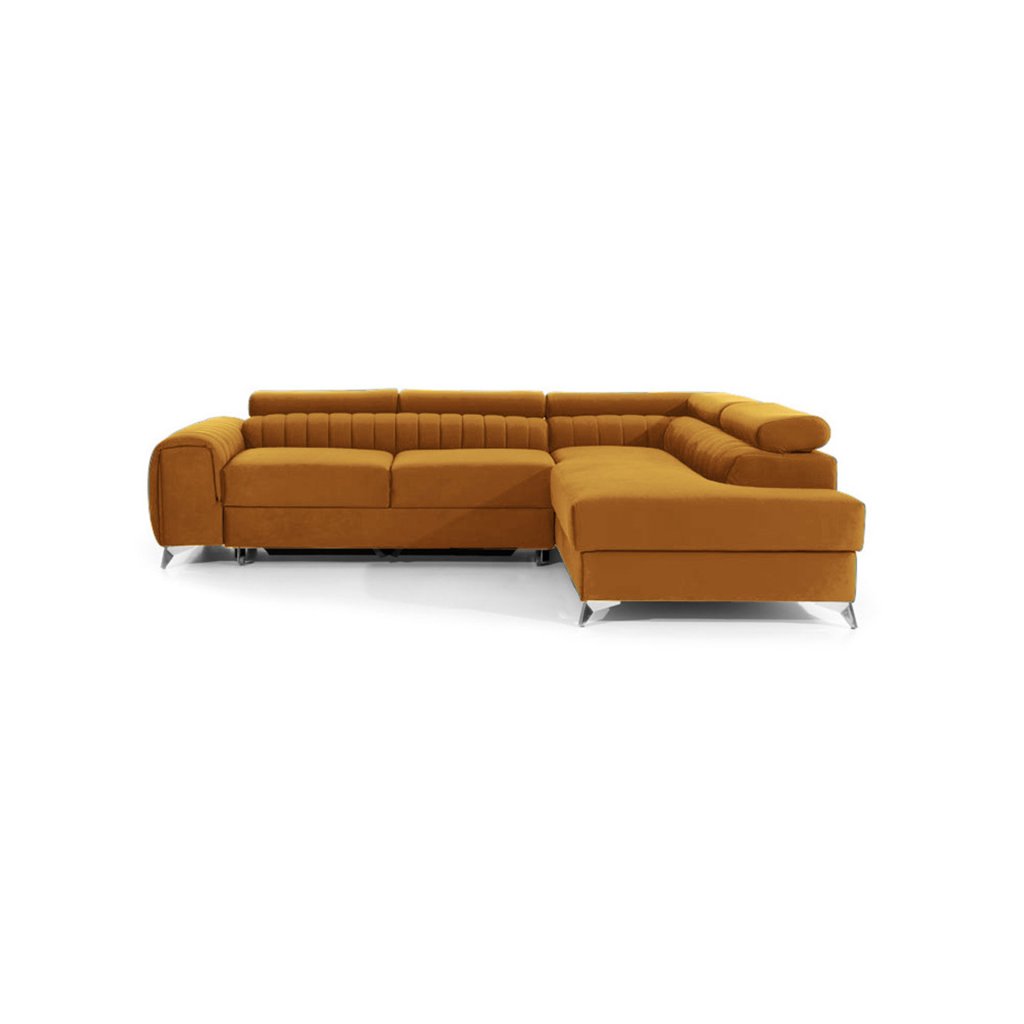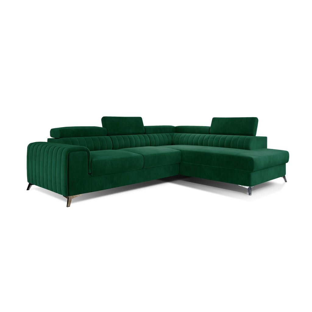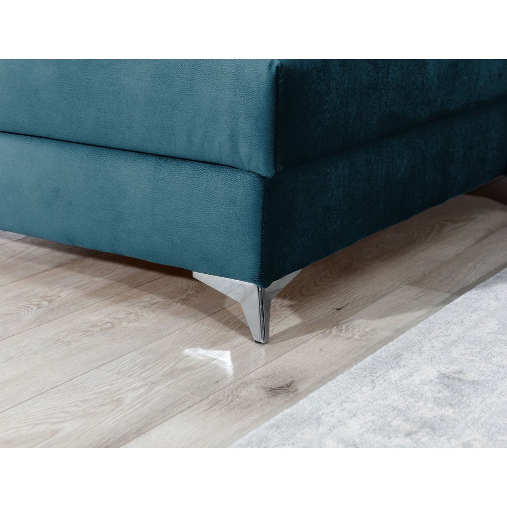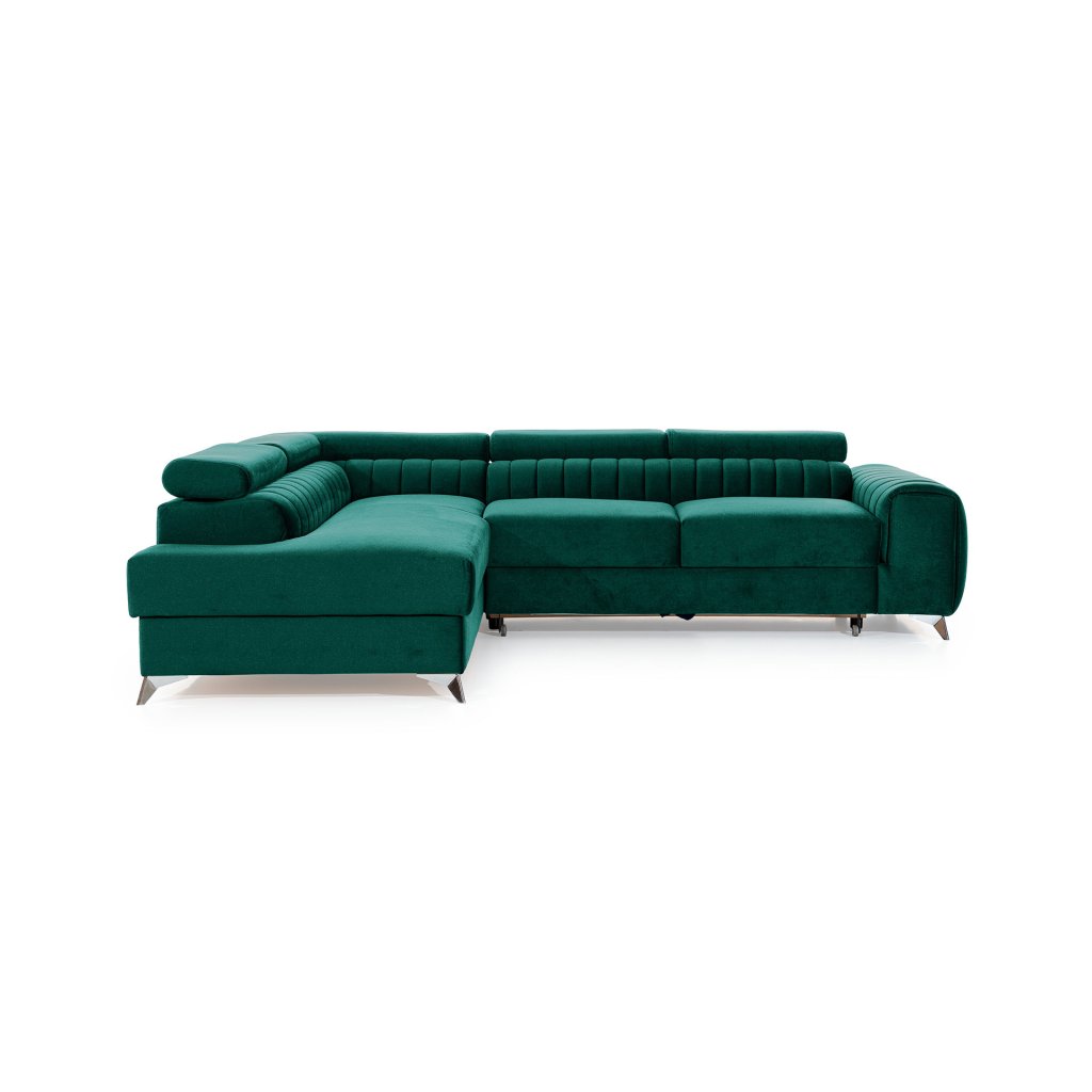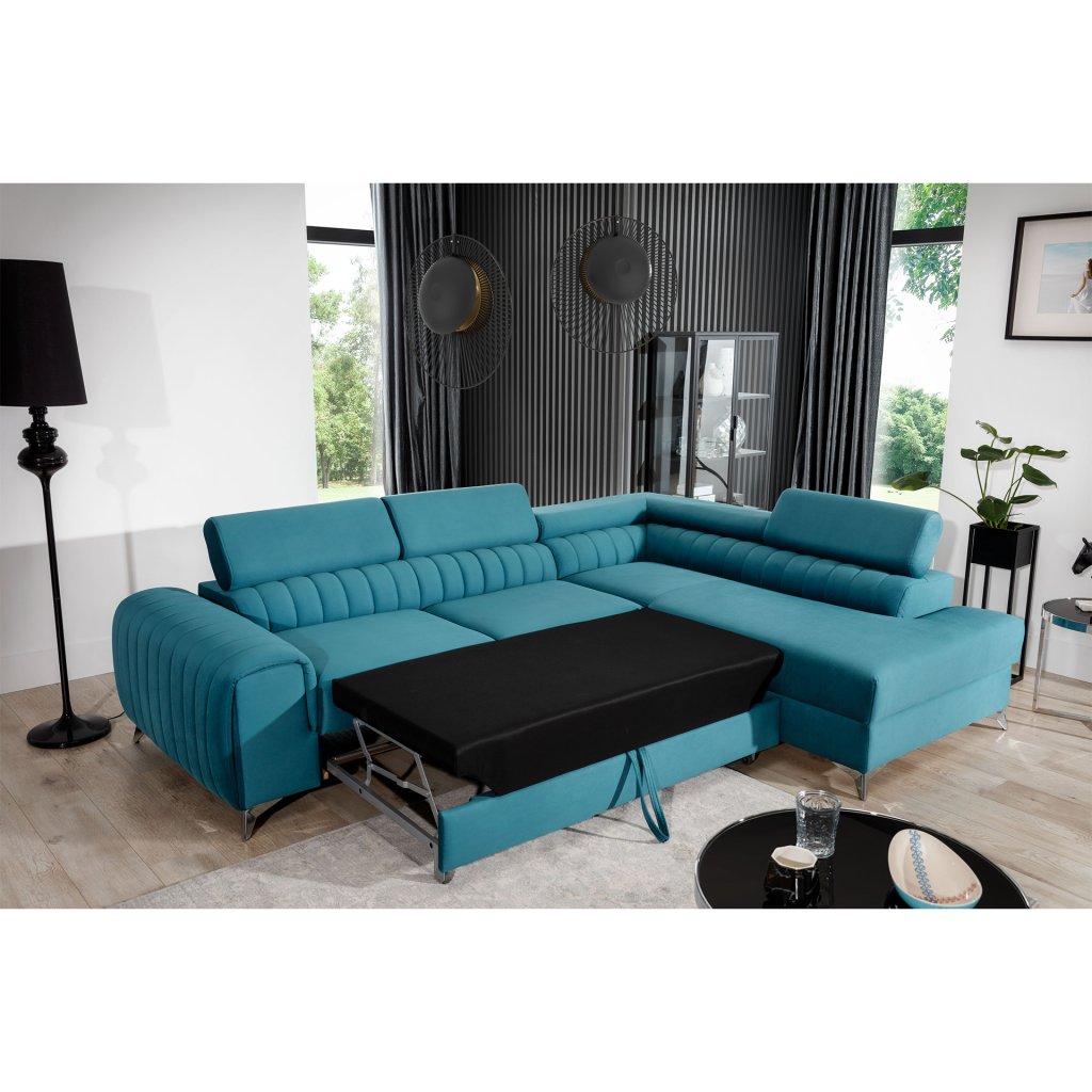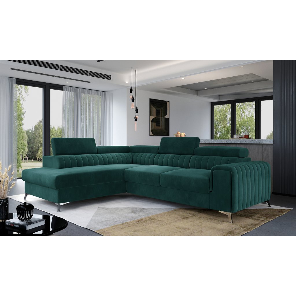 Laurence je stylová, funkční a především elegantní rohová pohovka pro náročné znalce pohodlí. Vysoký komfort odpočinku umocňují nastavitelné, vysoké opěrky hlavy a široký sedák. Nábytek o rozměrech 278 x 205 x 92 cm je vyroben z vlnitých pružin typu B, T30 a HR pěny, které zajistí nejvyšší komfort při každodenním používání pohovky ve dne i při spaní po setmění, neboť díky funkci delfín je rohová pohovka Laurence vhodná i pro noční odpočinek.Rohová sedací souprava ve tvaru L je vybavena funkcí lůžka o rozměrech 123 x 193 cm. Kromě toho má také velkorysý kontejner na lůžkoviny. Díky elegantnímu prošití a ocelovým nožkám o průměru 9 cm je rohová pohovka udržována v moderním stylu zpracování.