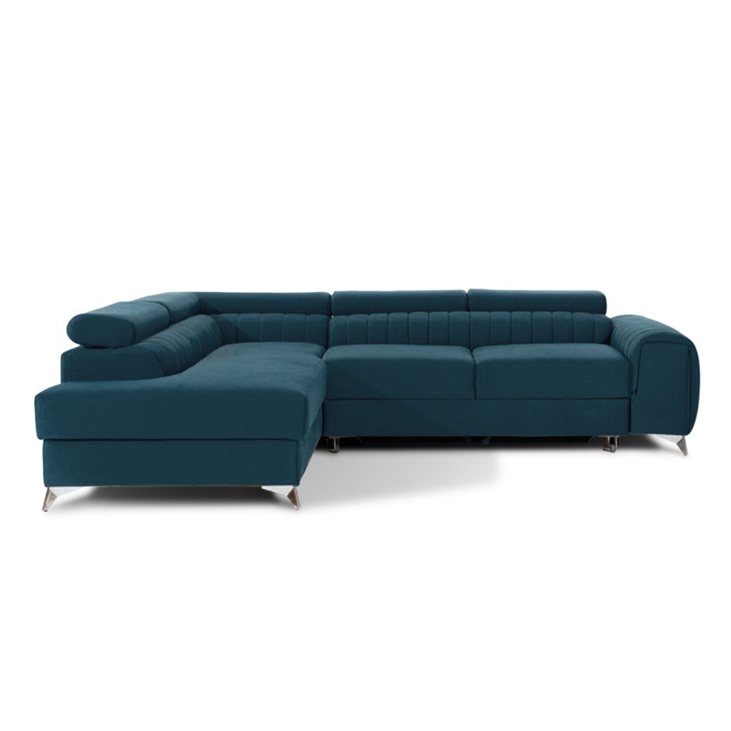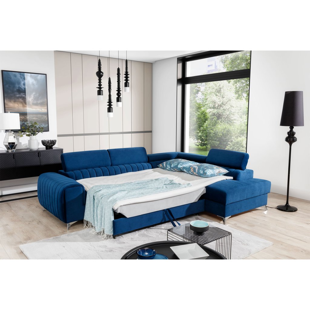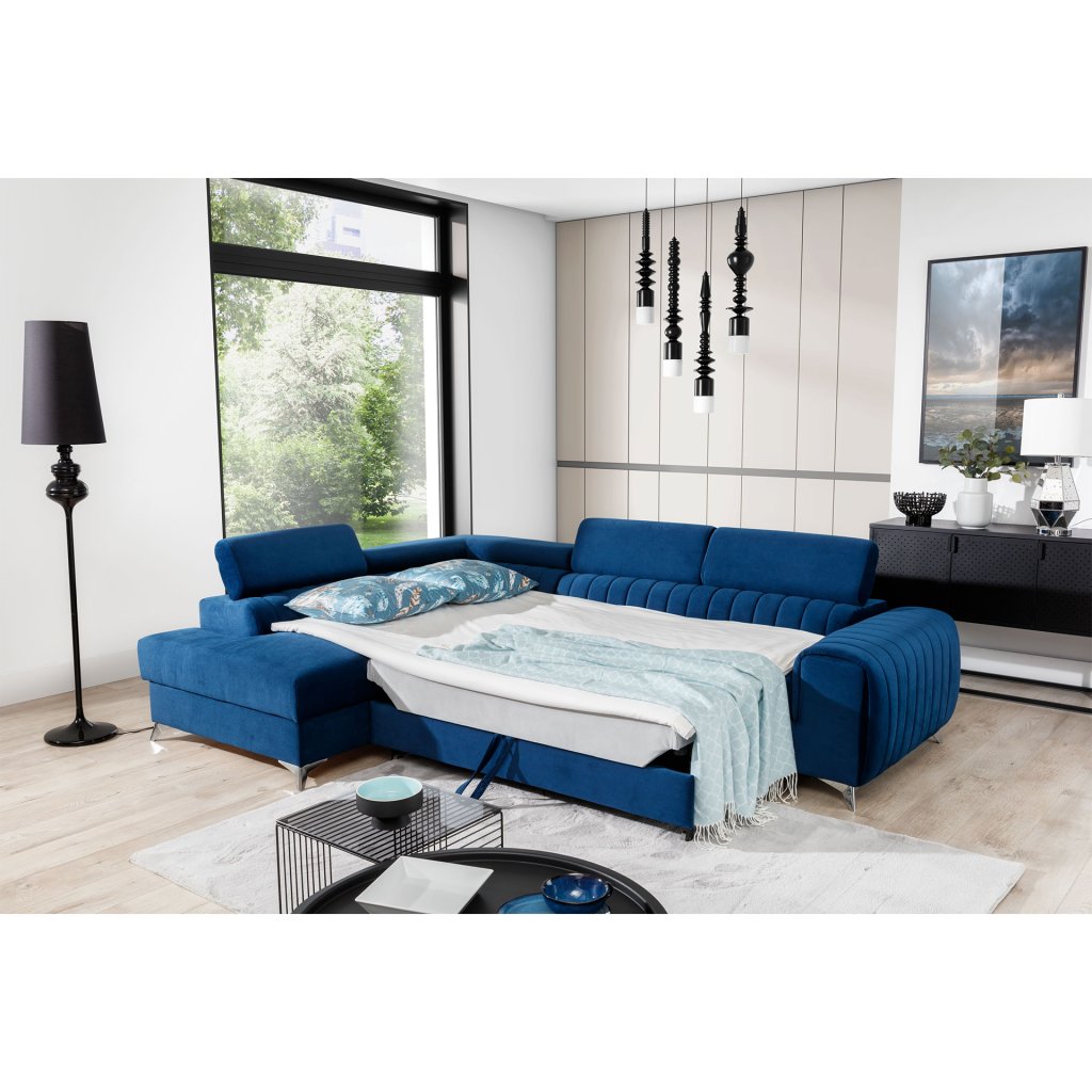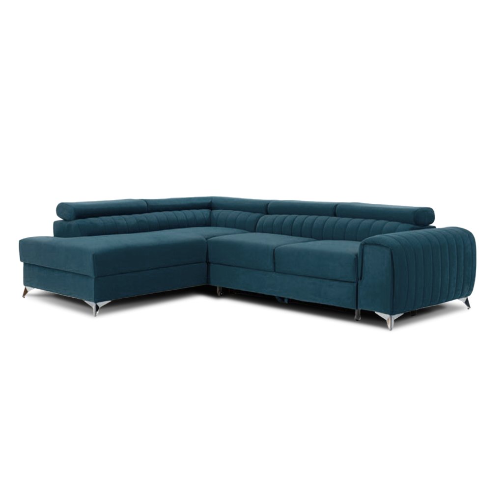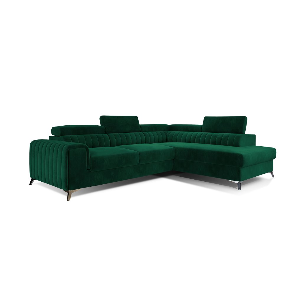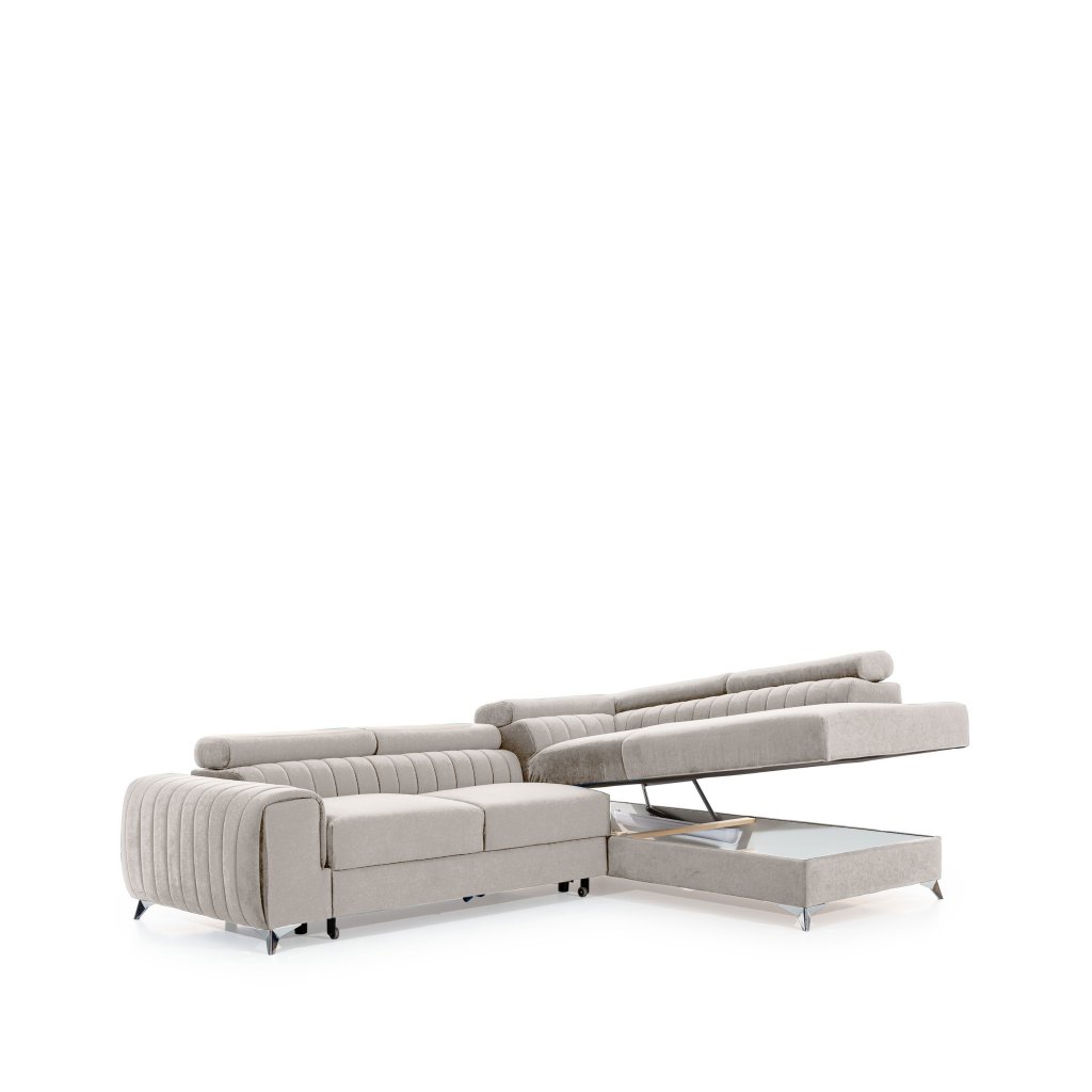 Laurence je stylová, funkční a především elegantní rohová pohovka pro náročné znalce pohodlí. Vysoký komfort odpočinku umocňují nastavitelné, vysoké opěrky hlavy a široký sedák. Nábytek o rozměrech 278 x 205 x 92 cm je vyroben z vlnitých pružin typu B, T30 a HR pěny, které zajistí nejvyšší komfort při každodenním používání pohovky ve dne i při spaní po setmění, neboť díky funkci delfín je rohová pohovka Laurence vhodná i pro noční odpočinek.Rohová sedací souprava ve tvaru L je vybavena funkcí lůžka o rozměrech 123 x 193 cm. Kromě toho má také velkorysý kontejner na lůžkoviny. Díky elegantnímu prošití a ocelovým nožkám o průměru 9 cm je rohová pohovka udržována v moderním stylu zpracování.