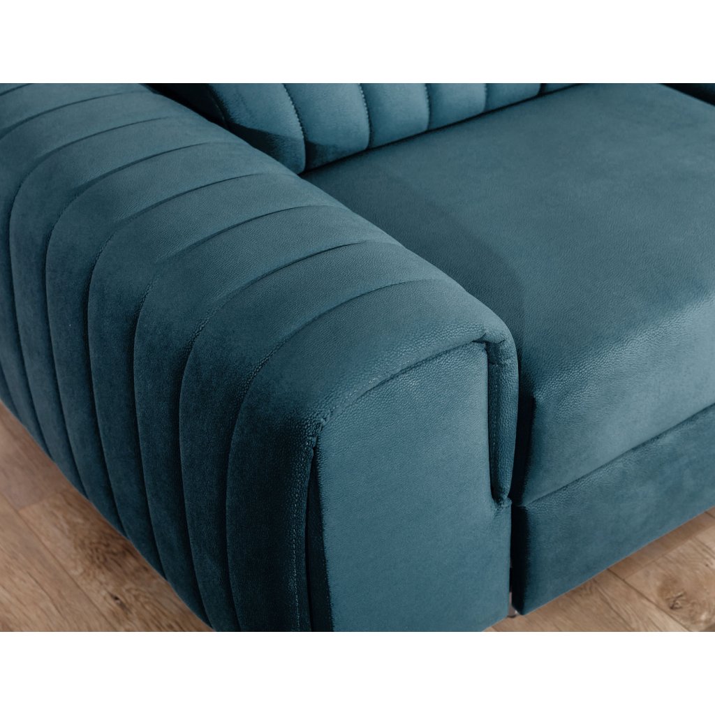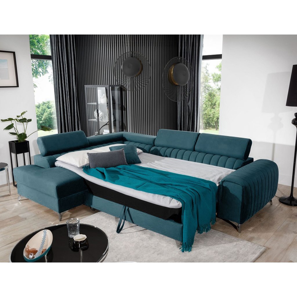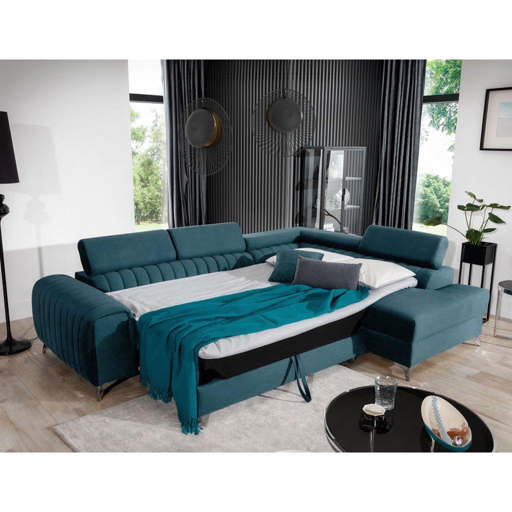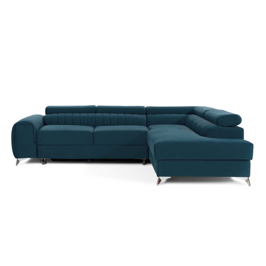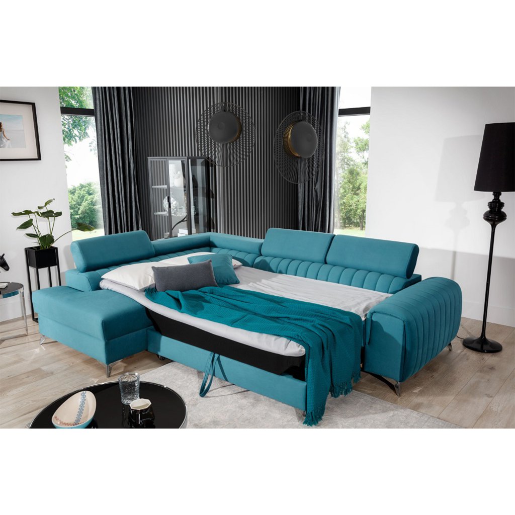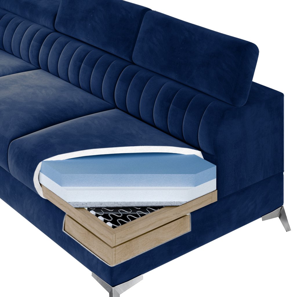 Laurence je stylová, funkční a především elegantní rohová pohovka pro náročné znalce pohodlí. Vysoký komfort odpočinku umocňují nastavitelné, vysoké opěrky hlavy a široký sedák. Nábytek o rozměrech 278 x 205 x 92 cm je vyroben z vlnitých pružin typu B, T30 a HR pěny, které zajistí nejvyšší komfort při každodenním používání pohovky ve dne i při spaní po setmění, neboť díky funkci delfín je rohová pohovka Laurence vhodná i pro noční odpočinek.Rohová sedací souprava ve tvaru L je vybavena funkcí lůžka o rozměrech 123 x 193 cm. Kromě toho má také velkorysý kontejner na lůžkoviny. Díky elegantnímu prošití a ocelovým nožkám o průměru 9 cm je rohová pohovka udržována v moderním stylu zpracování.