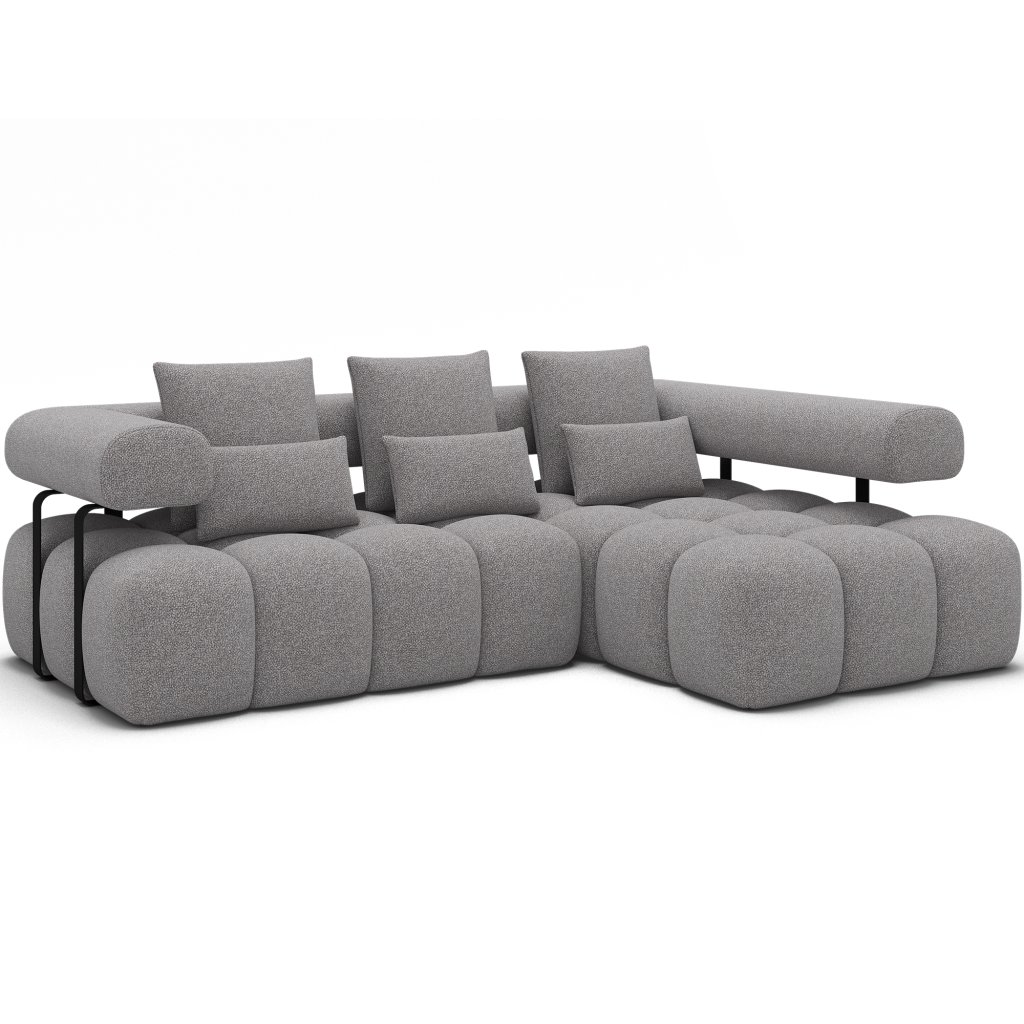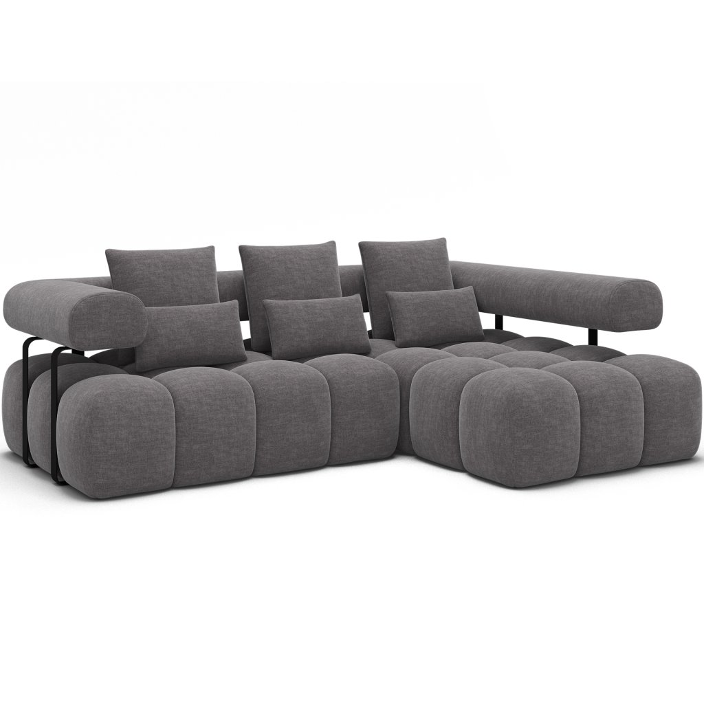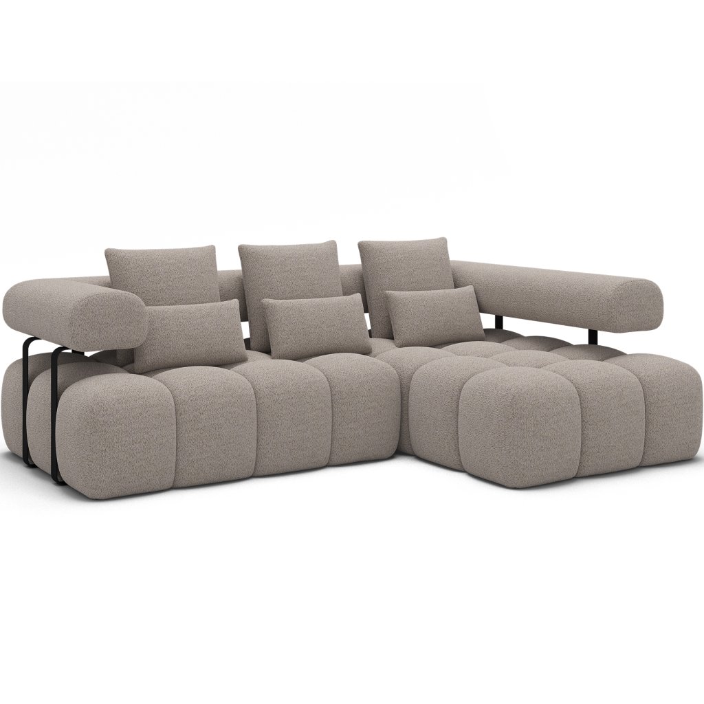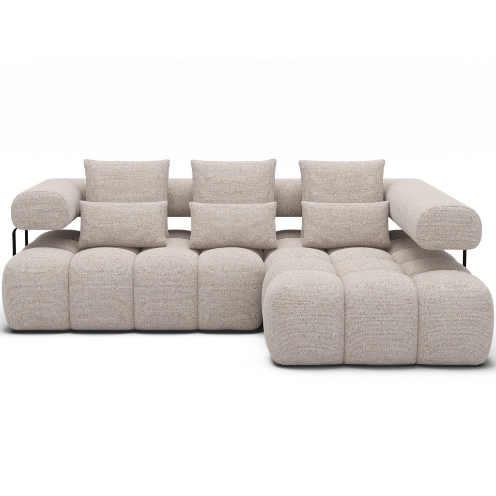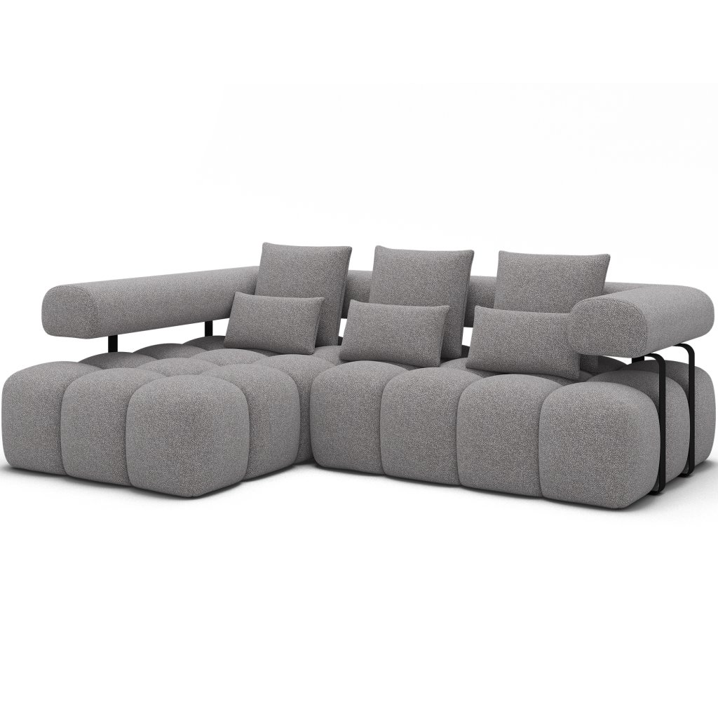 Sedací souprava Levvi o rozměrech 260x184x102 cm je moderní a funkční nábytek navržený pro každodenní pohodlí a estetiku interiéru. Díky kombinaci vlnité pružiny typu B a vysoce elastické pěny HR3030 poskytuje optimální oporu těla a dlouhodobou odolnost.