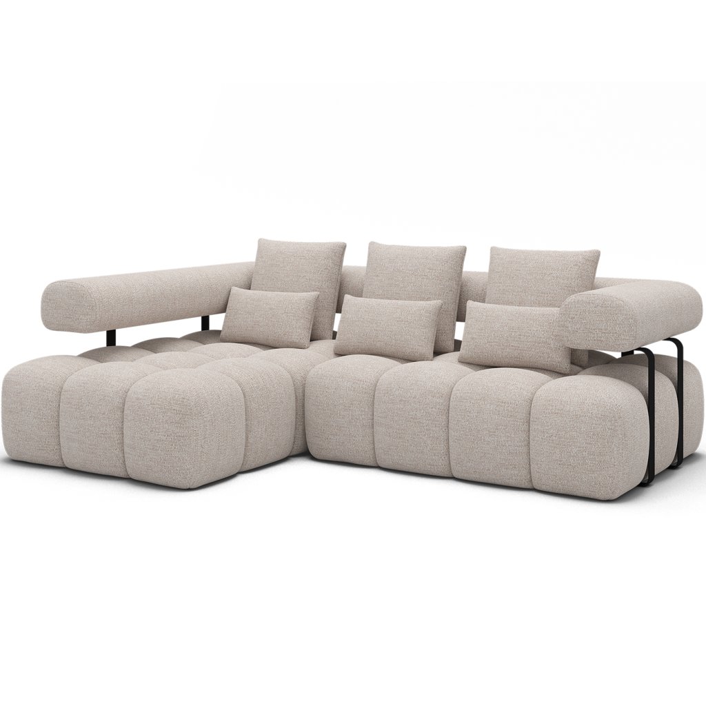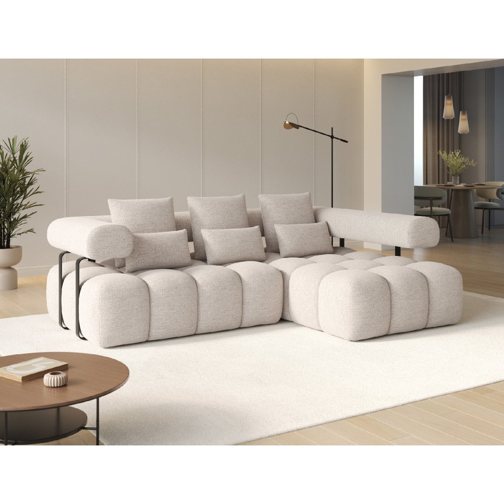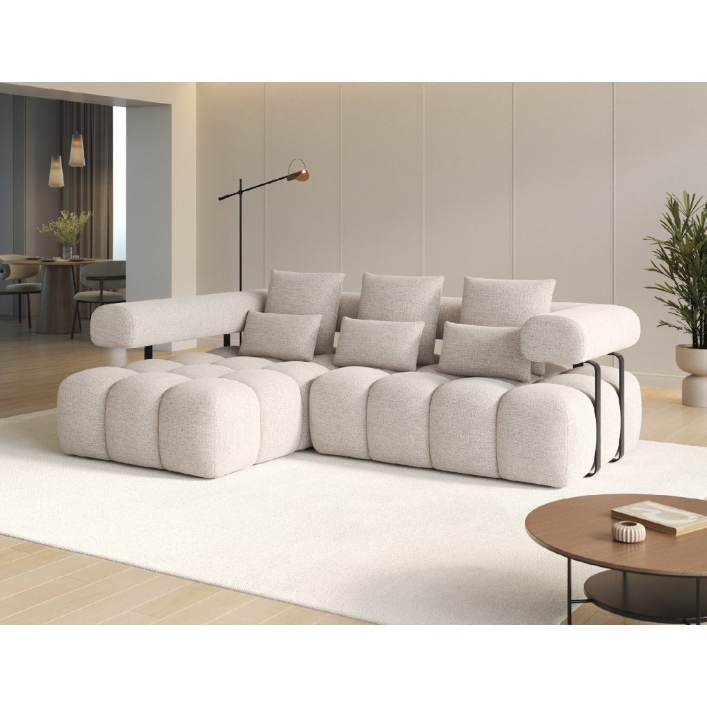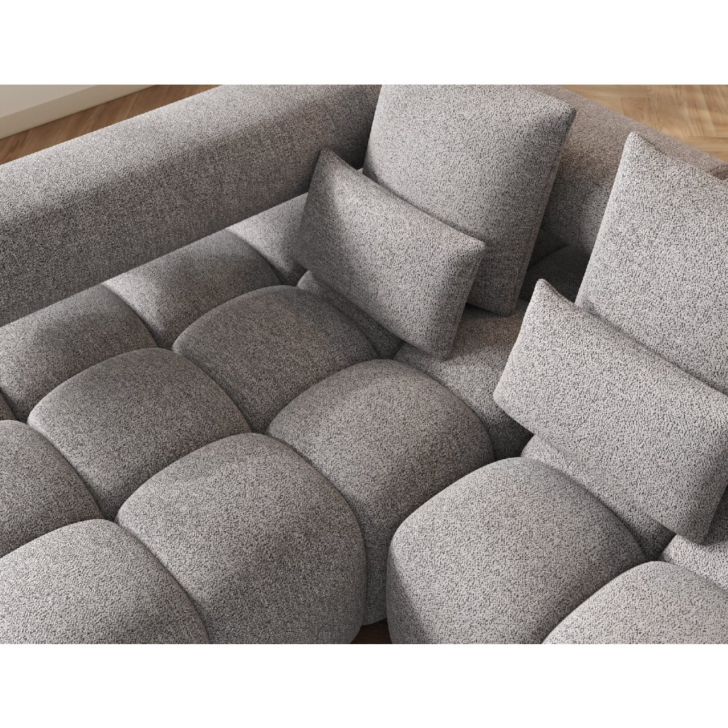 Sedací souprava Levvi o rozměrech 260x184x102 cm je moderní a funkční nábytek navržený pro každodenní pohodlí a estetiku interiéru. Díky kombinaci vlnité pružiny typu B a vysoce elastické pěny HR3030 poskytuje optimální oporu těla a dlouhodobou odolnost.