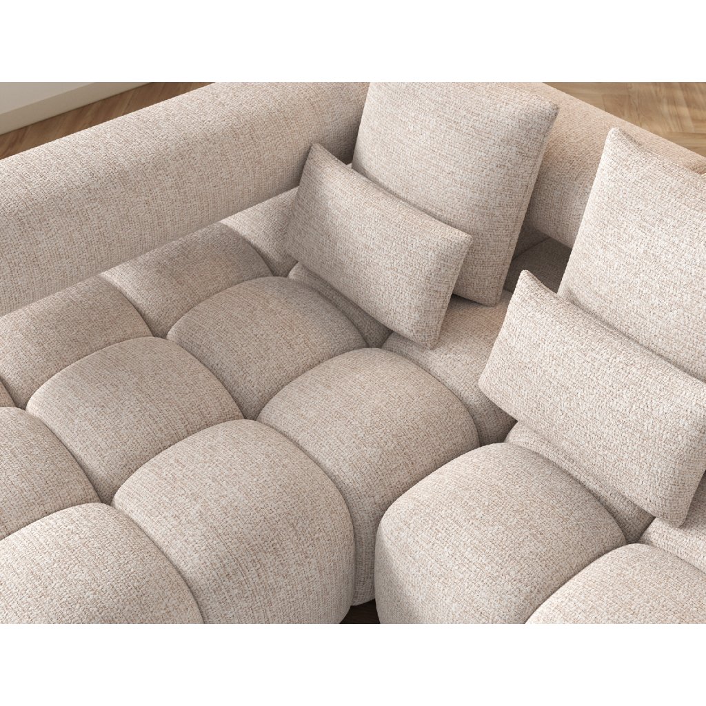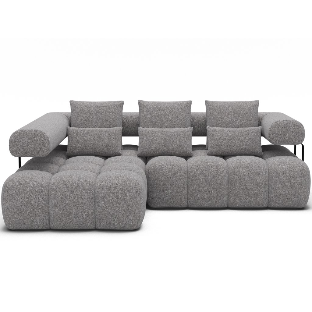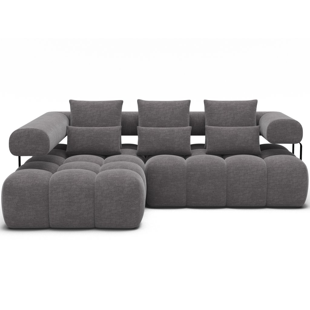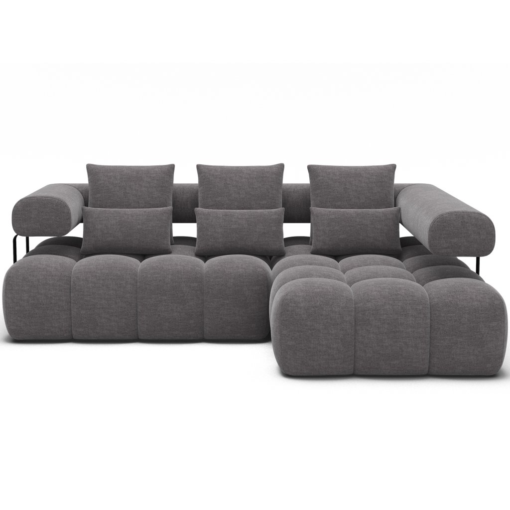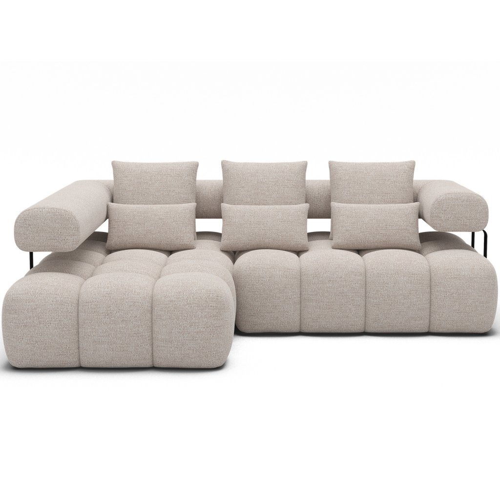 Sedací souprava Levvi o rozměrech 260x184x102 cm je moderní a funkční nábytek navržený pro každodenní pohodlí a estetiku interiéru. Díky kombinaci vlnité pružiny typu B a vysoce elastické pěny HR3030 poskytuje optimální oporu těla a dlouhodobou odolnost.