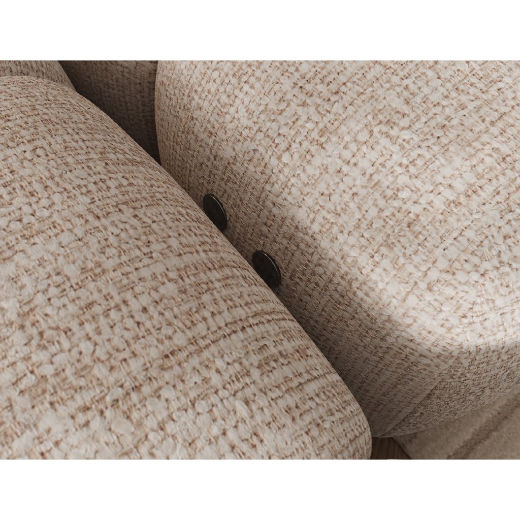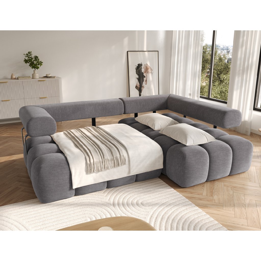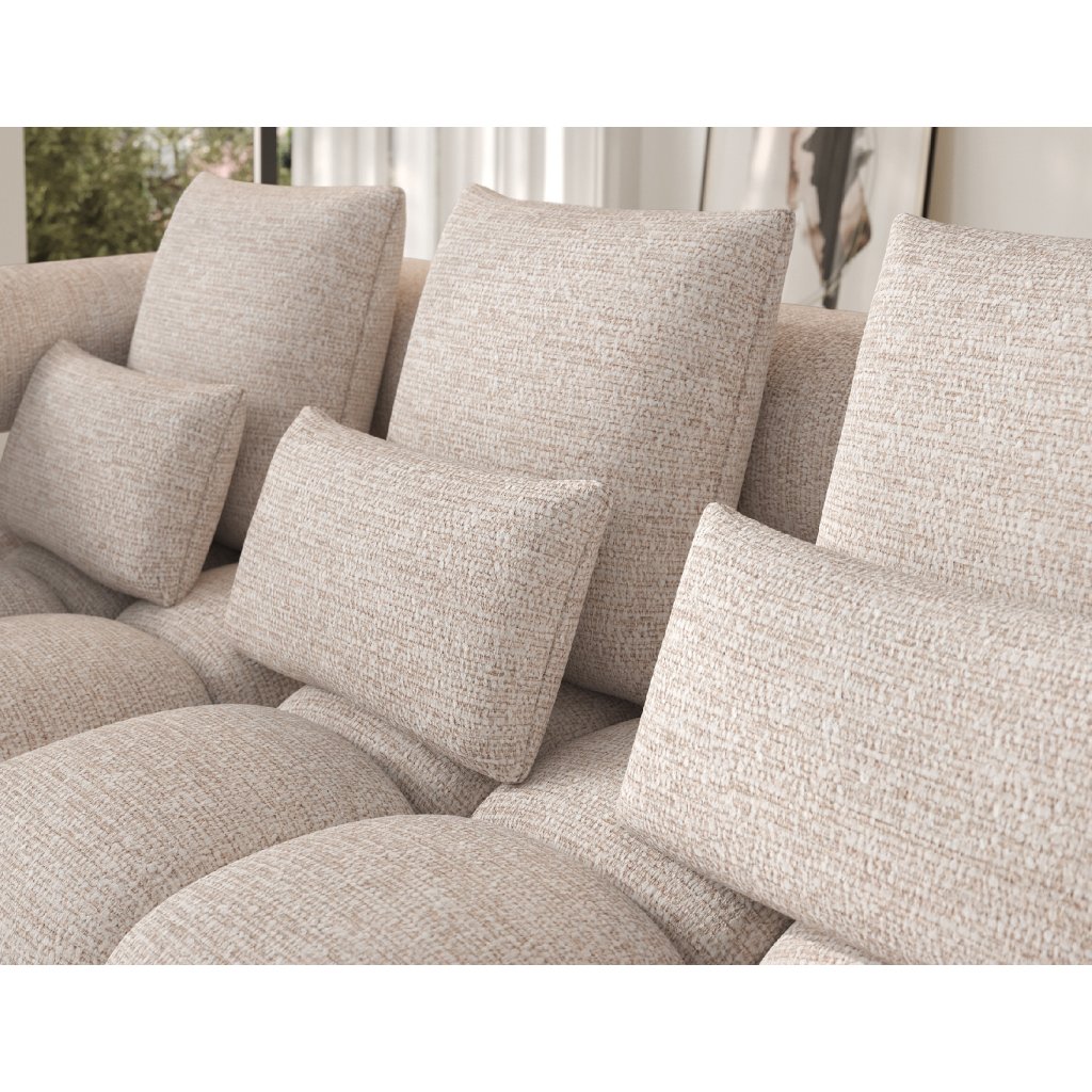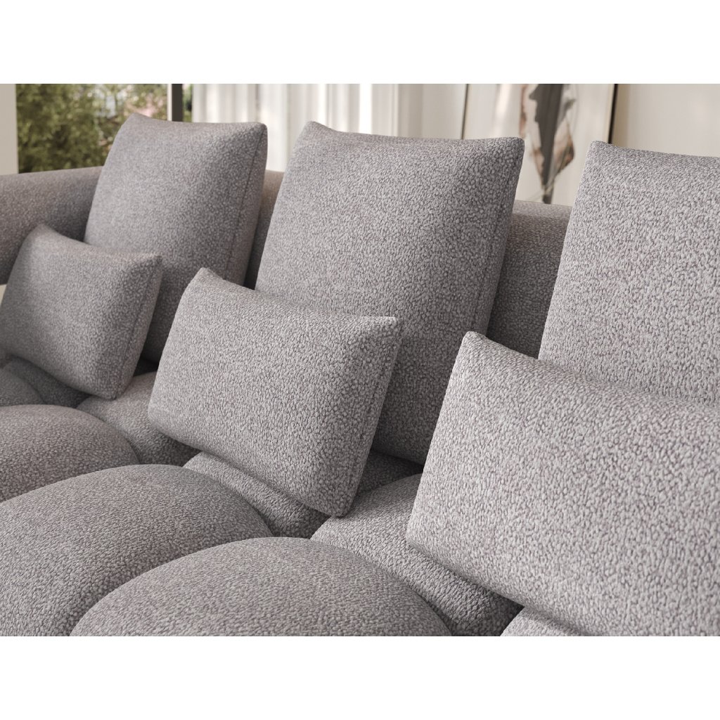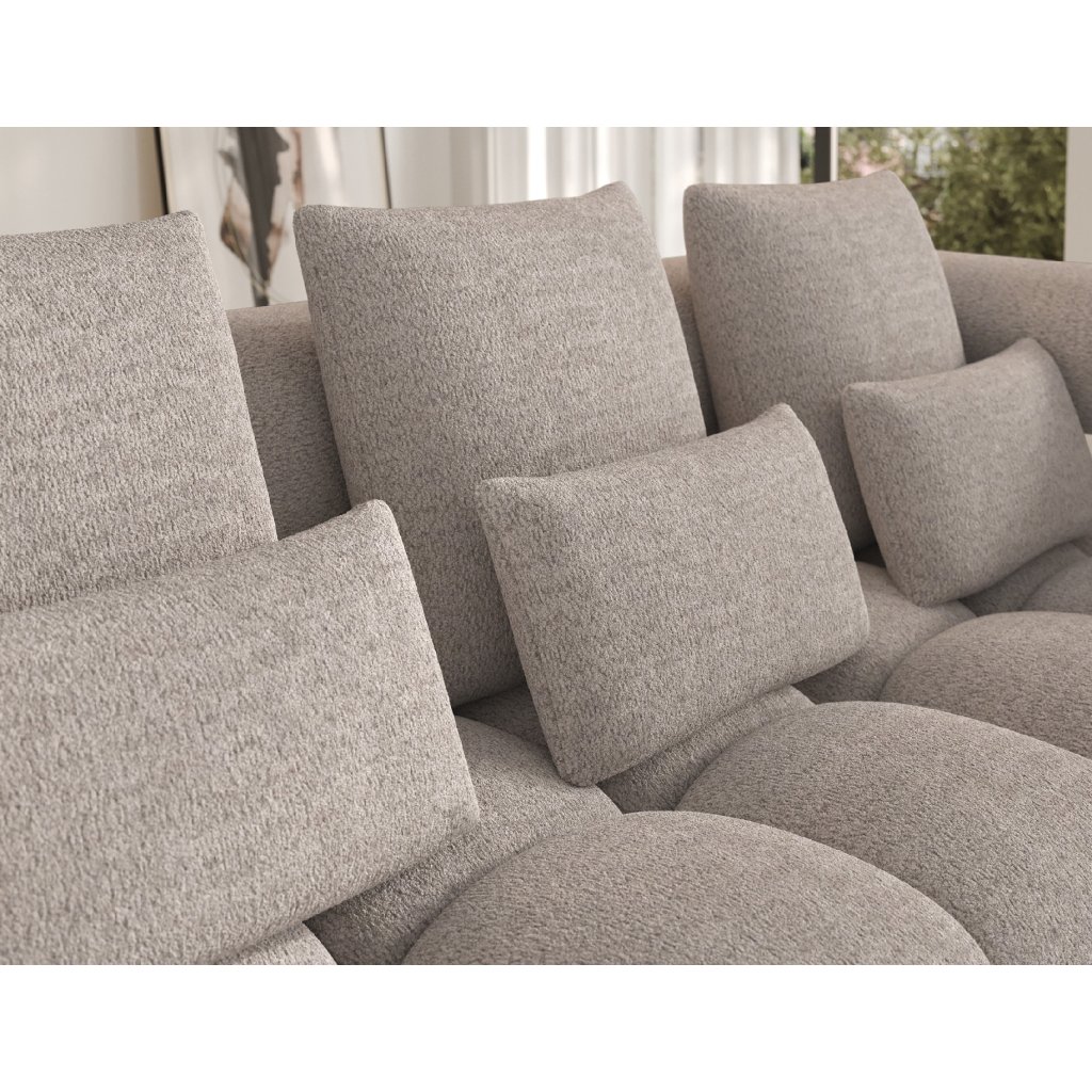 Sedací souprava je vybavena praktickou funkcí spaní, která umožňuje rychlou přeměnu na pohodlné lůžko. Tapecírovaný zadní díl umožňuje volné umístění v prostoru bez nutnosti přisunout ke stěně, což zvyšuje flexibilitu při aranžování místnosti. Černé plastové nohy doplňují celkový vzhled a podtrhují moderní, minimalistický charakter sedací soupravy Levvi, která je ideální volbou pro ty, kdo hledají elegantní, pohodlný a praktický nábytek do obývacího pokoje.