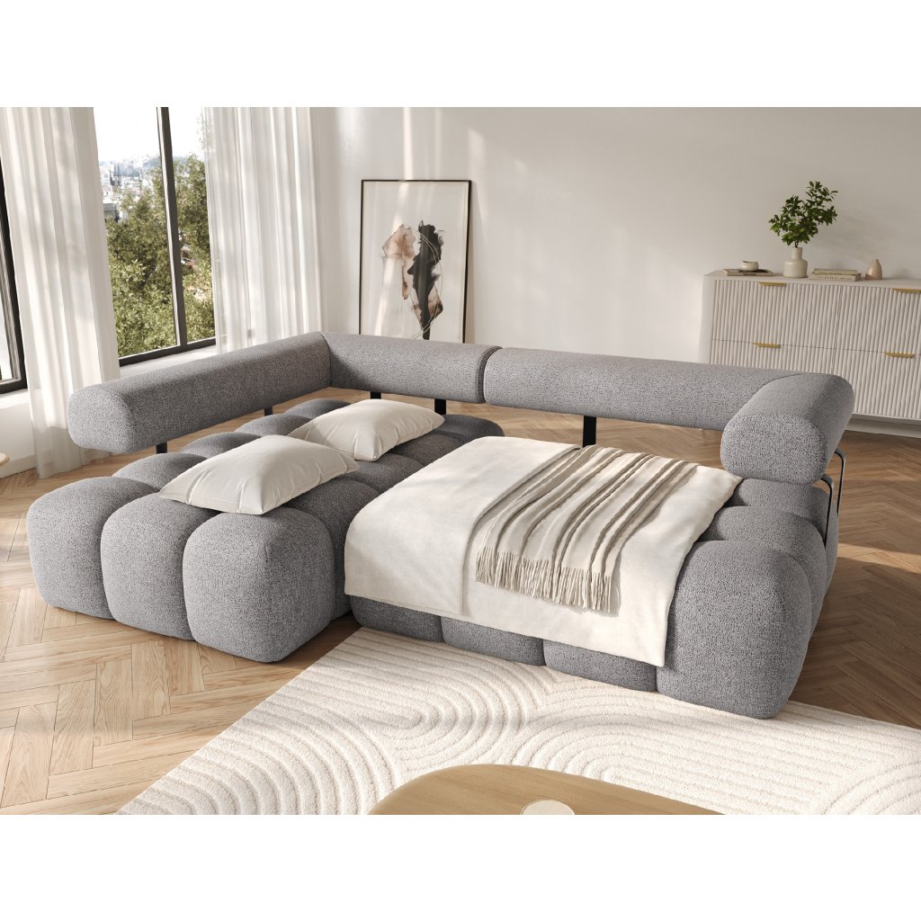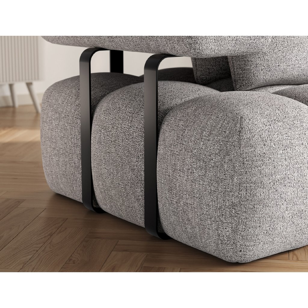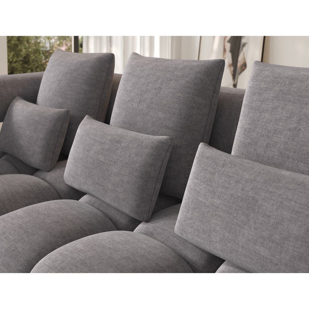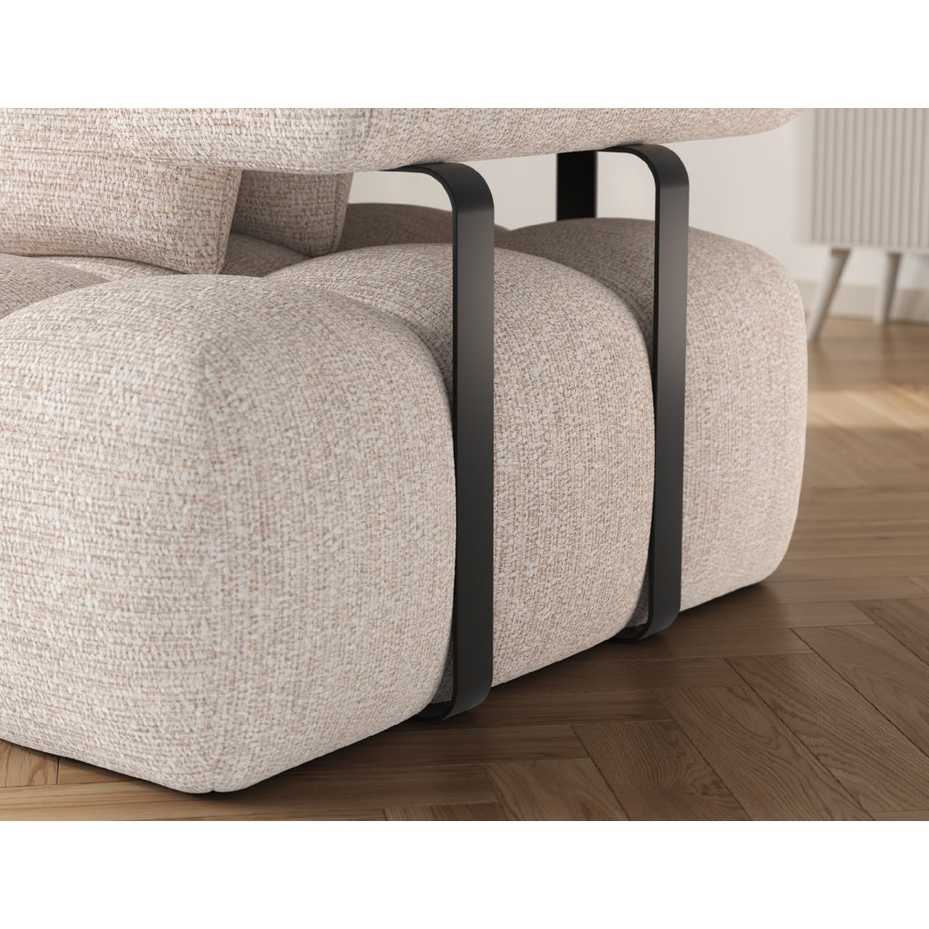 Sedací souprava je vybavena praktickou funkcí spaní, která umožňuje rychlou přeměnu na pohodlné lůžko. Tapecírovaný zadní díl umožňuje volné umístění v prostoru bez nutnosti přisunout ke stěně, což zvyšuje flexibilitu při aranžování místnosti. Černé plastové nohy doplňují celkový vzhled a podtrhují moderní, minimalistický charakter sedací soupravy Levvi, která je ideální volbou pro ty, kdo hledají elegantní, pohodlný a praktický nábytek do obývacího pokoje.