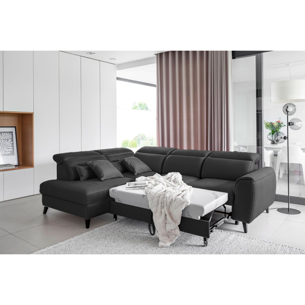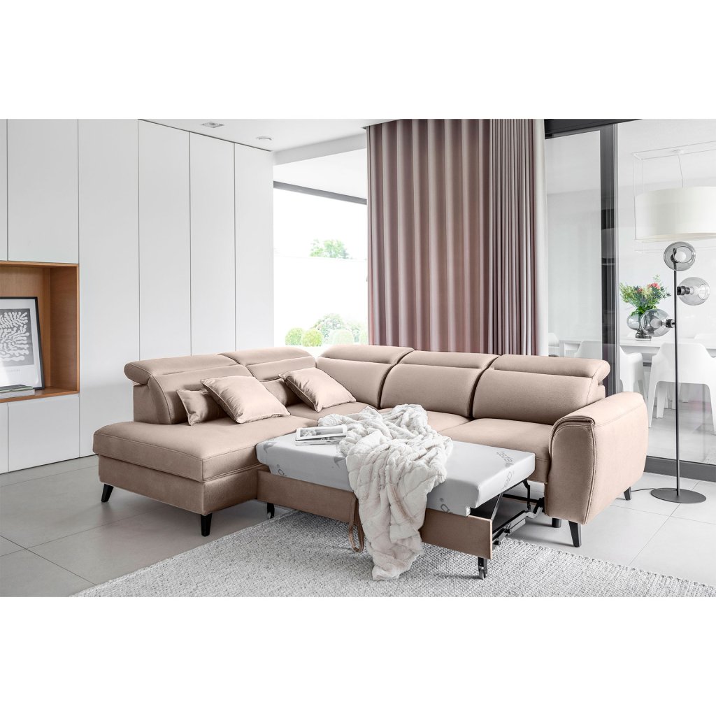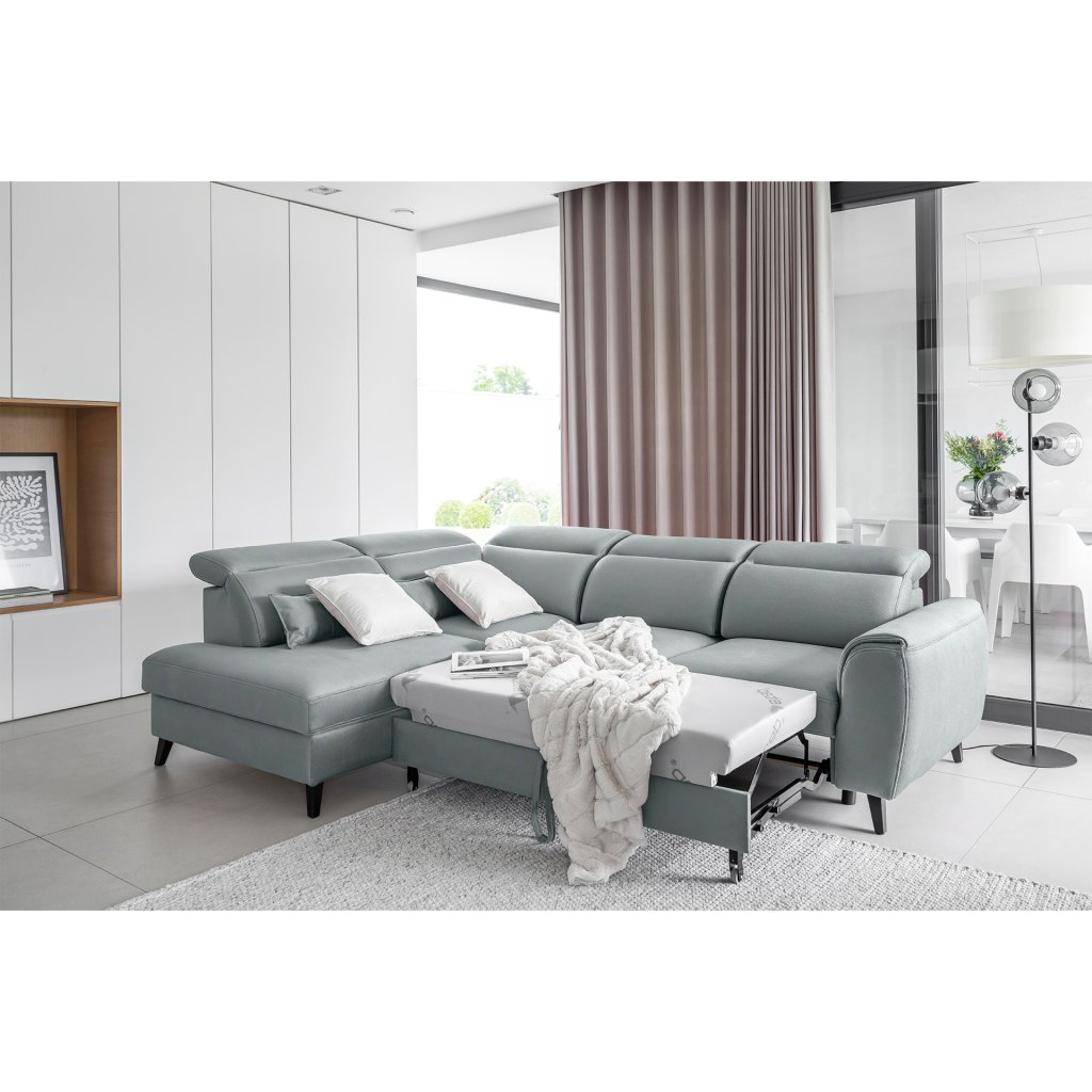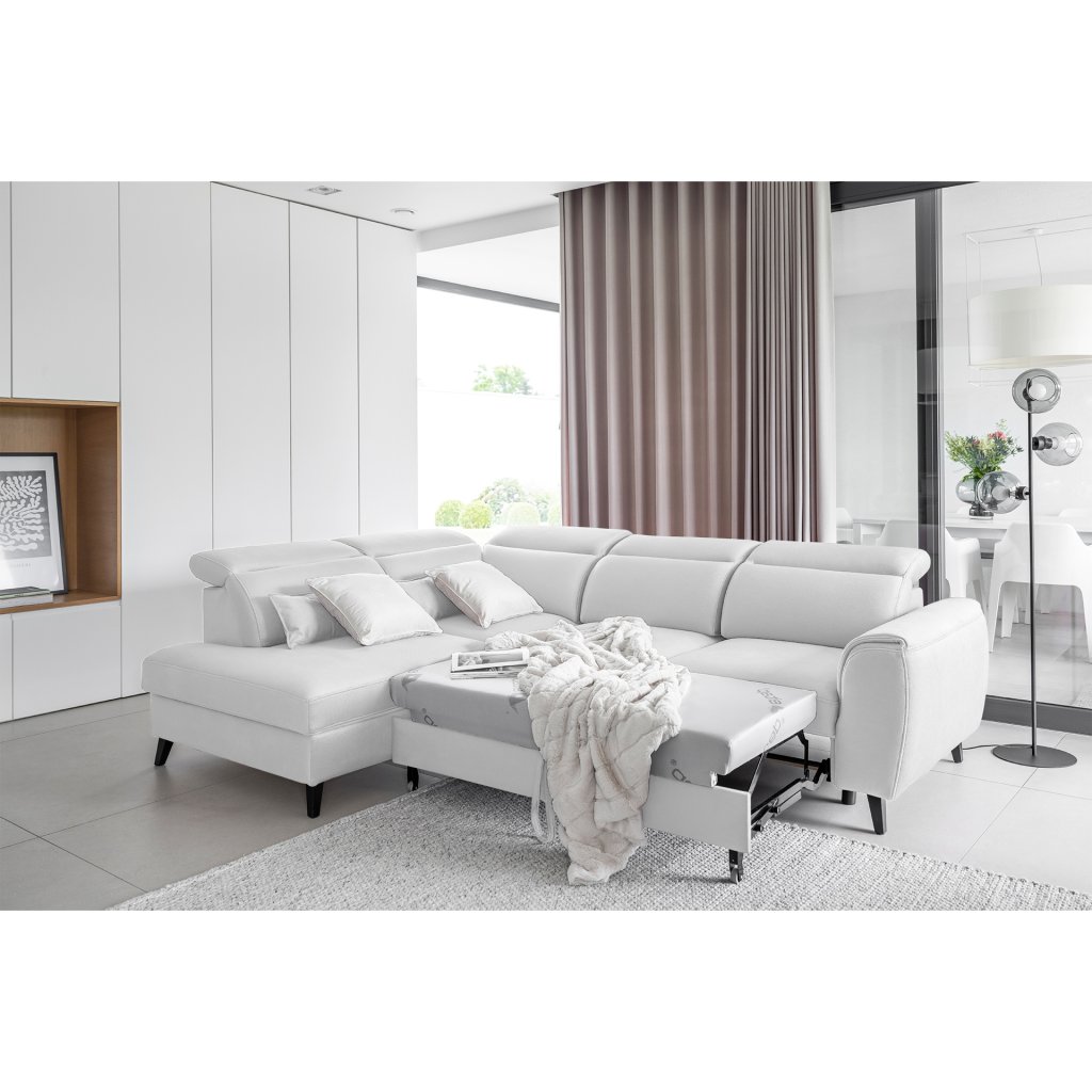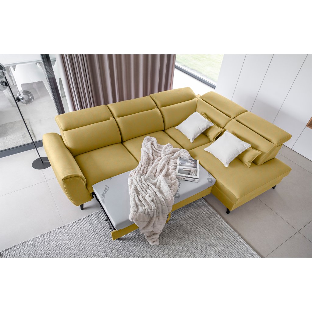 Nábytek může sloužit také jako lůžko o rozměrech 120x195 cm, protože je vybaven rozkládacím mechanismem typu delfín. Jeho předností je také výsuvné kolečko, které přispívá k většímu pohodlí z používání rohové sedací soupravy Noble.