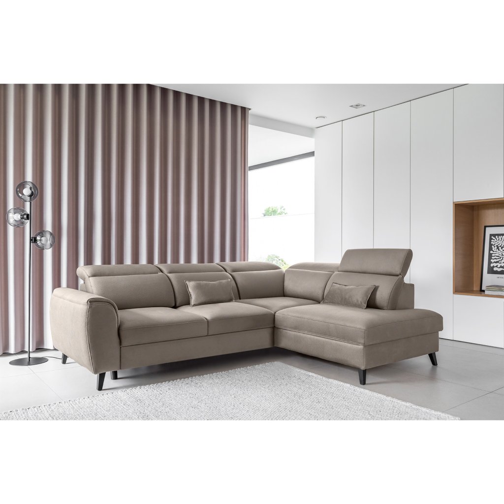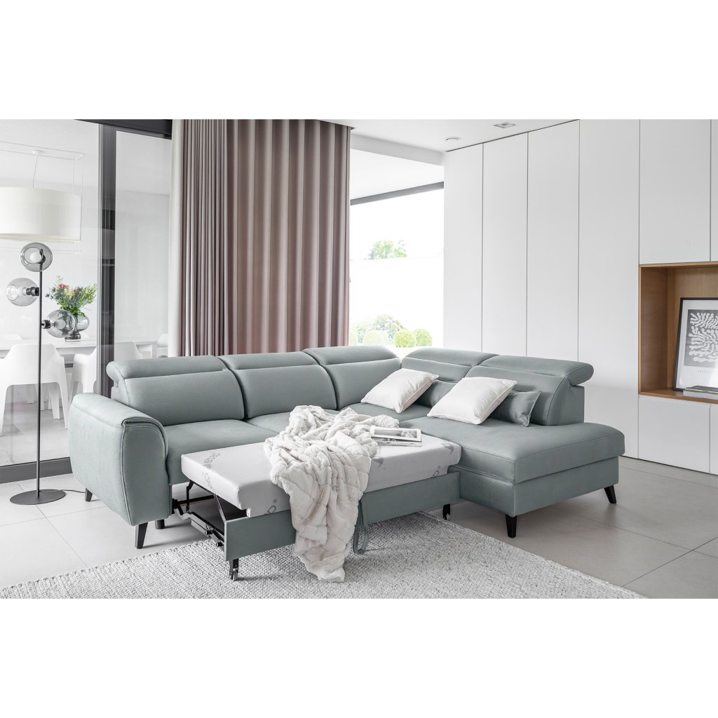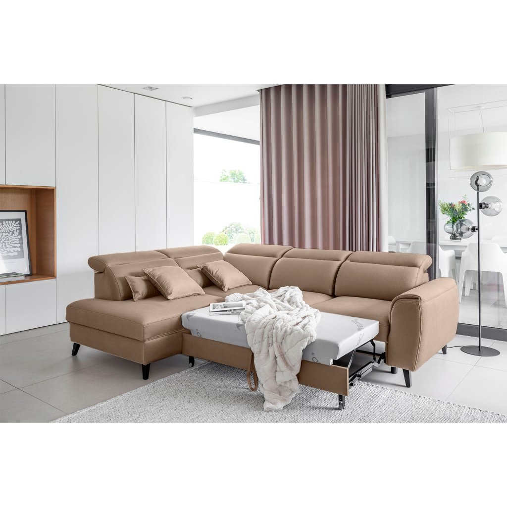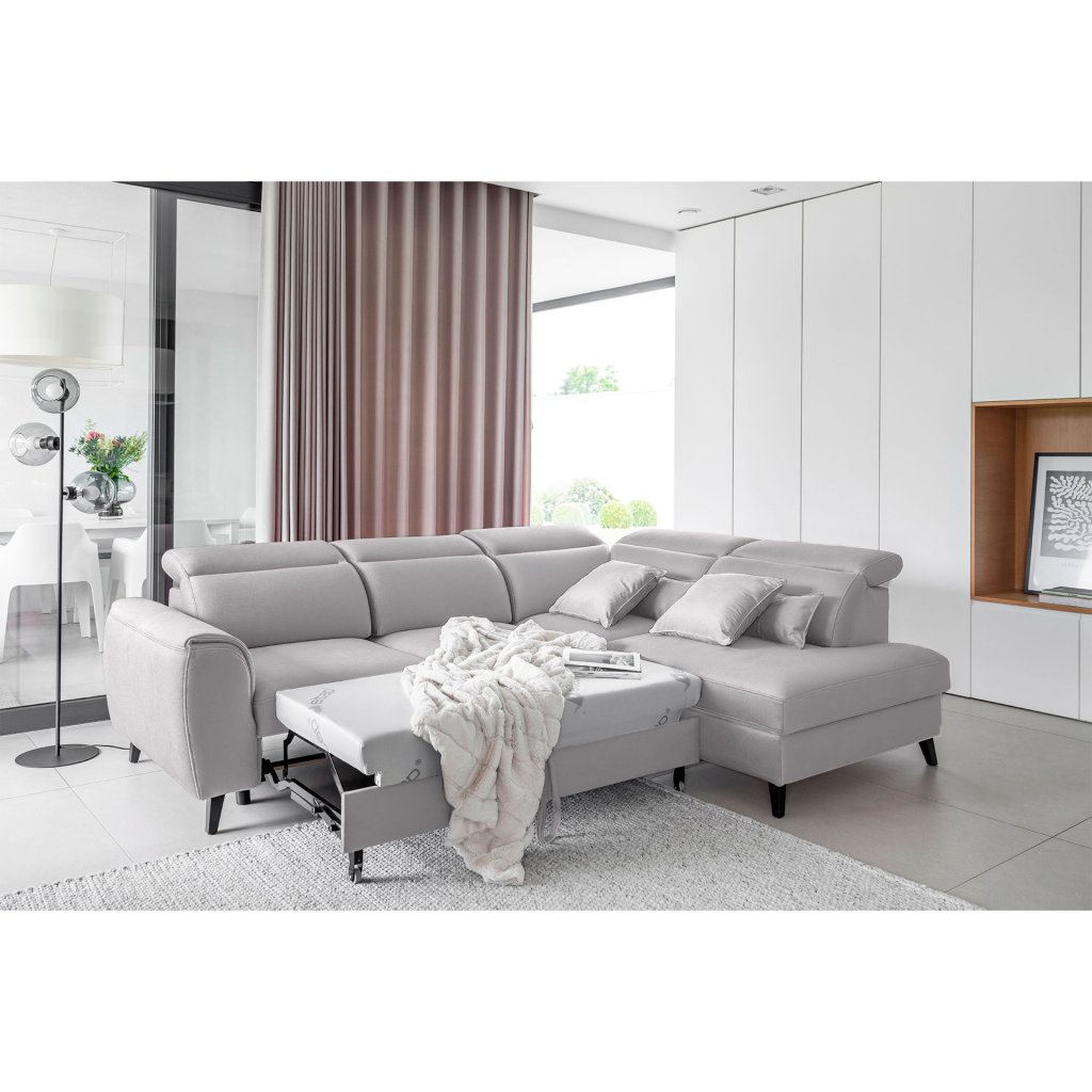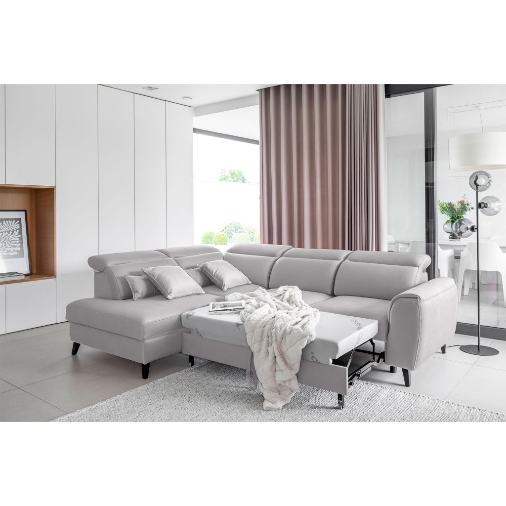 Nábytek může sloužit také jako lůžko o rozměrech 120x195 cm, protože je vybaven rozkládacím mechanismem typu delfín. Jeho předností je také výsuvné kolečko, které přispívá k většímu pohodlí z používání rohové sedací soupravy Noble.