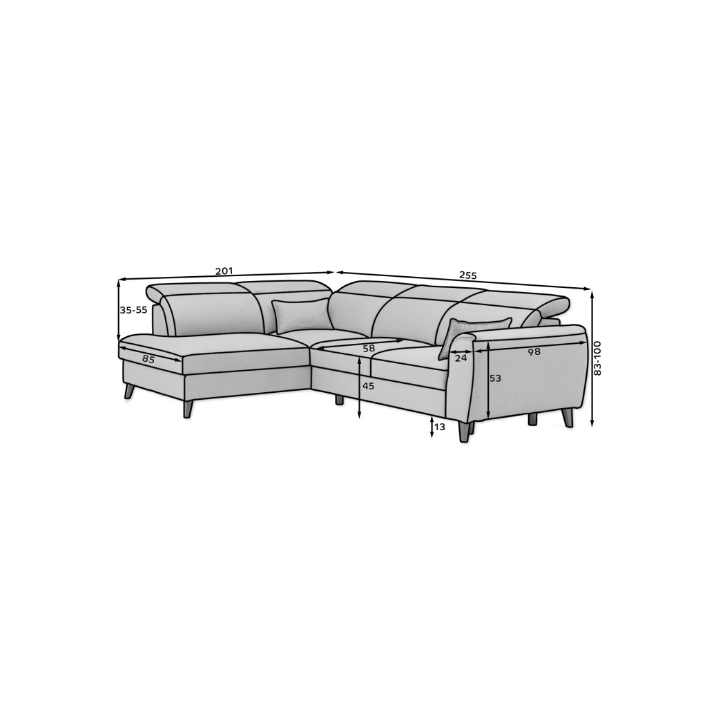 Černé dřevěné nohy o výšce 13 cm jsou lahůdkou pro majitele úklidových robotů. Naše rohové sedací soupravy byly navrženy s ohledem na pohodlí a odolnost. Právě z tohoto důvodu má rohová sedací souprava Noble 5 polohovatelných opěrek hlavy, které vám pomohou pohodlně odpočívat a relaxovat.