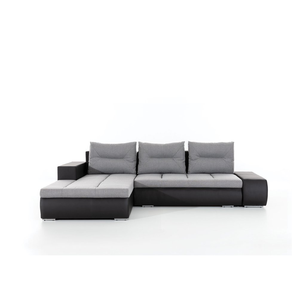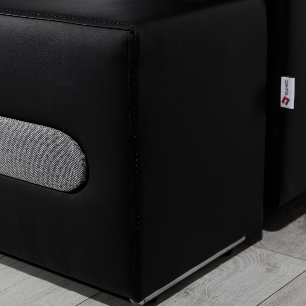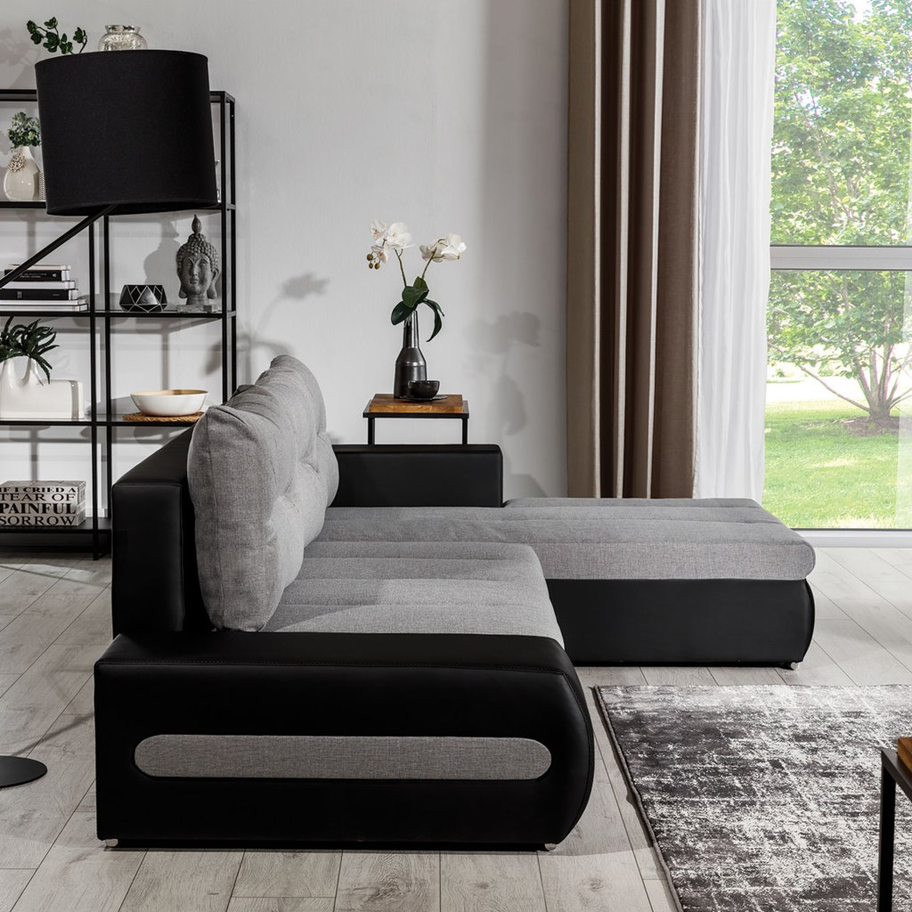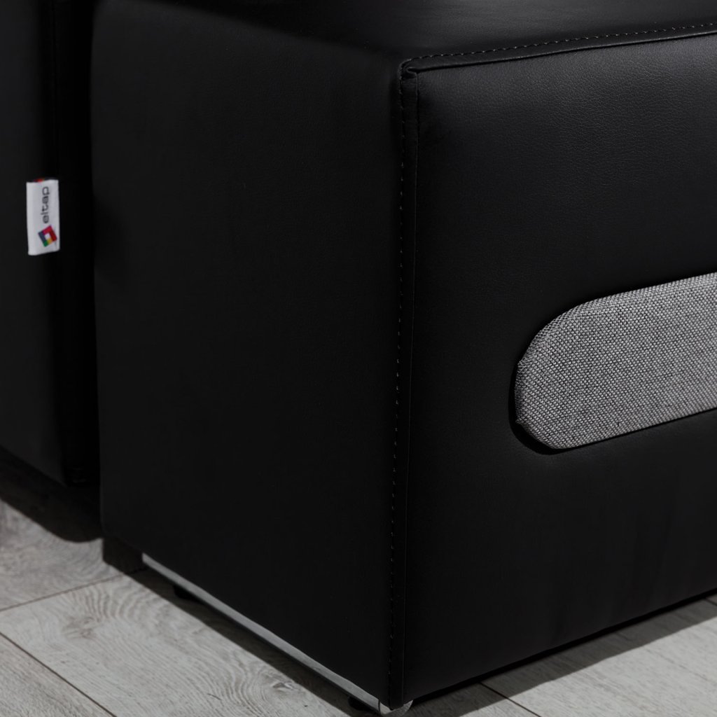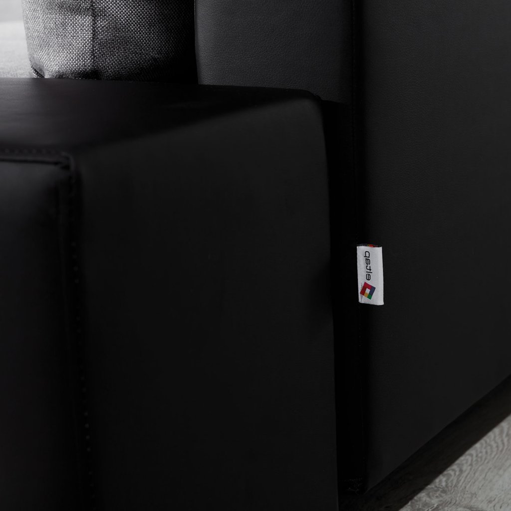 Náš nábytek je navíc vybaven funkcí spaní. Po rozložení se přemění na lůžko o rozměrech 195 x 135 cm. Přispívá k tomu jednoduchý a intuitivní typ rozkladu, který se skládá z výsuvného dna a výklopného opěradla.