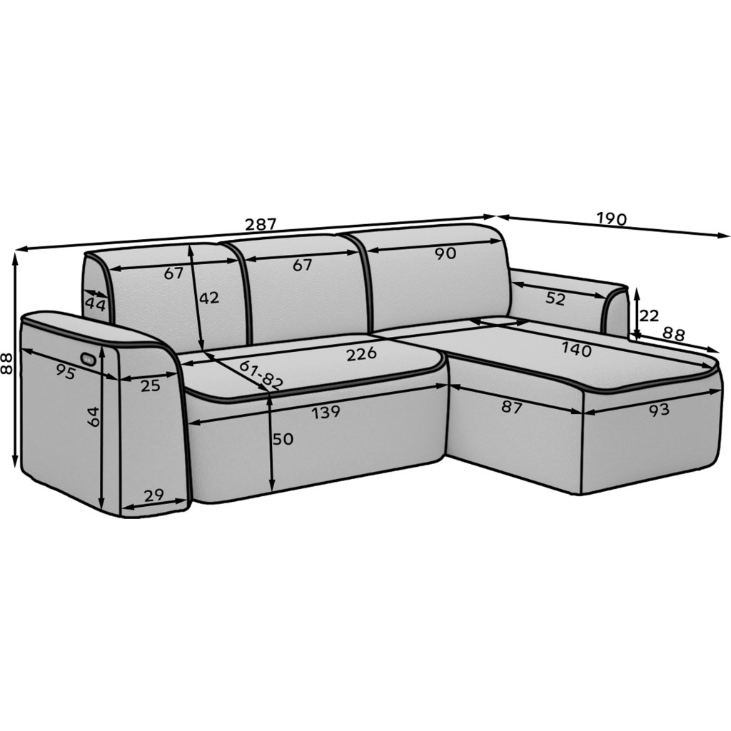 Rohová sedací souprava Ume se vyznačuje rozměry 287x190x88 cm, díky kvalitním materiálům a robustní konstrukci vám tato rohová sedací souprava poskytne dlouhá léta pohodlného užívání a spokojenosti.