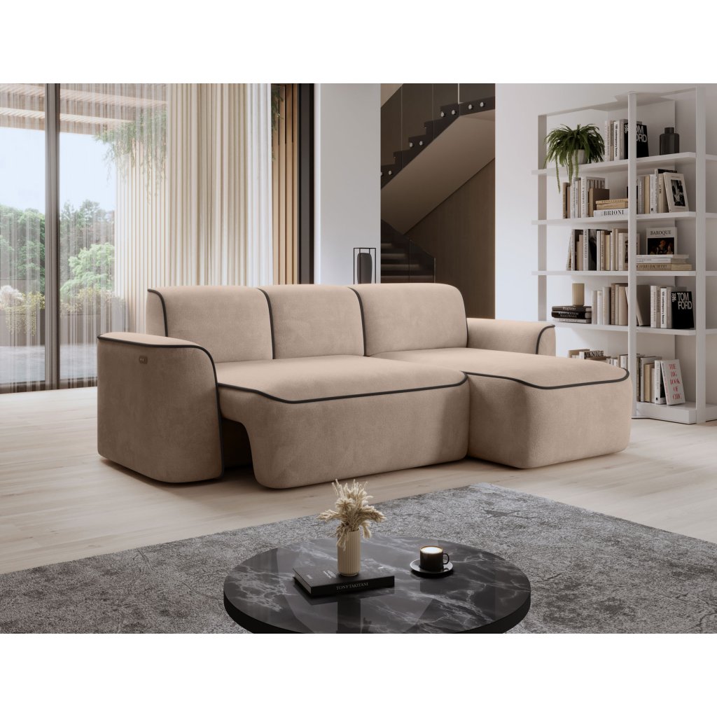 Rohová sedací souprava Ume je navíc vybavena elektricky rozkládacím sedákem, díky kterému je užívání tohoto nábytku ještě pohodlnější a funkčnější. Díky elektrickému mechanismu, můžete snadno nastavit polohu sedáku podle vlastních preferencí, což vám umožní individuální nastavení polohy sezení podle vašich potřeb. Díky tomuto inovativnímu doplňku je rohová sedací souprava Ume vynikající volbou pro ty, kteří si cení pohodlí a moderních řešení ve svém interiéru.