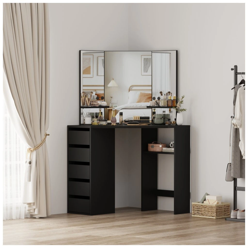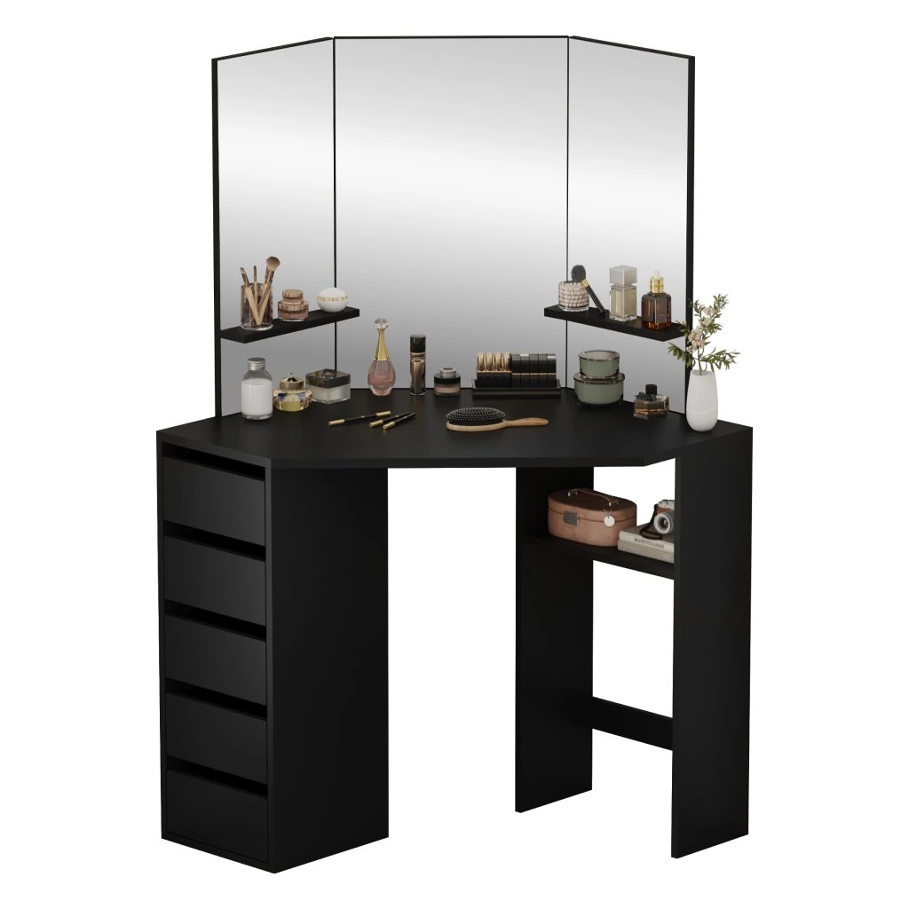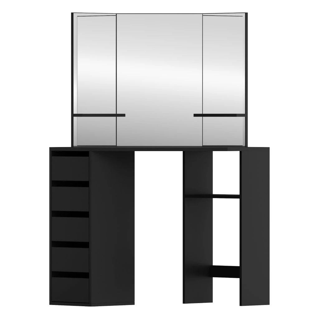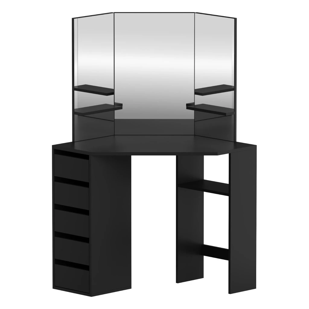 Rohový toaletní stolek, černá, ELIO