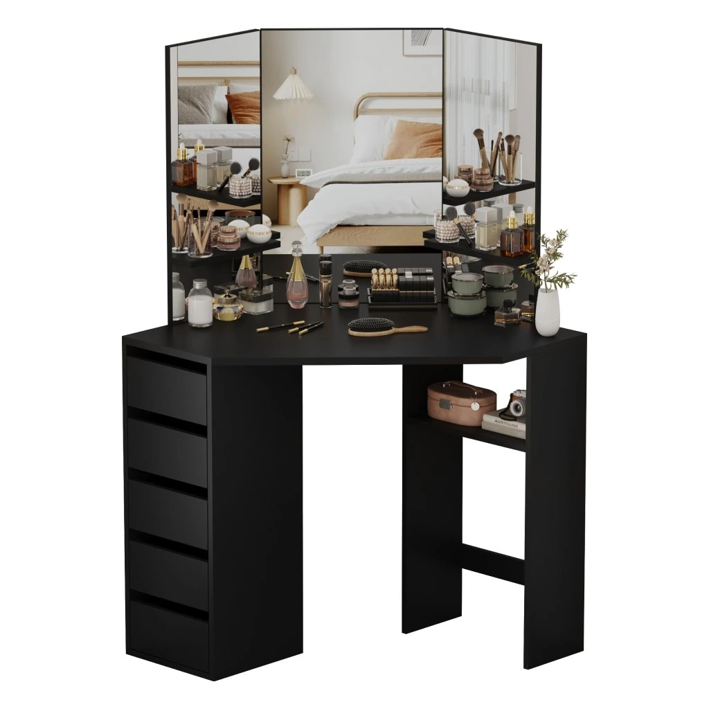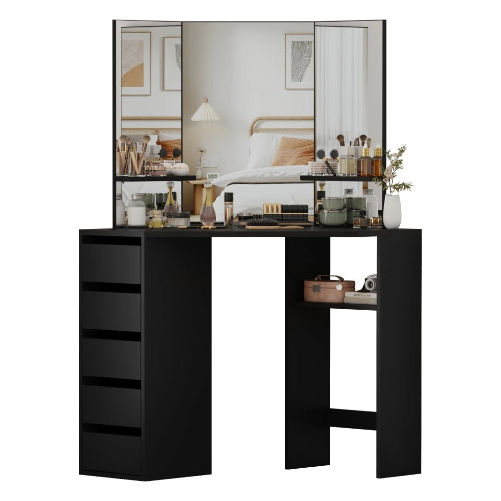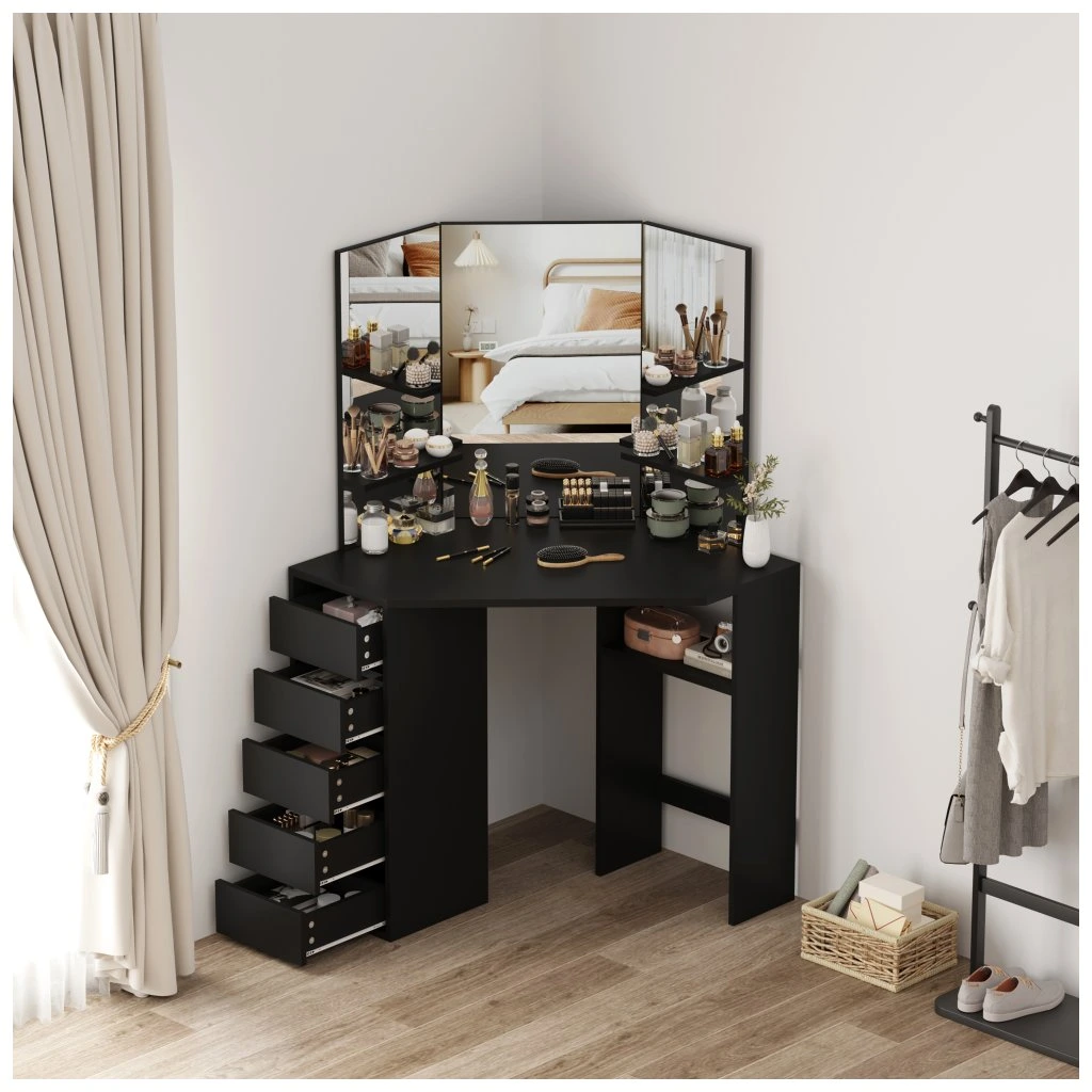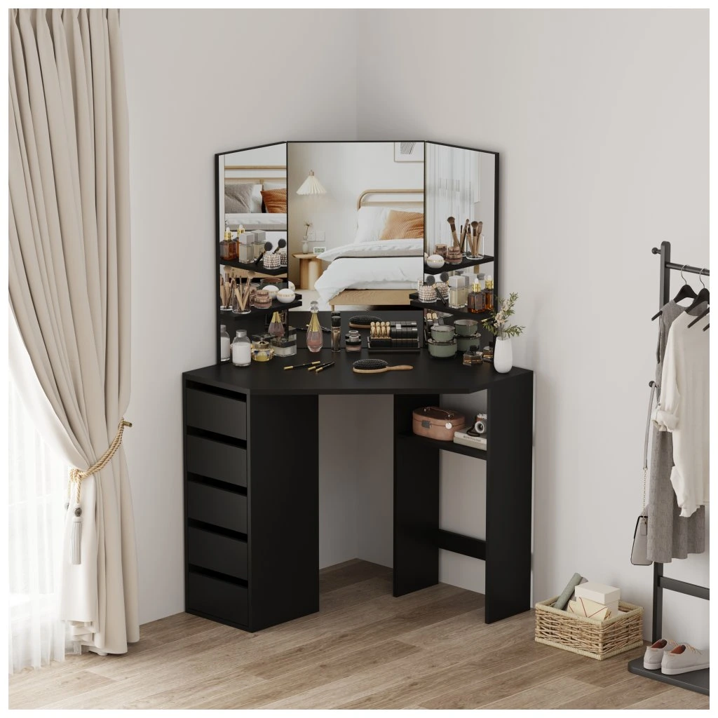 Rohový toaletní stolek, černá, ELIO