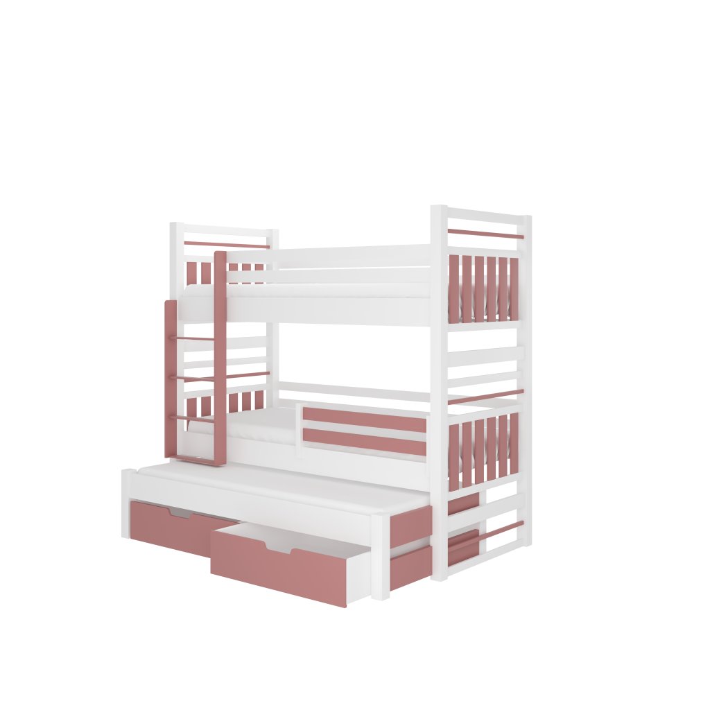 Rozkládací patrová postel HIPPO, CH-Hip-W+P-208-E1911, 200x90 cm, bílá/růžová