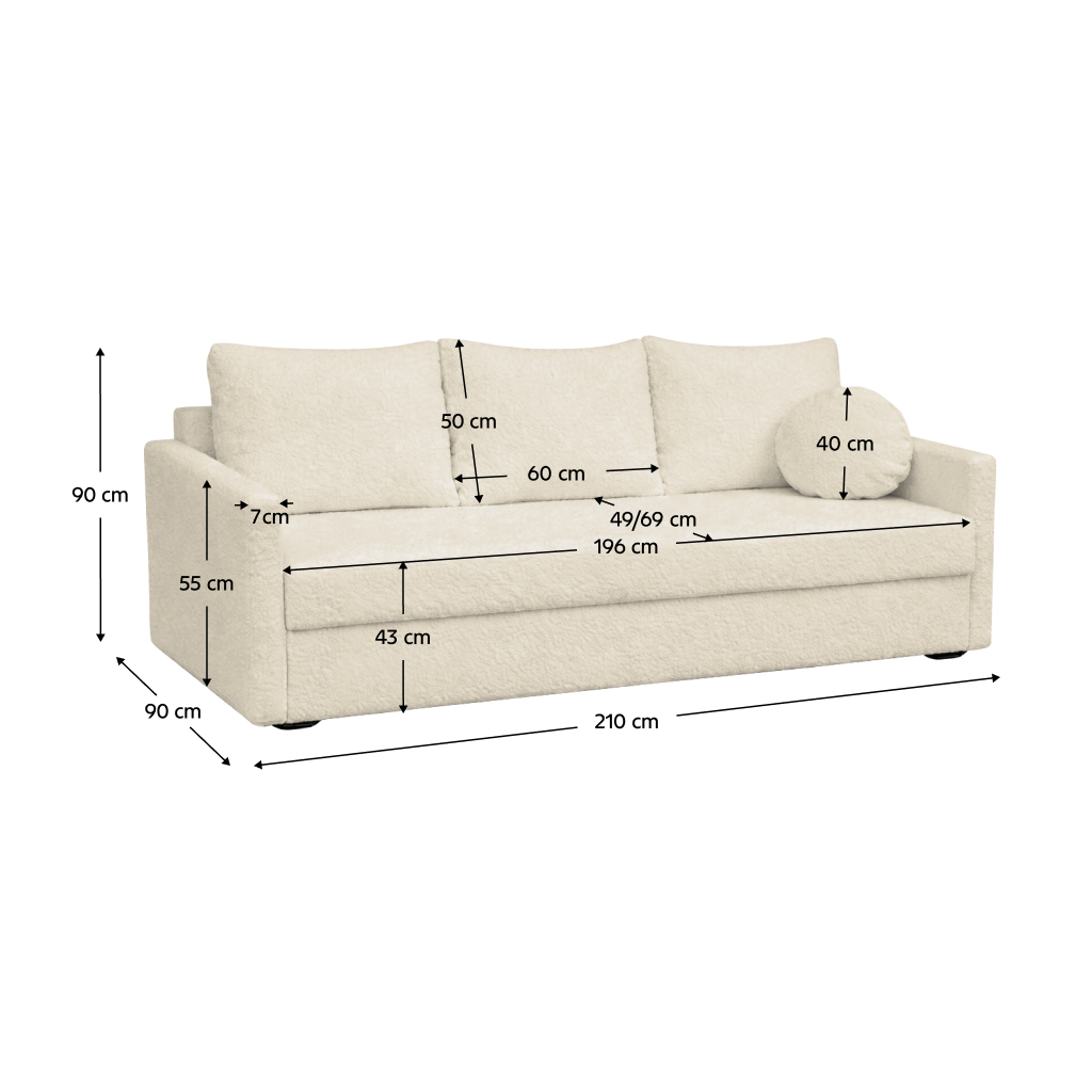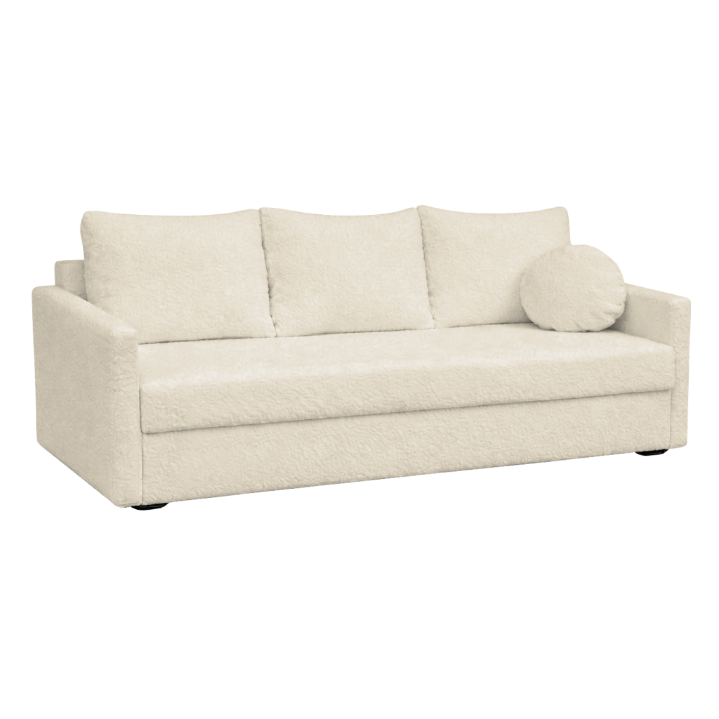 Pohovka je navržena s důrazem na praktičnost a multifunkčnost. Díky jednoduchému mechanismu ji snadno proměníte v prostorné lůžko pro hosty, zatímco integrovaný úložný prostor poskytne místo pro lůžkoviny nebo sezónní věci. Stabilitu a stylový vzhled zajišťují černé plastové nožičky, které decentně doplňují celkový vzhled nábytku.