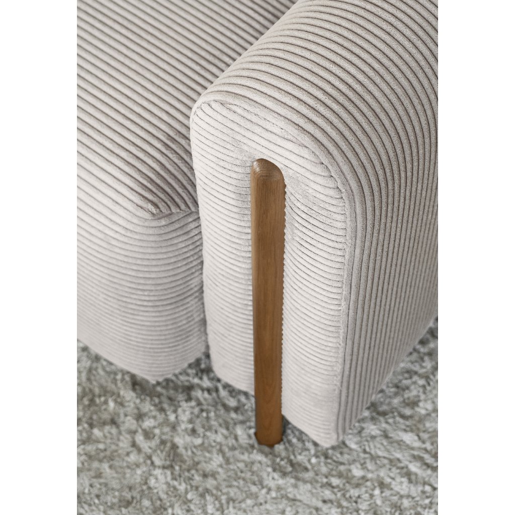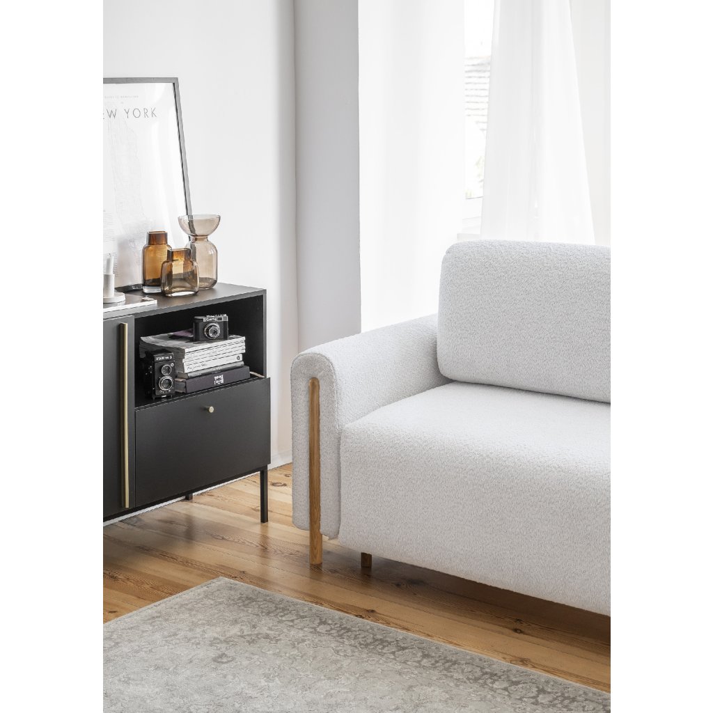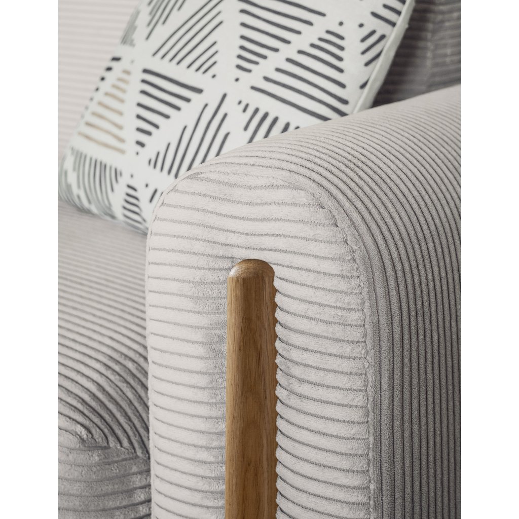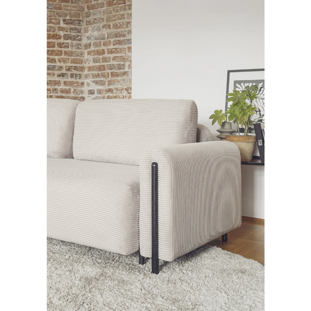 Pohovka Arcadova je elegantní kus nábytku, který dodá vašemu interiéru styl a pohodlí. Má působivou šířku 244 cm, která poskytuje dostatek prostoru k sezení.Hloubka je 97 cm a výška 97 cm. Sedák pohovky je měkký a pohodlný a materiál výplně opěradla a opěrných polštářů zaručuje oporu pro vaše záda. Arcadova má navíc půlkruhové područky, které jí dodávají na charakteru. Pohovka je vybavena černými nábytkovými nohami z masivního dřeva.