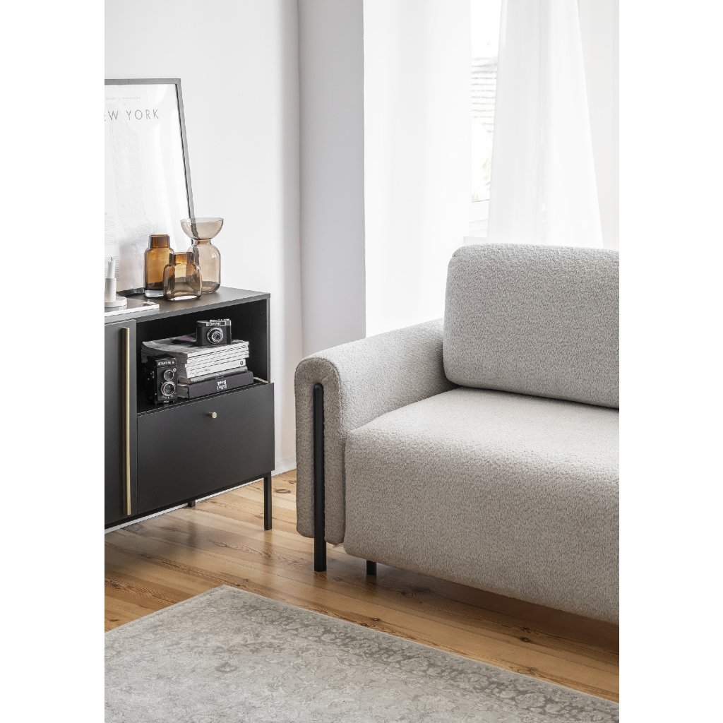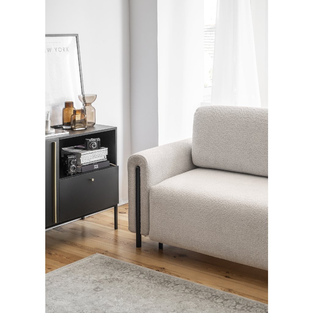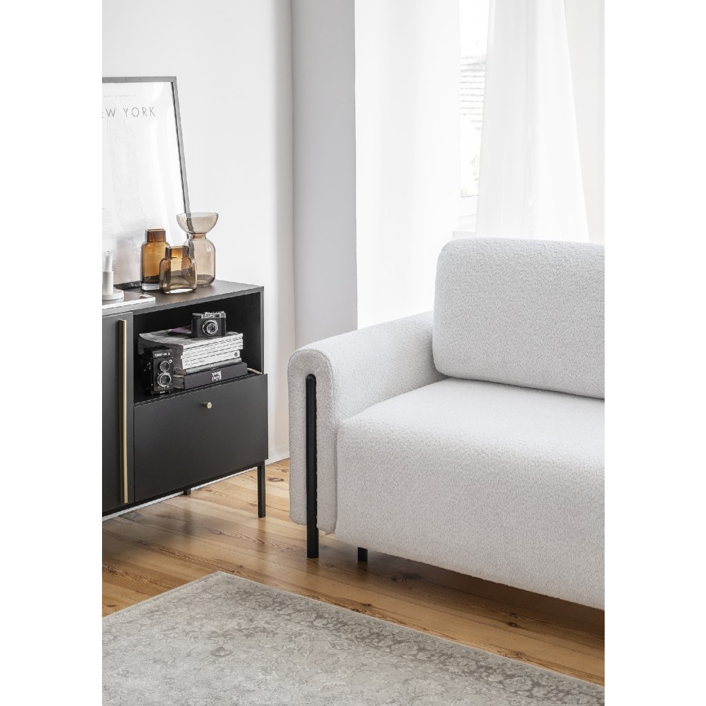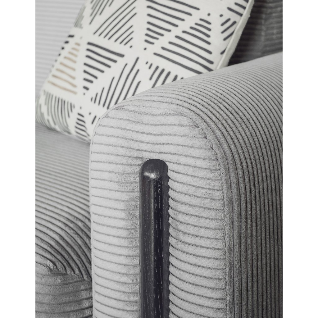 Pohovka Arcadova je elegantní kus nábytku, který dodá vašemu interiéru styl a pohodlí. Má působivou šířku 244 cm, která poskytuje dostatek prostoru k sezení.Hloubka je 97 cm a výška 97 cm. Sedák pohovky je měkký a pohodlný a materiál výplně opěradla a opěrných polštářů zaručuje oporu pro vaše záda. Arcadova má navíc půlkruhové područky, které jí dodávají na charakteru. Pohovka je vybavena černými nábytkovými nohami z masivního dřeva.