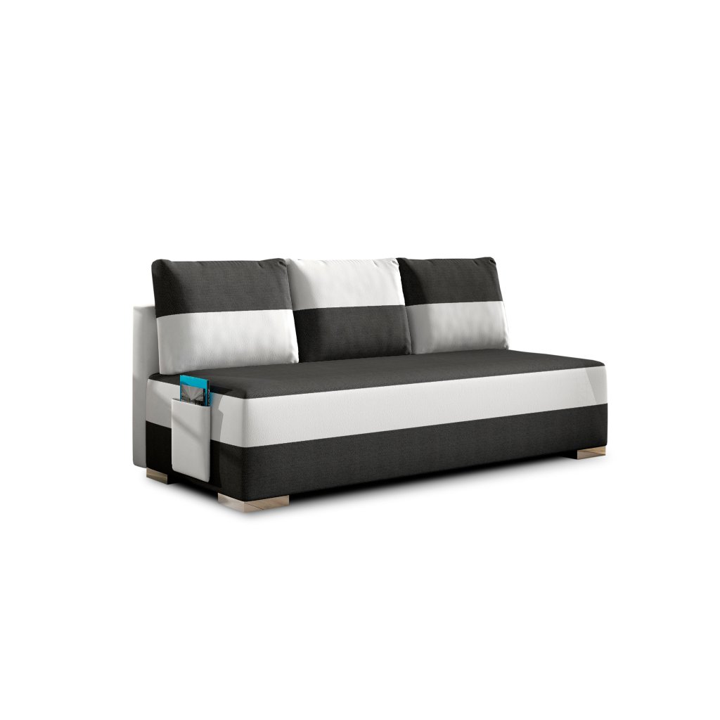 Atila je pohodlná a stylová pohovka o rozměrech 200 x 92 x 83 cm, která jistě zaujme svým originálním designem. Geometrické tvary a pevná konstrukce jsou prolomeny originální estetikou. Náš kus nábytku je k dispozici v kombinaci dvou barevných provedení.U tohoto modelu stojí za zmínku zajímavé provedení, prostorné dekorační polštáře, objemný úložný prostor na lůžkoviny (vše podpořeno DL mechanismem otevírání) a boční kapsa, umístěná na jedné straně nábytku. maximální pohodlí zajišťuje výplň v podobě bonell a T25 pěny - obě řešení zaručují správnou polohu těla jak při denním užívání, tak při nočním odpočinku, na lůžku o rozměrech 200 x 140 cm. Takovou moderní a pohodlnou postel se vyplatí mít doma.