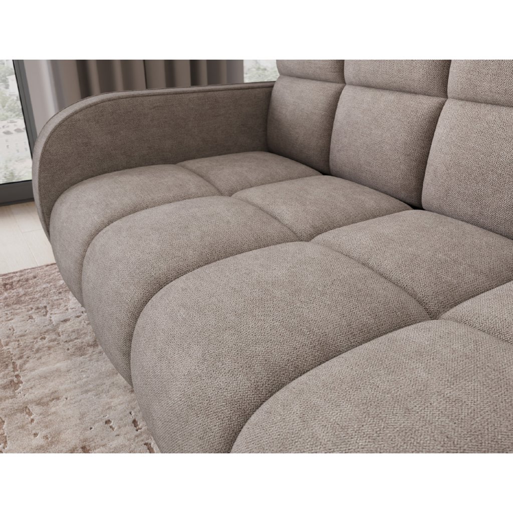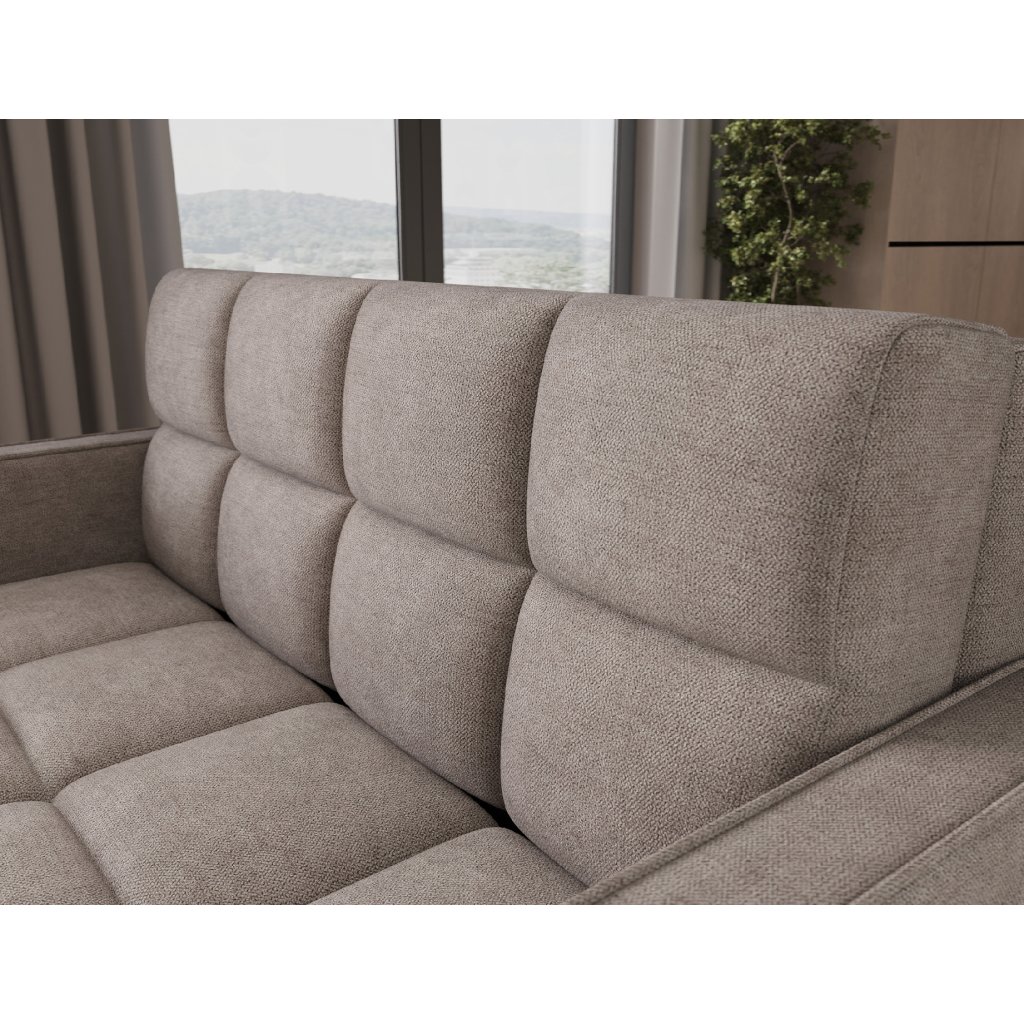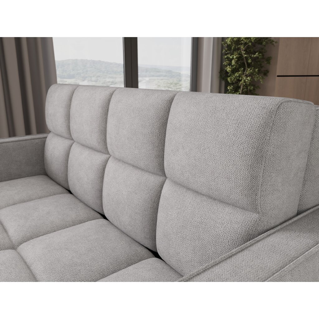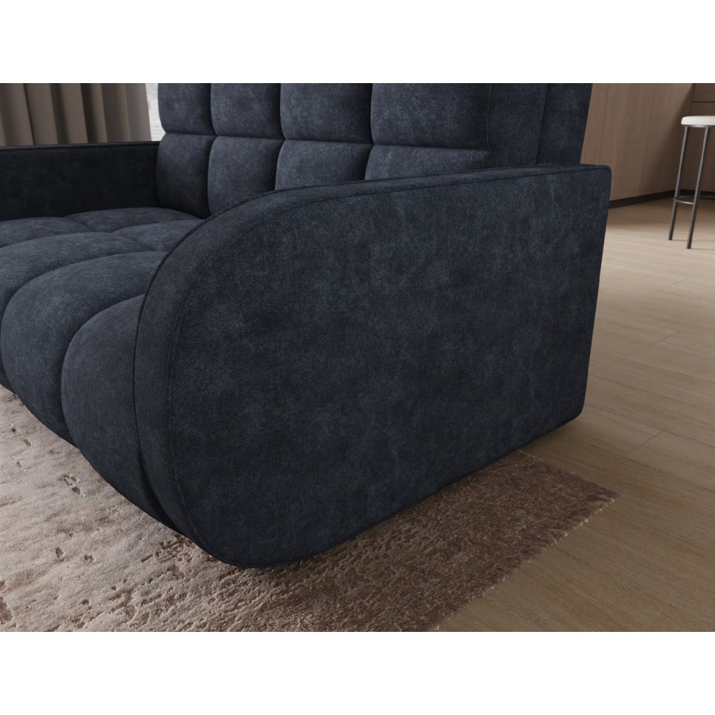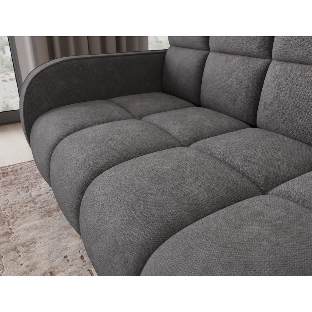 Sedací souprava disponuje funkcí spaní, která umožňuje rychlou přeměnu na lůžko, a praktickým úložným prostorem na ložní prádlo. Tapecírovaný zadní díl umožňuje volné umístění v prostoru bez nutnosti přisunout ke stěně, což zvyšuje flexibilitu při aranžování místnosti. Celá konstrukce je osazena černými plastovými nohami, které podtrhují moderní charakter sedací soupravy Deverio – ideální kombinace stylu, pohodlí a funkčnosti pro každodenní používání.
