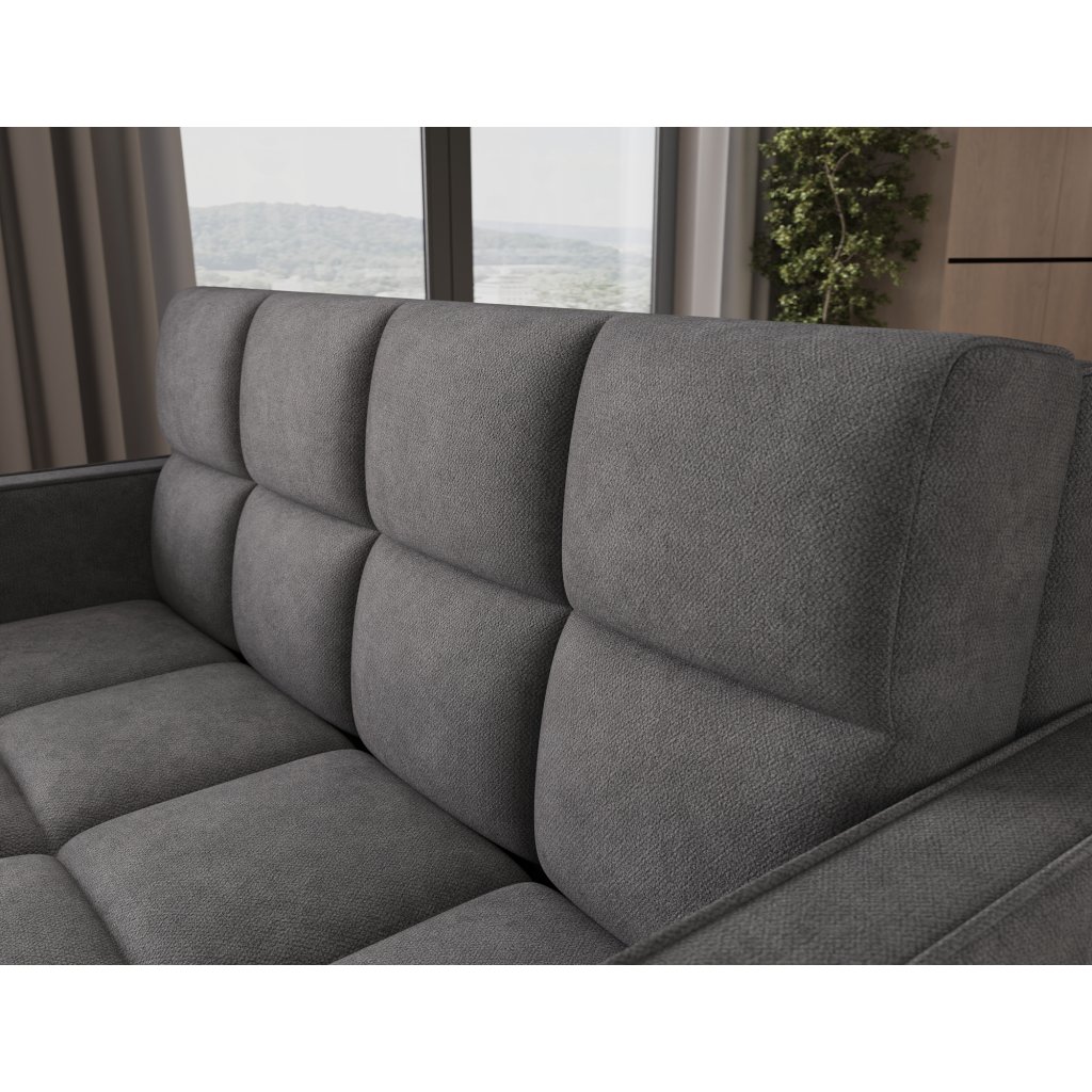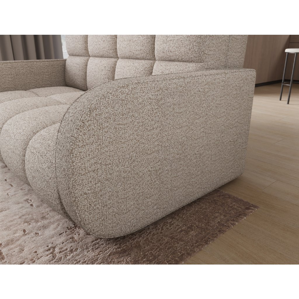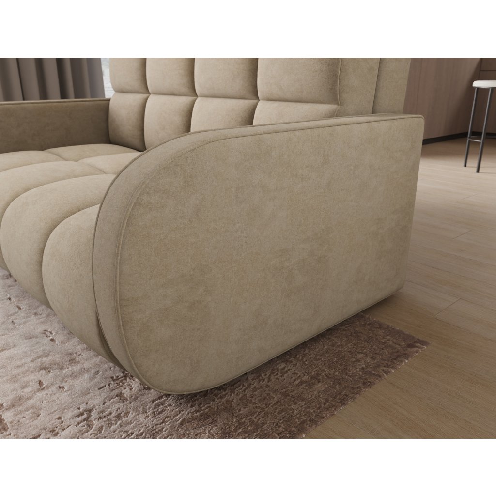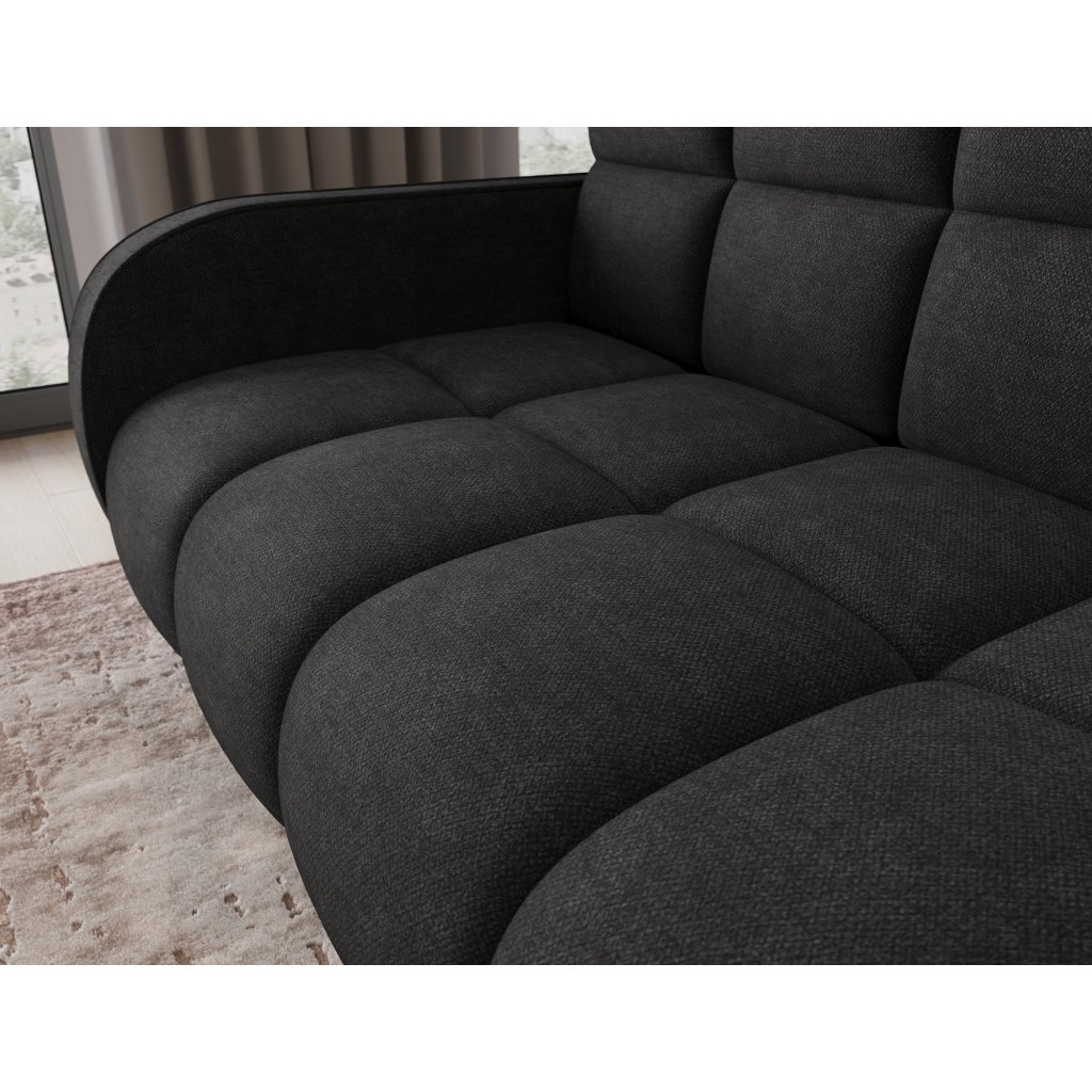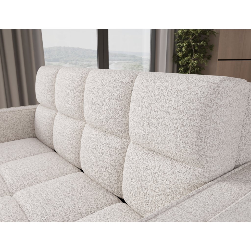Sedací souprava disponuje funkcí spaní, která umožňuje rychlou přeměnu na lůžko, a praktickým úložným prostorem na ložní prádlo. Tapecírovaný zadní díl umožňuje volné umístění v prostoru bez nutnosti přisunout ke stěně, což zvyšuje flexibilitu při aranžování místnosti. Celá konstrukce je osazena černými plastovými nohami, které podtrhují moderní charakter sedací soupravy Deverio – ideální kombinace stylu, pohodlí a funkčnosti pro každodenní používání.
