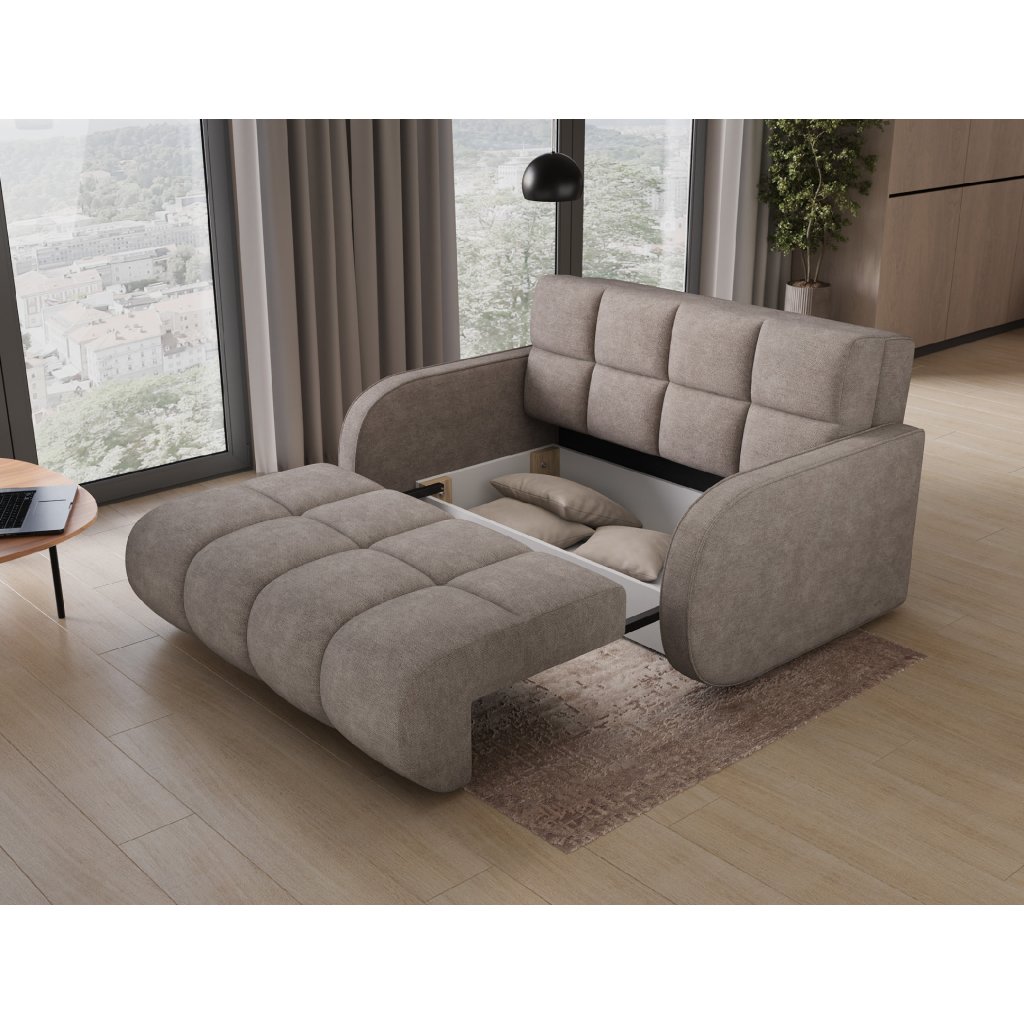 Sedací souprava Deverio o rozměru 154x103x83 cm je moderní, kompaktní nábytek, který se skvěle hodí do menších bytů, pokojů pro hosty nebo mládež. Díky kombinaci dvou druhů pěn – T2540 a T2315 – poskytuje pohodlné sezení a zároveň komfortní spaní.