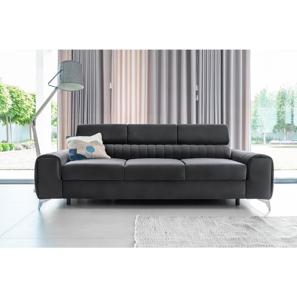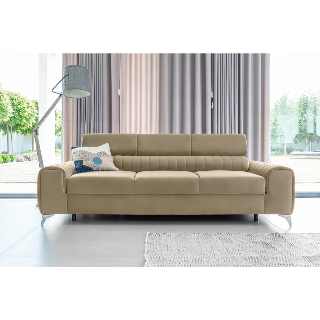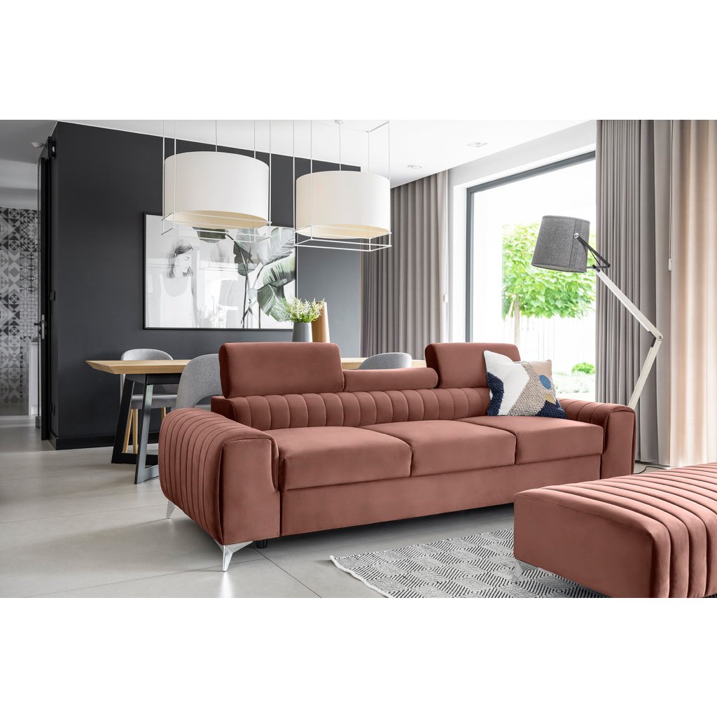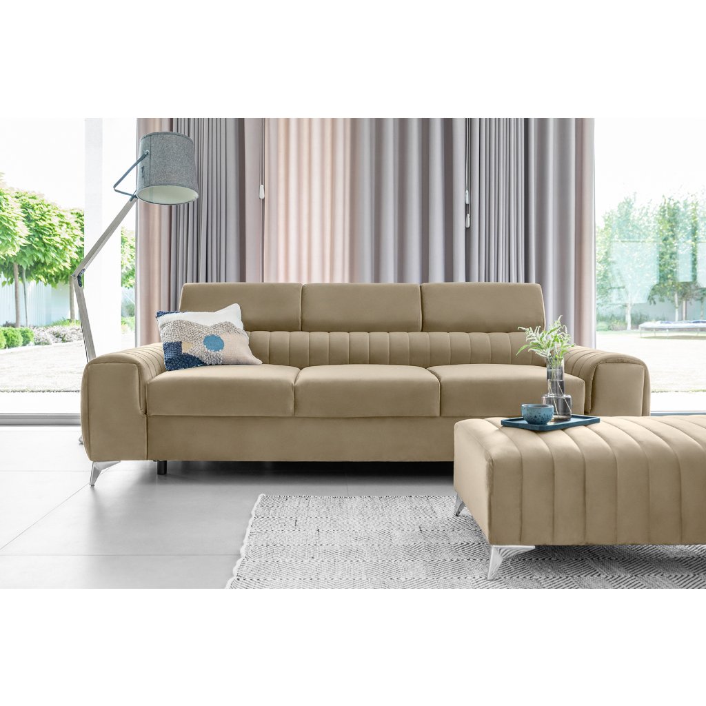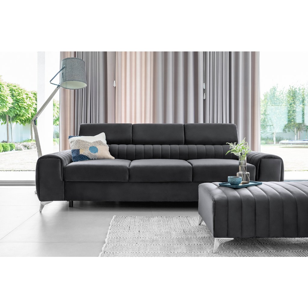Pohovka Laurence má masivní dřevěný rám, který spočívá na diagonálních chromovaných kovových nohách. Pohovka je potažena elegantními látkami z kolekce ELTAP a její sedák je vyplněn pěnou HR a T30. Kromě toho je kus nábytku podepřen robustními vlnitými pružinami typu B, které poskytují pocit pohodlí a komfortu. Pohovka Laurence vnáší do interiéru lehkost a styl. Klasický tvar kusu nábytku je rozbit prošitím a jasně zdůrazněným rozdělením kusu nábytku na tři místa v sedací části.Pohovka Laurence je ideální volbou do menších místností, kam nelze umístit například rohovou pohovku. Její rozměry jsou: Rozměry: 261x97x105 cm. Výška nožiček nábytku umožňuje úklid moderními úklidovými roboty pod pohovkou, protože je 9 cm.