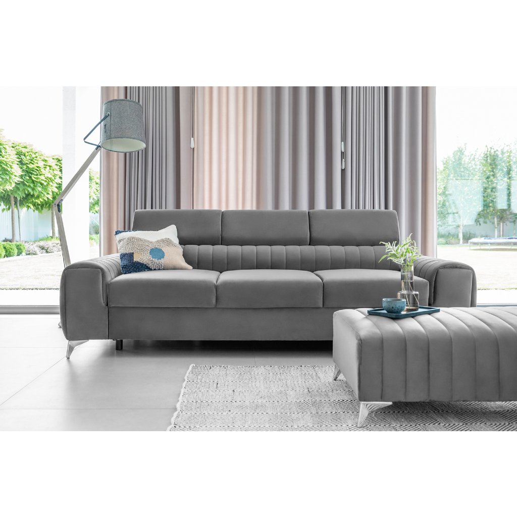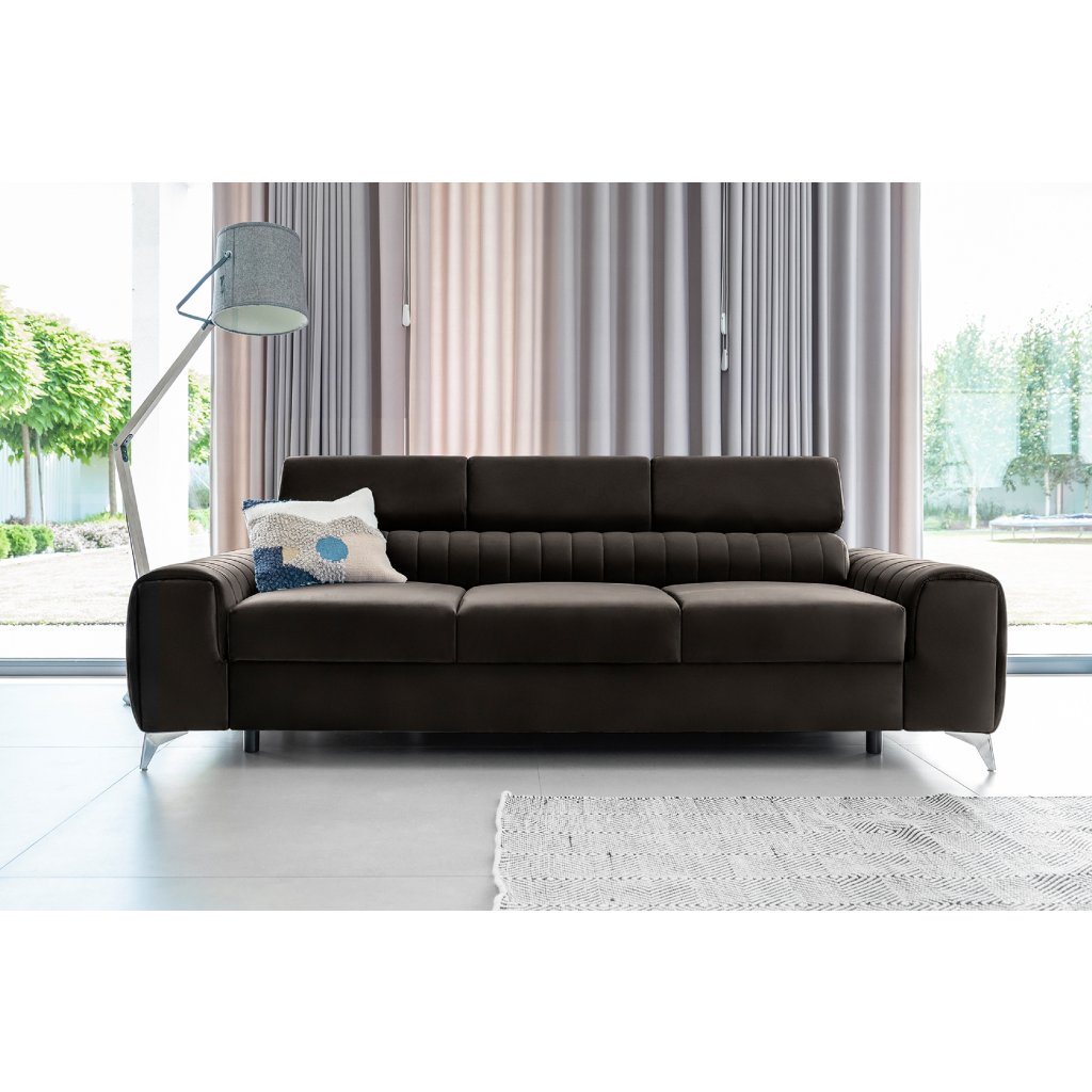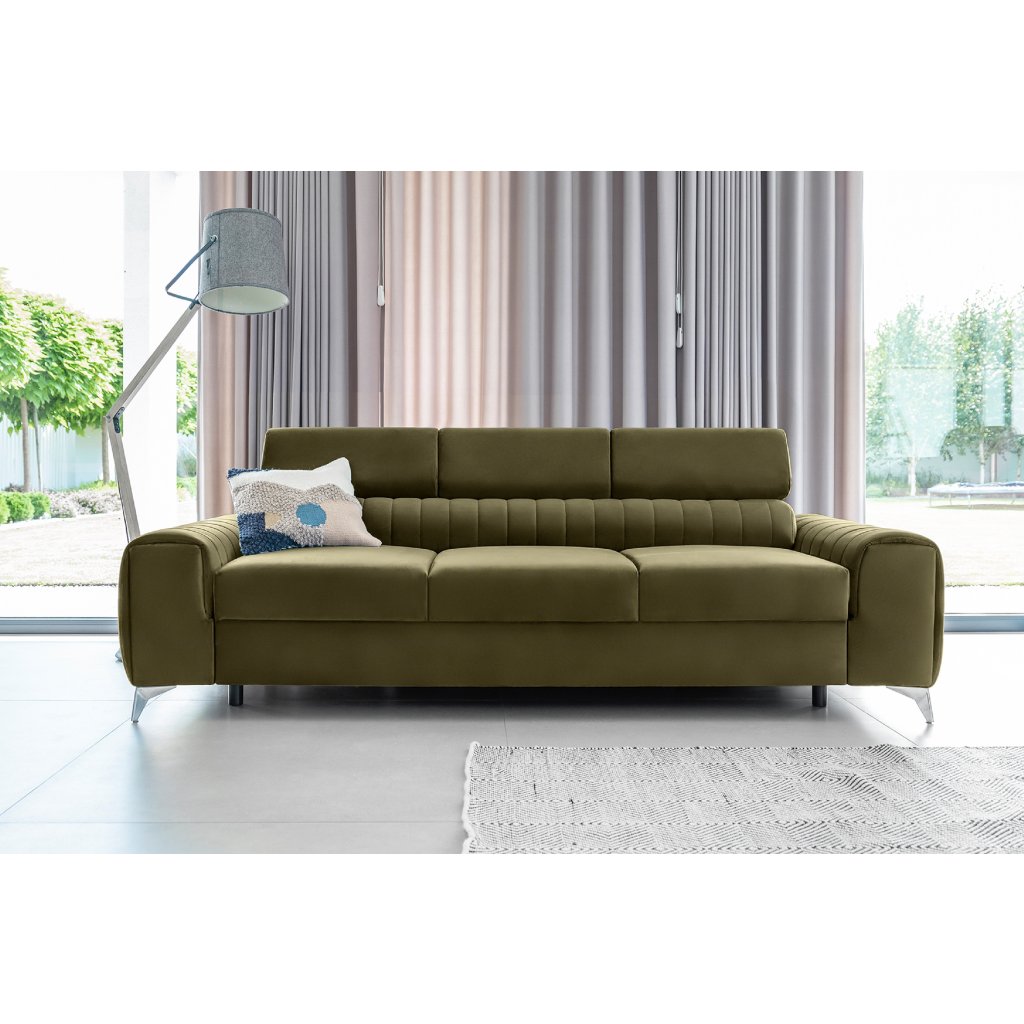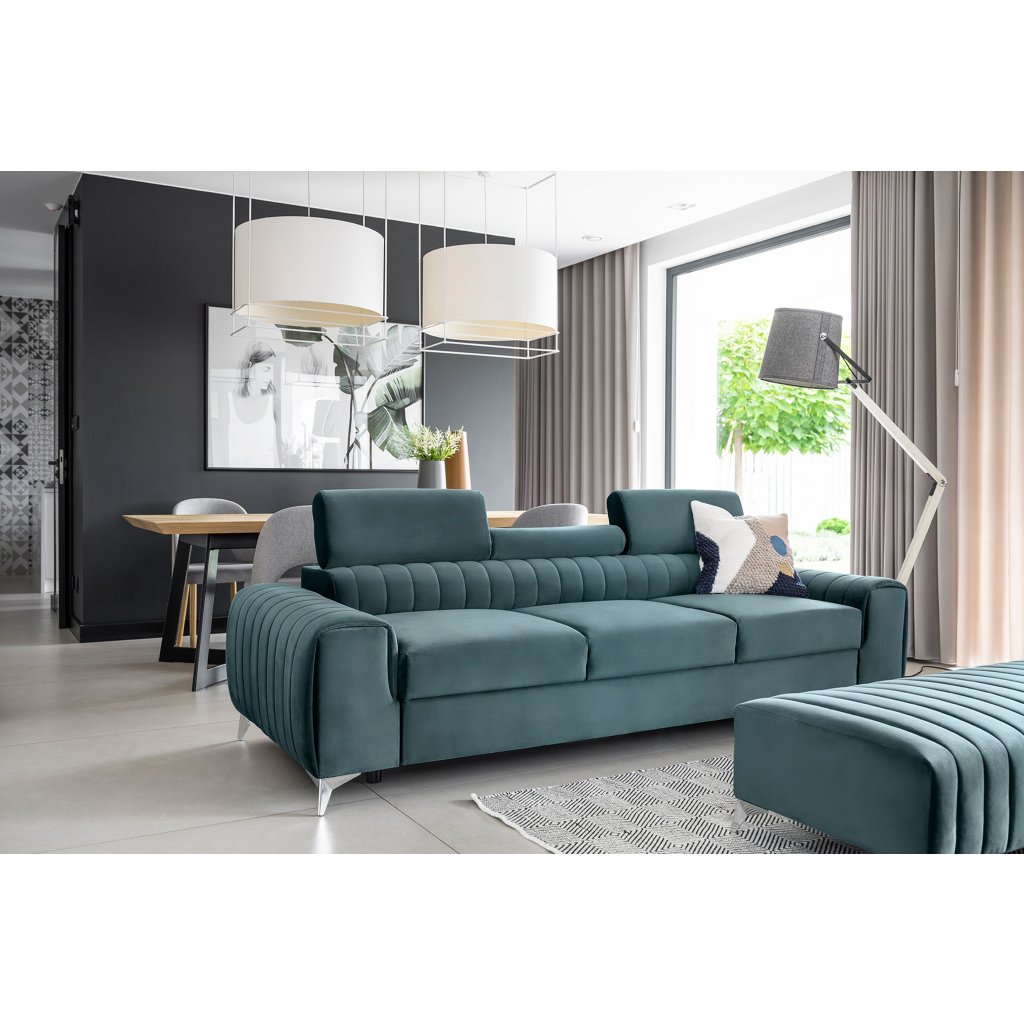 Pohovka Laurence má masivní dřevěný rám, který spočívá na diagonálních chromovaných kovových nohách. Pohovka je potažena elegantními látkami z kolekce ELTAP a její sedák je vyplněn pěnou HR a T30. Kromě toho je kus nábytku podepřen robustními vlnitými pružinami typu B, které poskytují pocit pohodlí a komfortu. Pohovka Laurence vnáší do interiéru lehkost a styl. Klasický tvar kusu nábytku je rozbit prošitím a jasně zdůrazněným rozdělením kusu nábytku na tři místa v sedací části.Pohovka Laurence je ideální volbou do menších místností, kam nelze umístit například rohovou pohovku. Její rozměry jsou: Rozměry: 261x97x105 cm. Výška nožiček nábytku umožňuje úklid moderními úklidovými roboty pod pohovkou, protože je 9 cm.