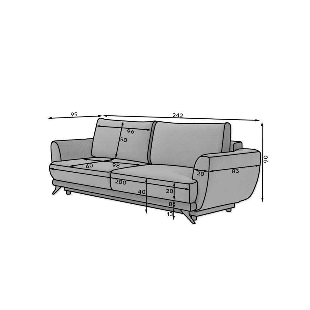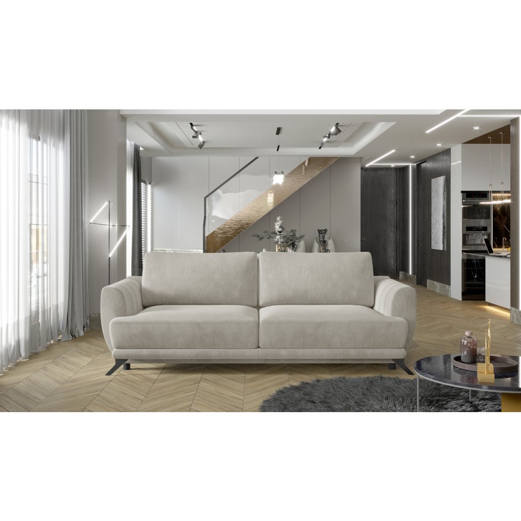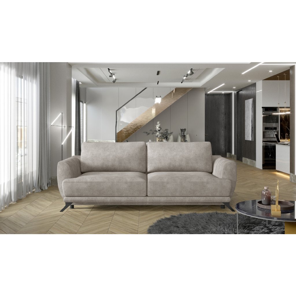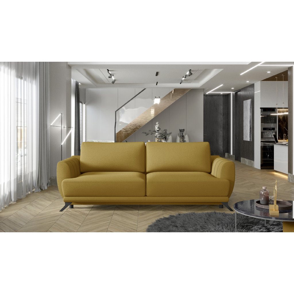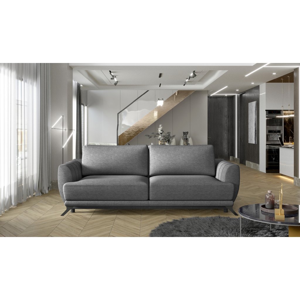 Megis je prostorná stylová pohovka o rozměrech 250 x 95 x 90 cm, která je určena pro milovníky minimalismu. Je ideální pro lenošení přes den i v noci, protože po rozložení pomocí mechanismu DL může mít podobu lůžka o rozměrech 200 x 145 cm.Za zmínku zde stojí také velkorysý kontejner na lůžkoviny umístěný v boxu. Díky použití HR pěny a vlnitých pružin typu B - se pohovka Megis nedeformuje, což z ní činí ideální řešení pro obývací pokoj na dlouhá léta. Mezi další přednosti tohoto modelu patří prostorné polštáře, vysoké (až 13 cm) nohy, profilované opěradlo, pohodlné područky, měkký sedák a široká škála možných barevných variant. Megis je minimalistický kus nábytku, který splňuje maximum požadavků, takže stojí za to ho mít!