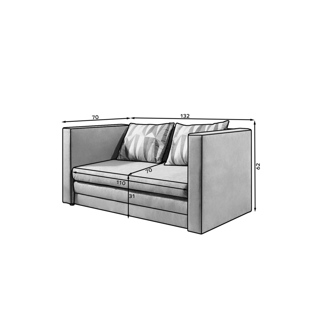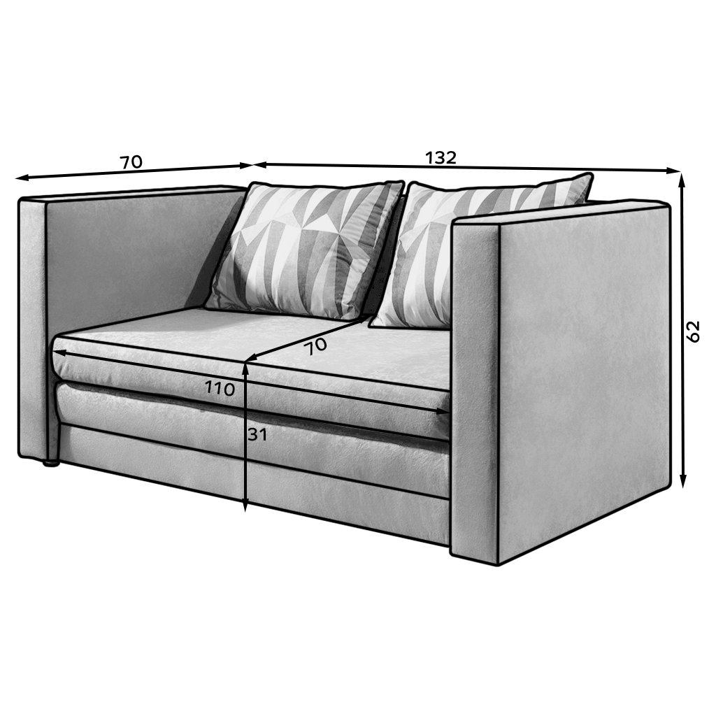 Neva je pohodlná, kompaktní a stylová pohovka o rozměrech 132 x 70 x 65 cm, která na sebe upozorňuje stylovým provedením. Neva má hluboký sedák vyplněný pěnou T25, díky které je tento kus nábytku odolný vůči nevzhledným otlakům a deformacím.Mezi další vlastnosti naší pohovky patří vysoké opěradlo a kontrastní polštáře. Lze ji velmi snadno a rychle přeměnit na lůžko s plochou na spaní 110 x 210 cm. S funkční čalouněnou pohovkou Neva se můžete vždy cítit výjimečně. Tím spíše, když se maximální pohodlí snoubí s nadprůměrným zpracováním. S takovou pohovkou bude váš obývací pokoj vypadat opravdu výjimečně.