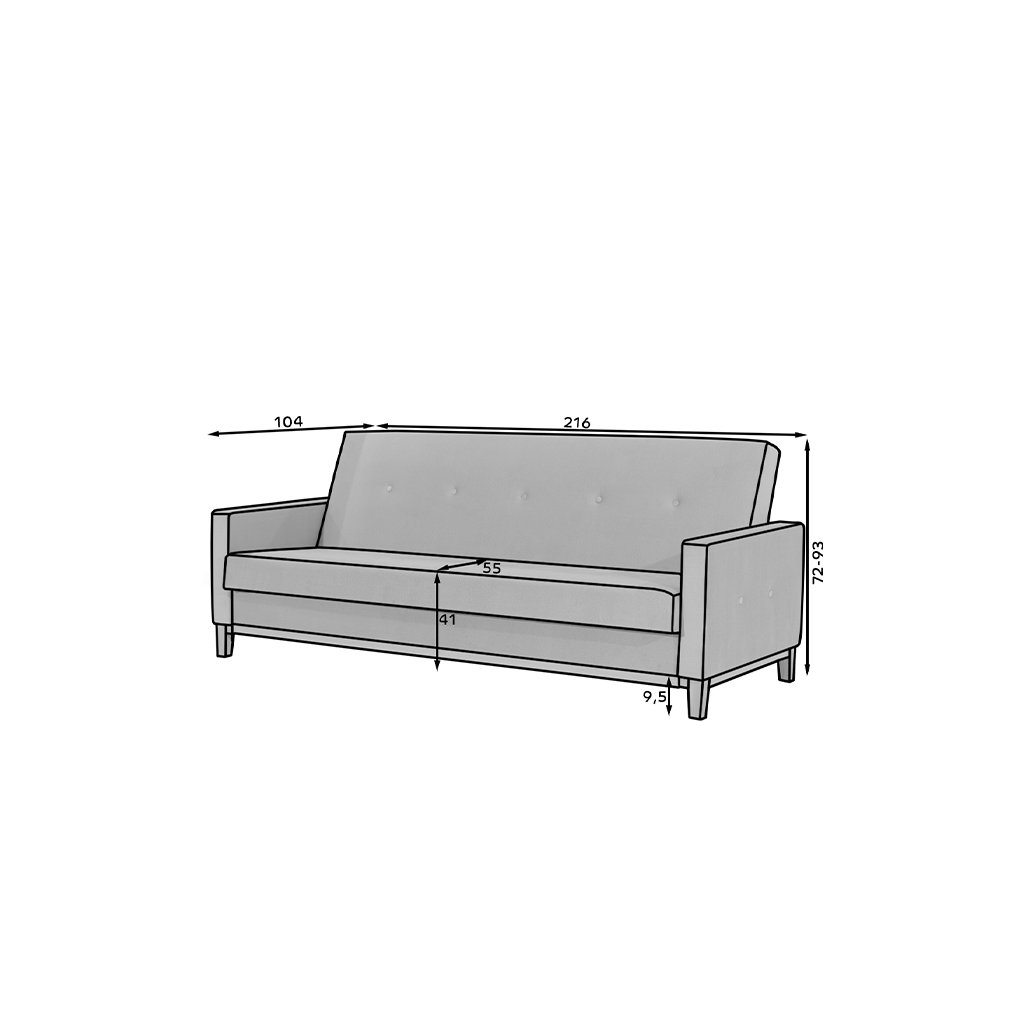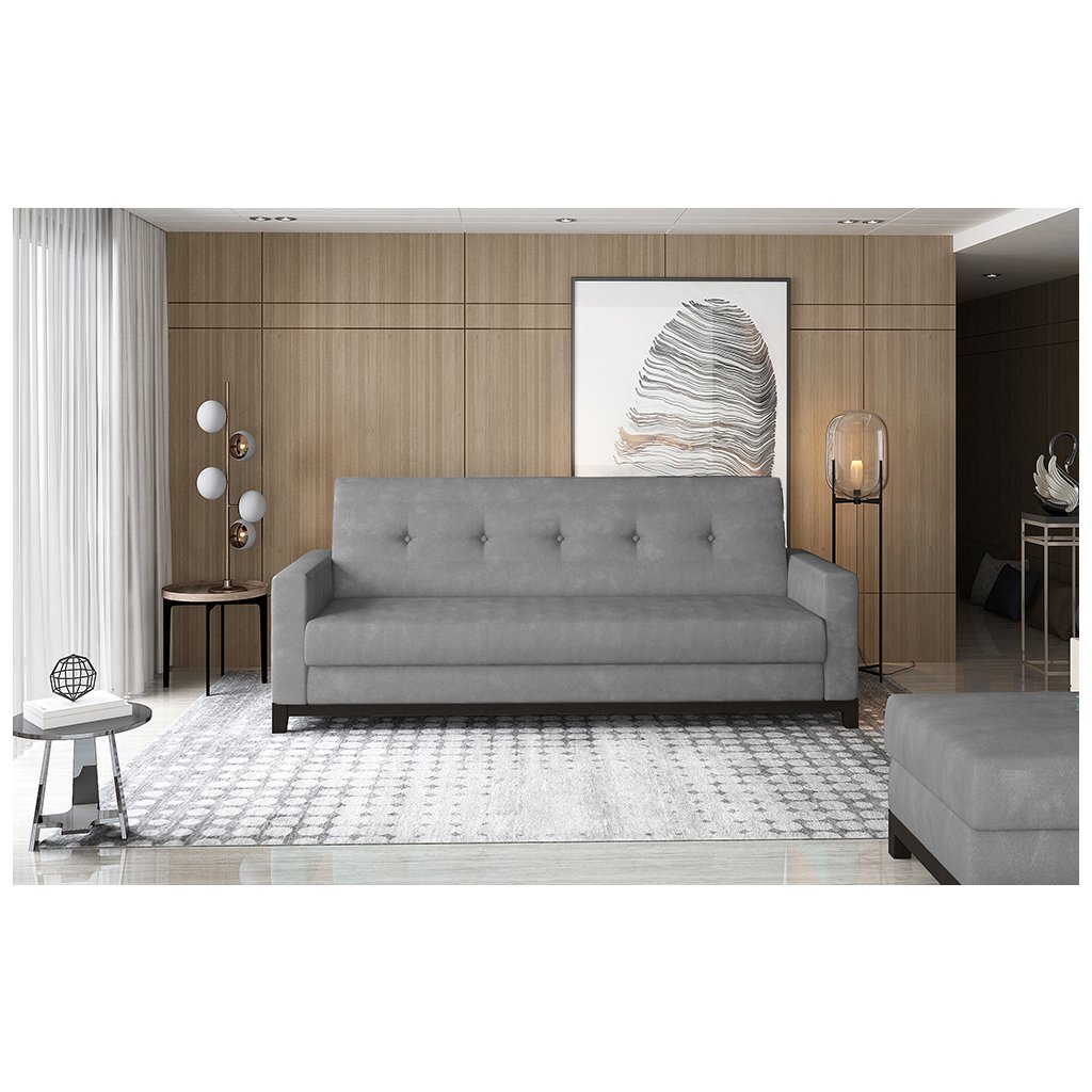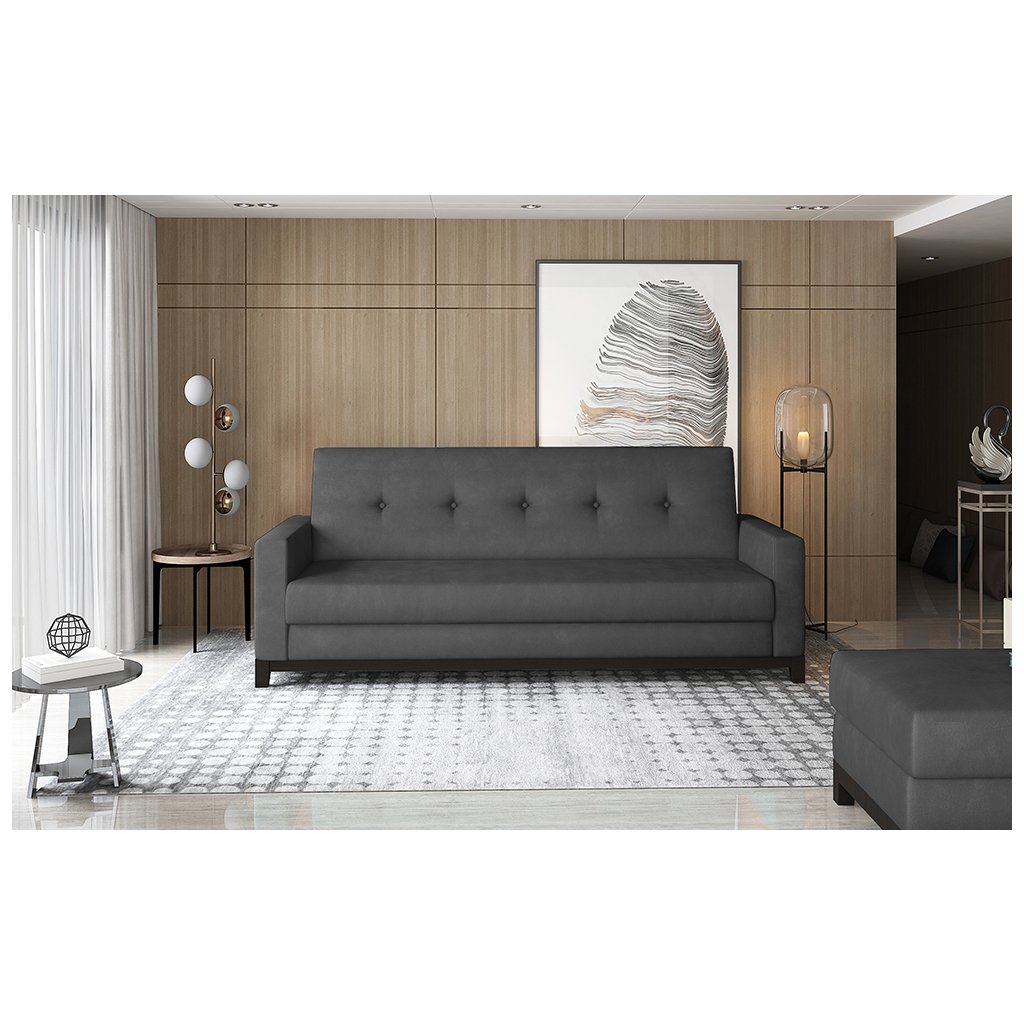 Selene je prostorná klasická pohovka o rozměrech 216 x 87 x 93 cm, která je vytvořena mimořádně stylově a zároveň minimalisticky. Je ideální pro lenošení přes den i v noci, protože po rozložení pomocí mechanismu click-clack může mít podobu lůžka o rozměrech 195 x 110 cm.Pohovka má také velkorysý kontejner na lůžkoviny, který je umístěn v nábytkové skříni. Co se týče její výjimečné pružnosti a měkkosti, měli bychom zde zmínit pěnu T30, která je odolná vůči nevzhledným otlakům. Mezi další přednosti tohoto modelu patří: stylové prošívání na opěradle a bocích nábytku, dřevěné nohy z masivního dřeva, profilované opěradlo a dostupnost modelu v mnoha barevných variantách. Selene je výjimečný kus nábytku, který vydrží dlouhá léta. Pokud vám záleží na maximálním pohodlí v kombinaci s funkčností - Selene bude jistě hitem!