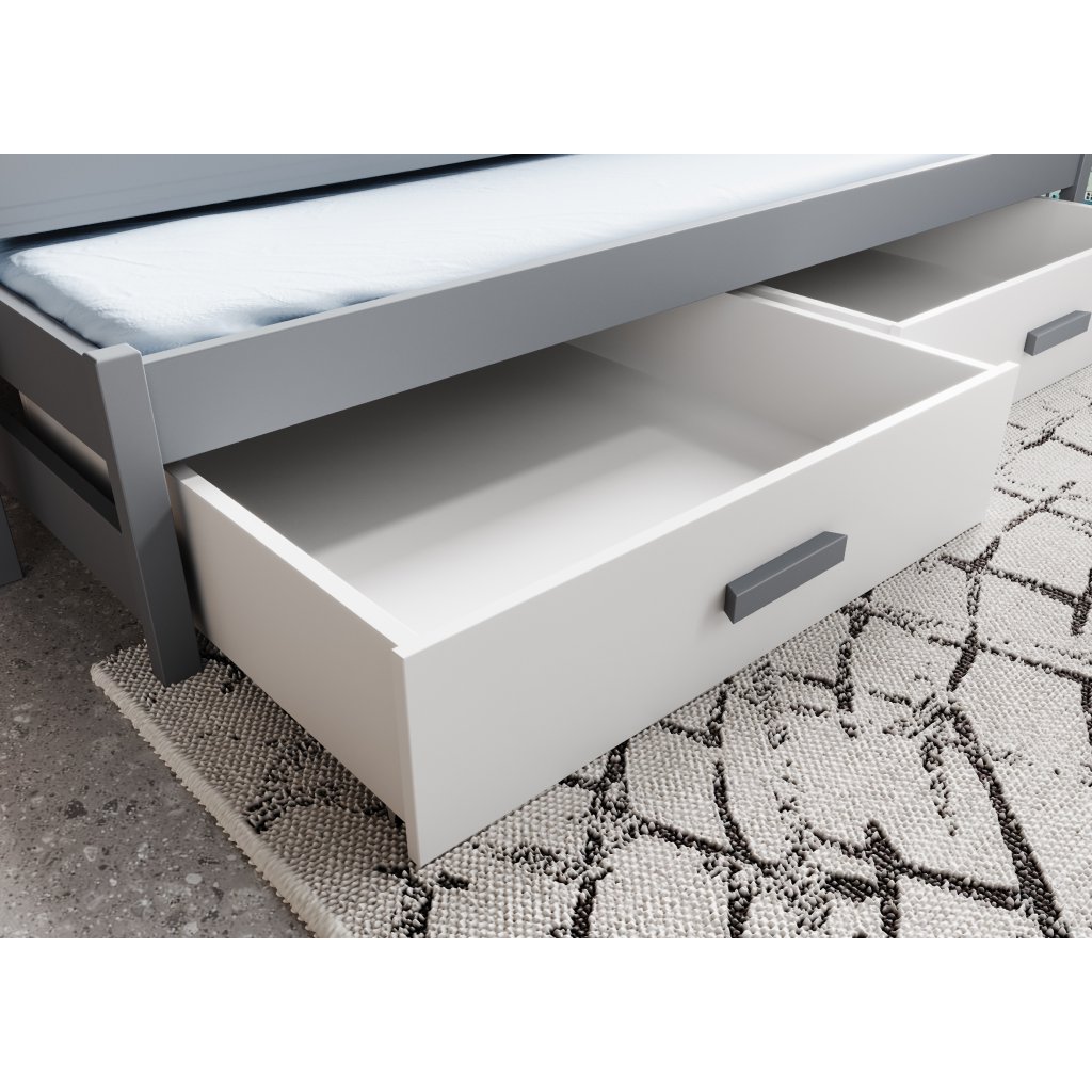 Dvě prostorné zásuvky pod postelí poskytují dostatek úložného prostoru pro lůžkoviny, oblečení či jiné potřeby, čímž pomáhají udržovat pokoj v pořádku a přehledný.