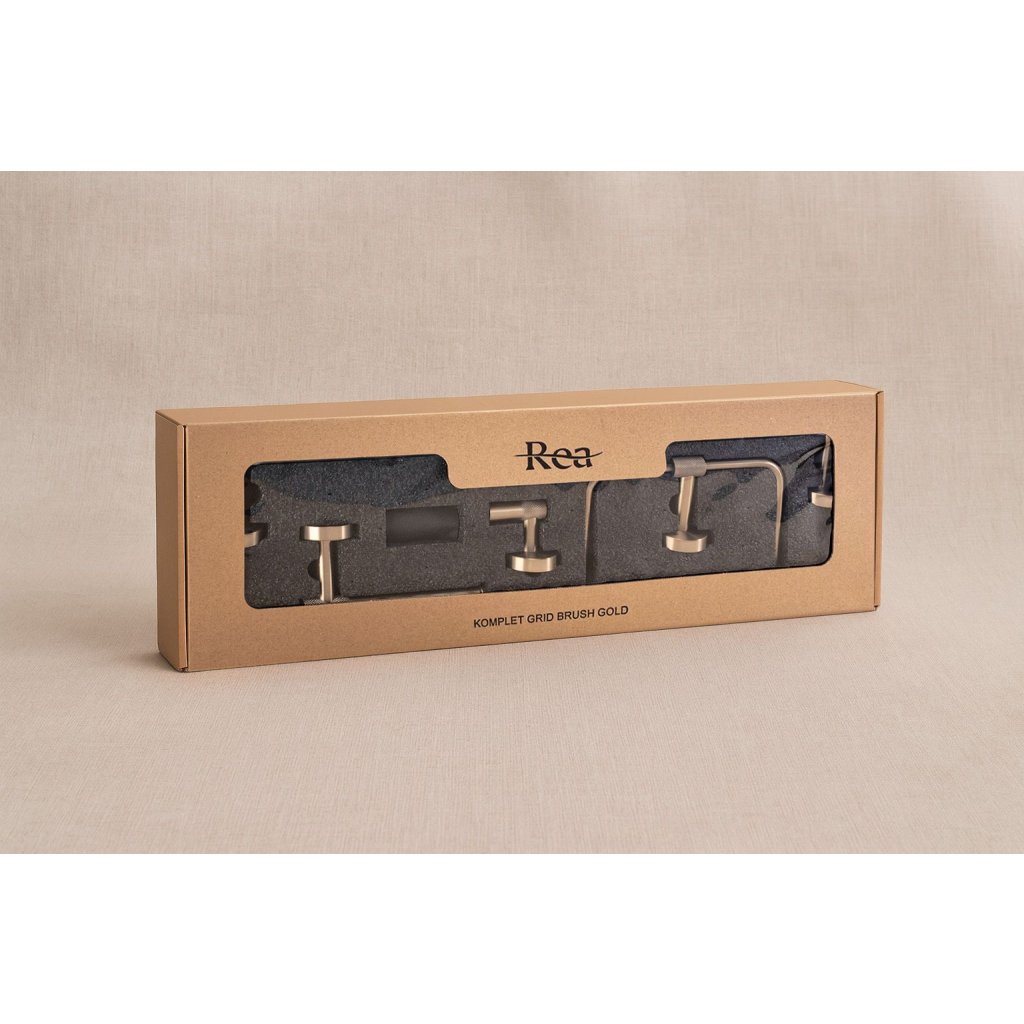 Sada 4 koupelnových doplňků REA Grid, kartáčovaná zlatá