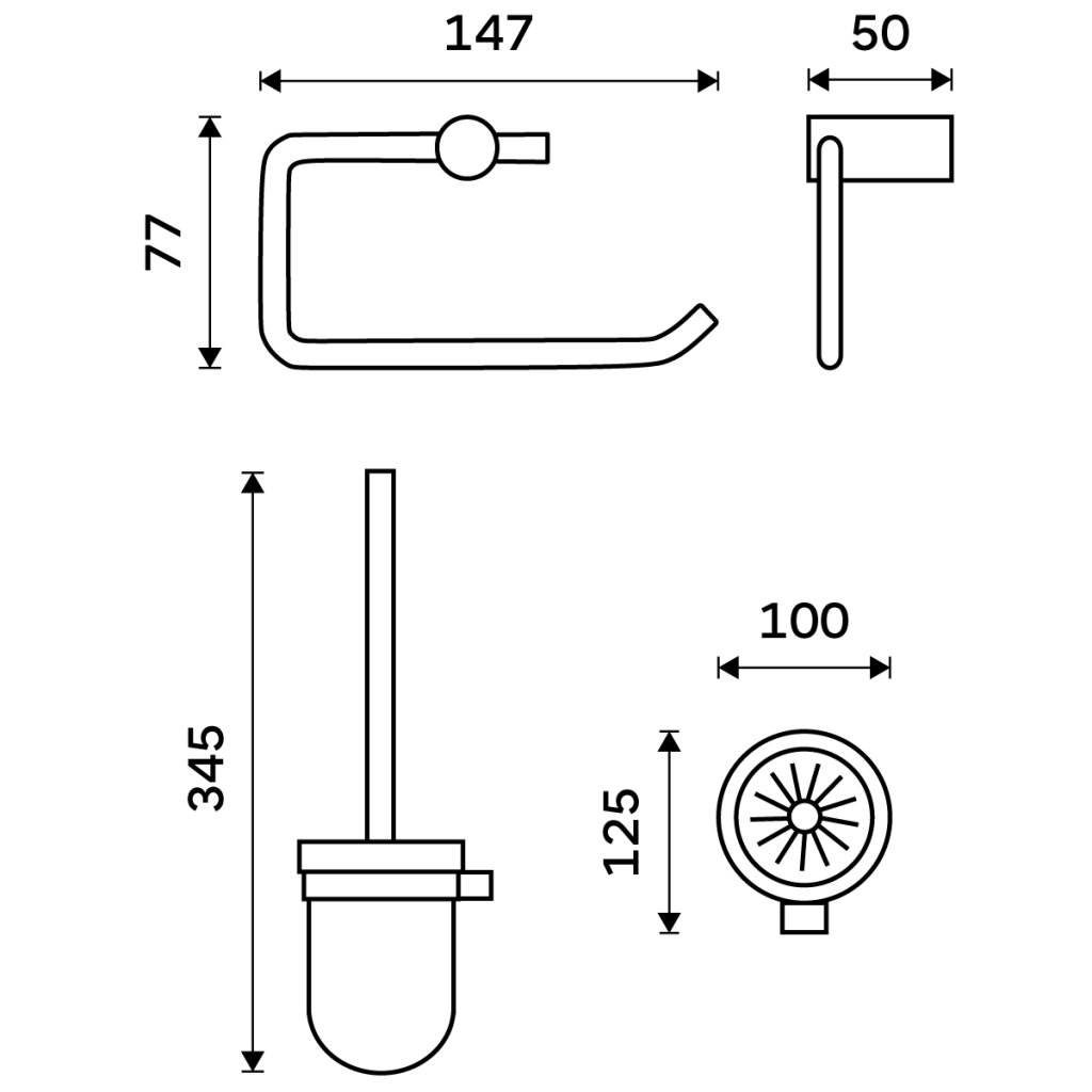 WC sada nástěnná - štětka a keramický držák toaletního papíru je skvělým doplňkem k WC. Tato sada doplňků k WC obsahuje následující výrobky NIMCO ze série Bormo černá:Toaletní štětka BRC 11094WN-90